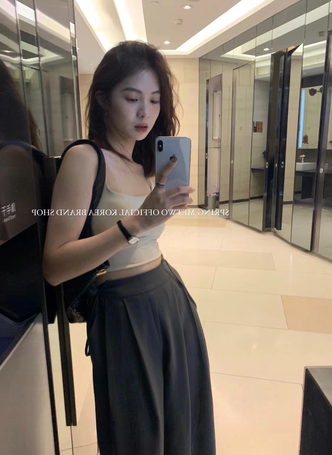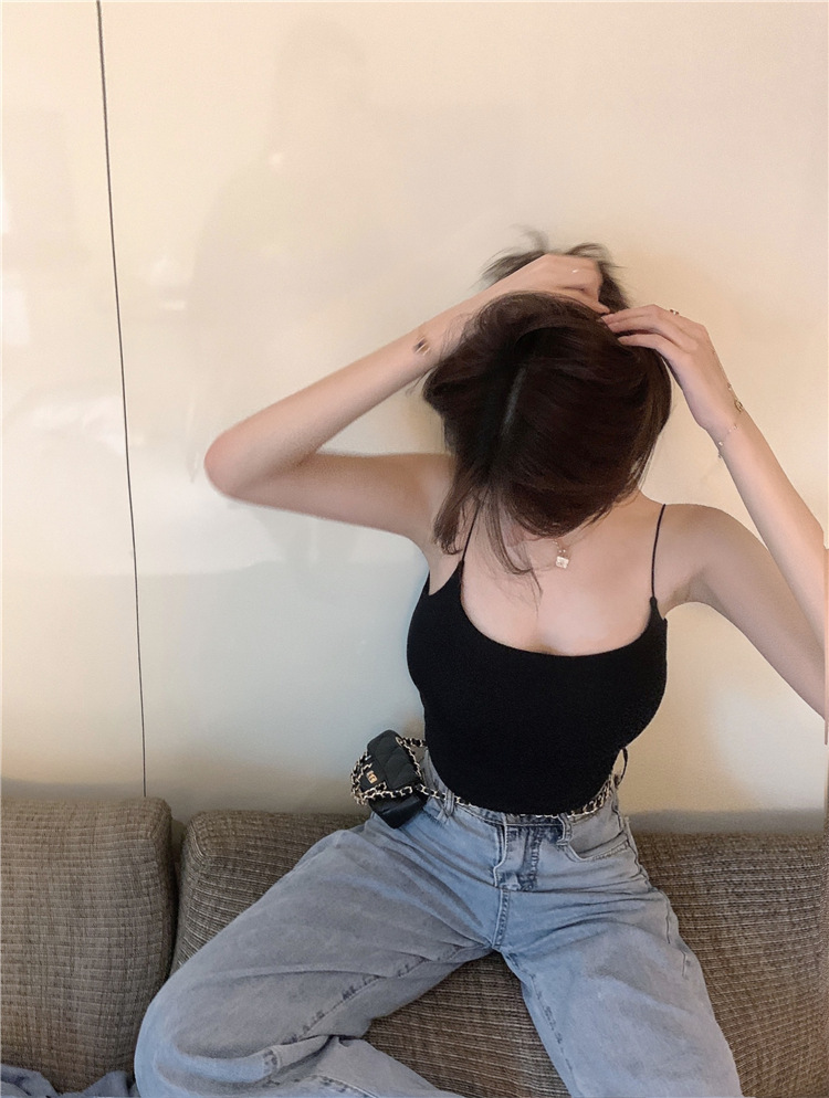 细肩带冰丝吊带背心防走光带胸垫抹胸欧美纯色短款打底美背上衣女