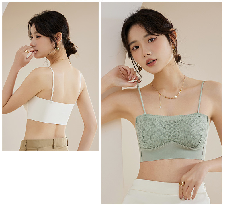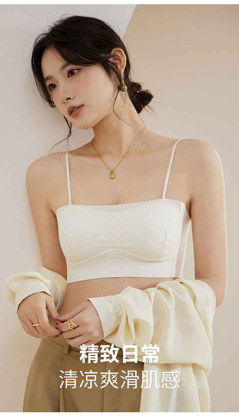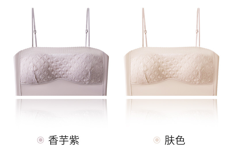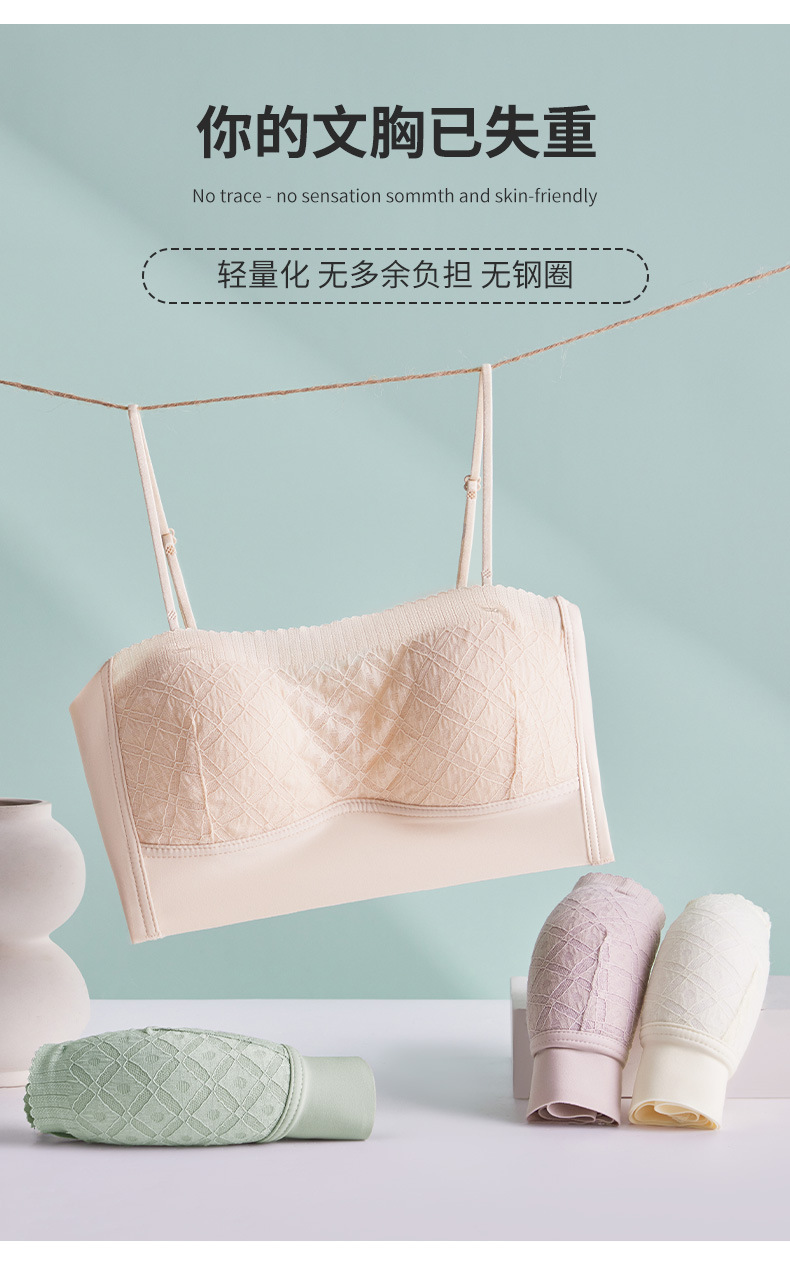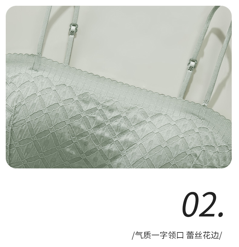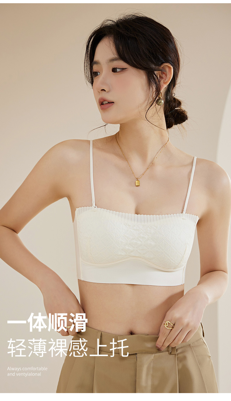 新款蕾丝吊带背心无钢圈少女内衣裹胸舒适透气可拆卸肩带一字肩