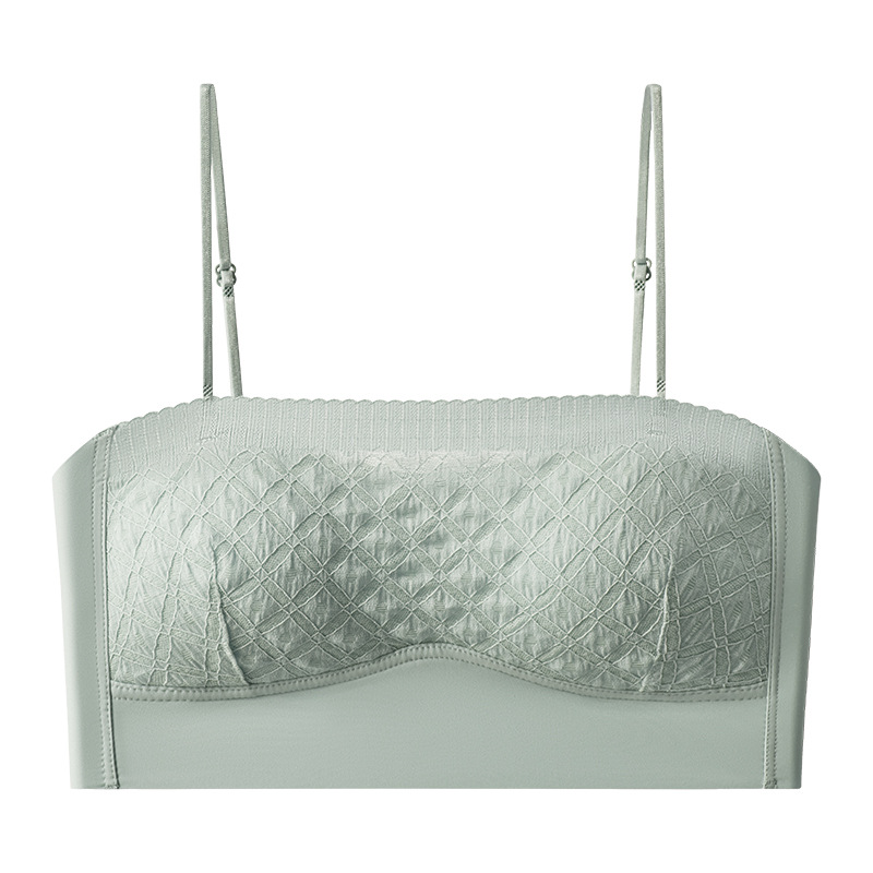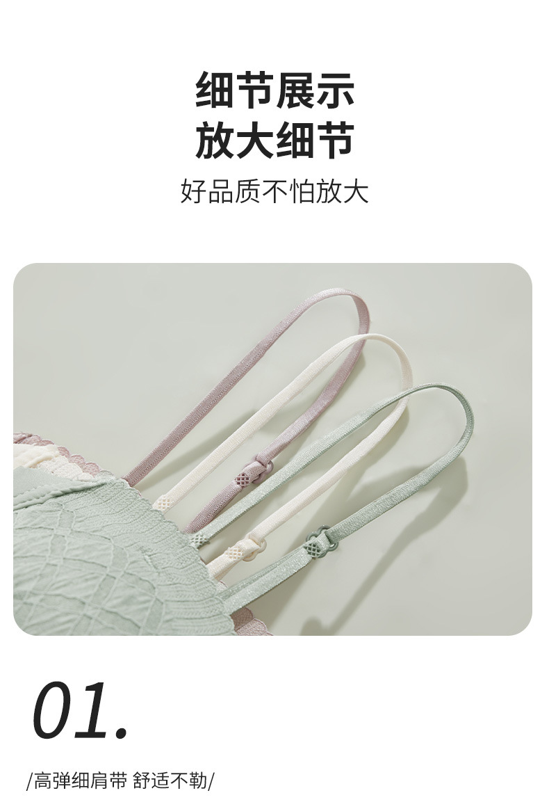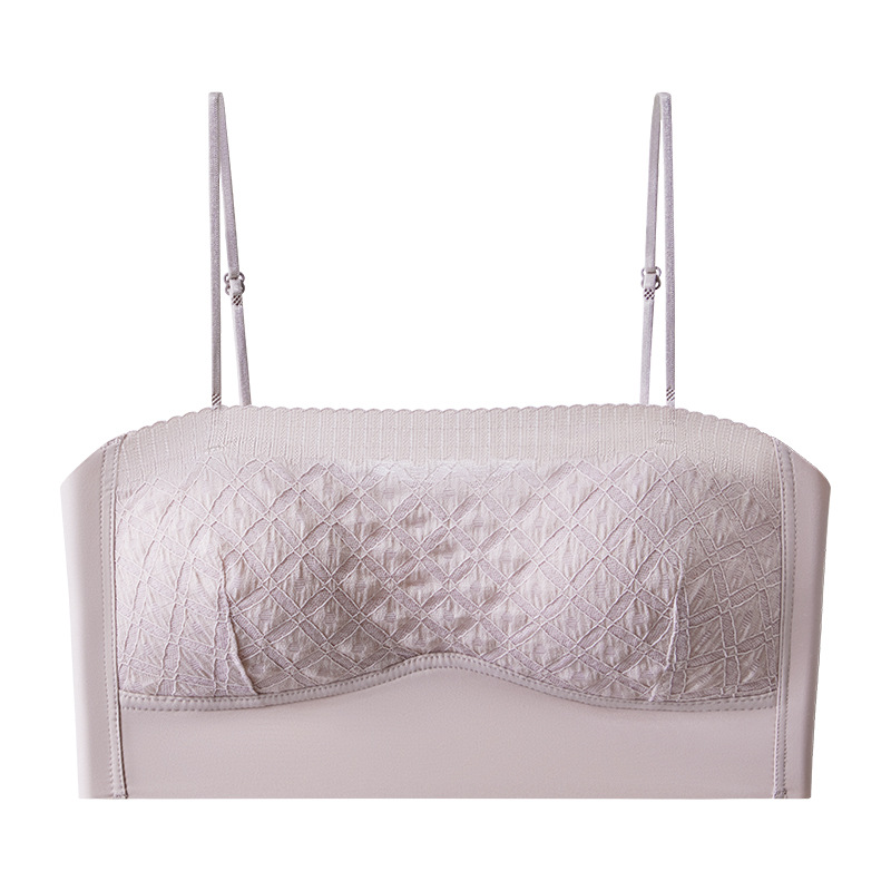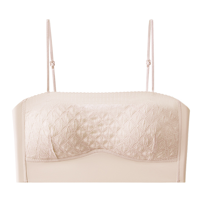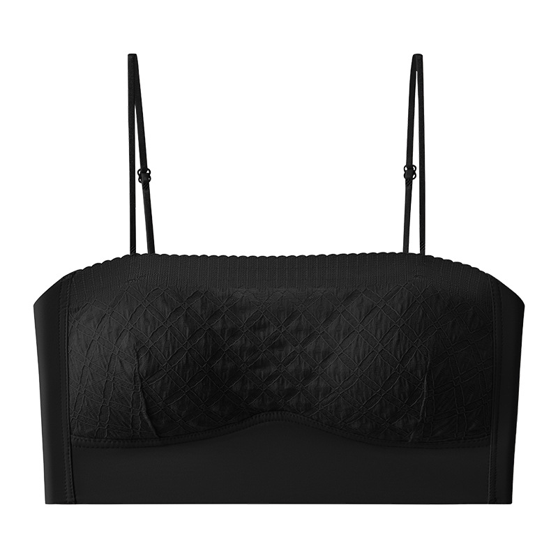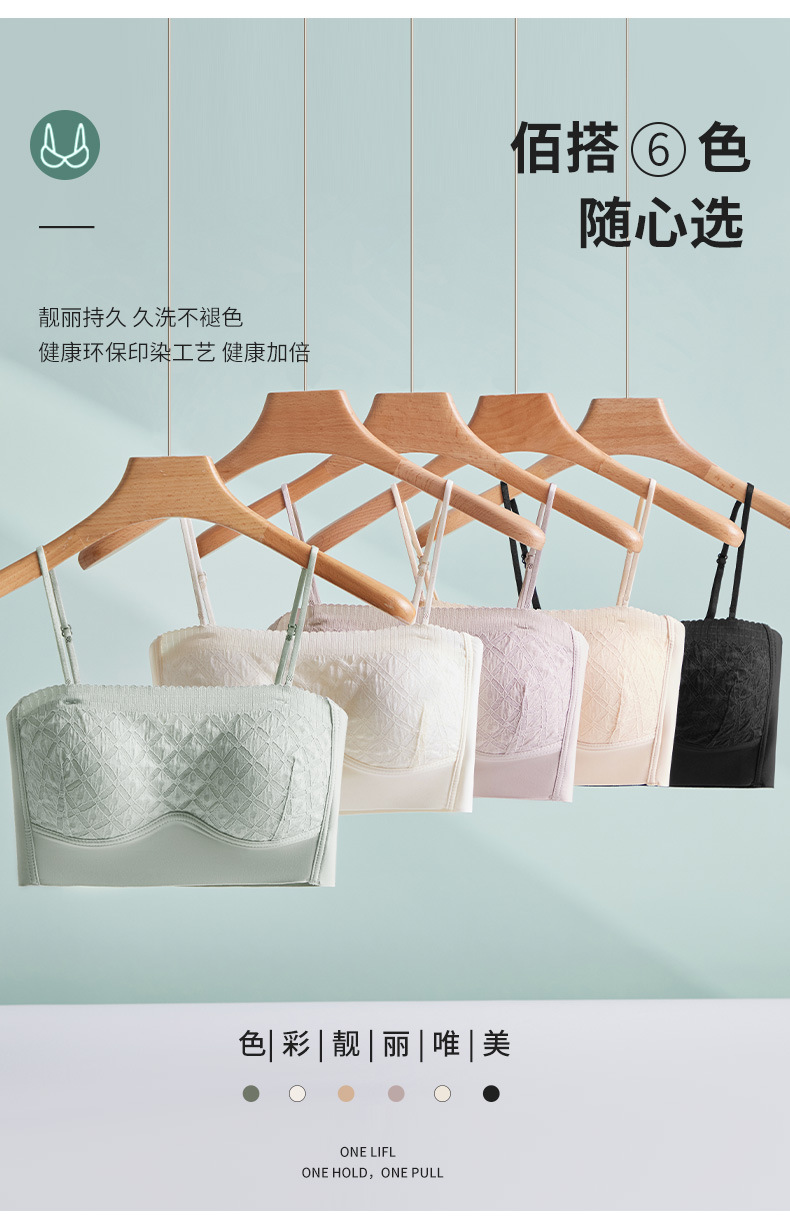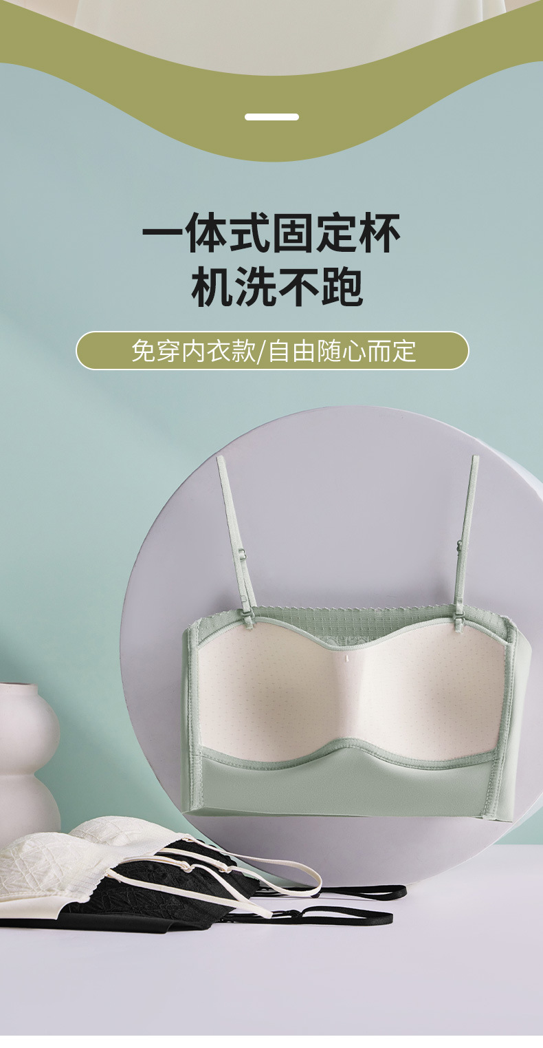 新款蕾丝吊带背心无钢圈少女内衣裹胸舒适透气可拆卸肩带一字肩