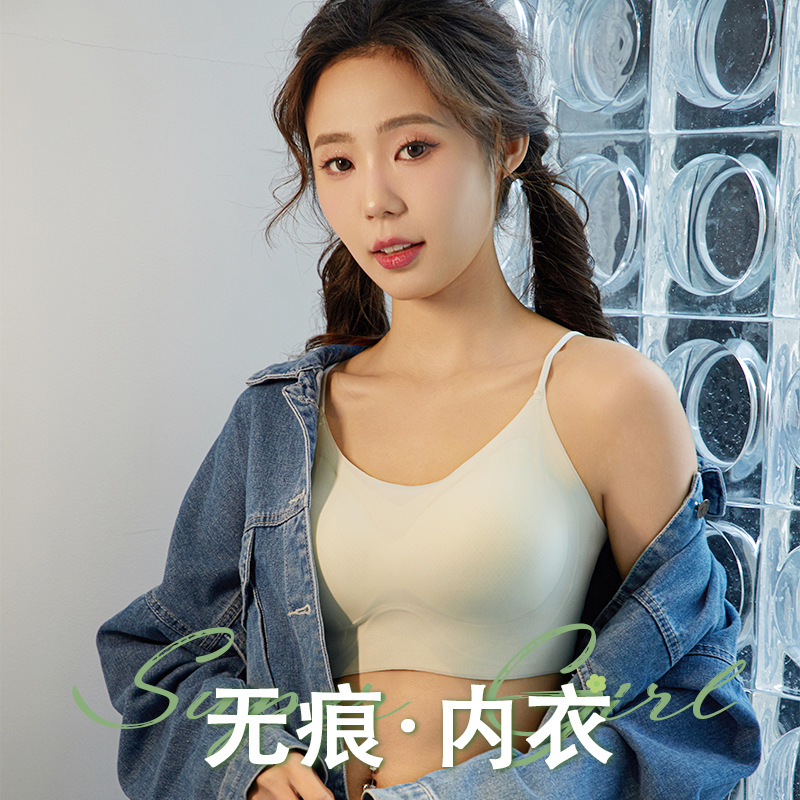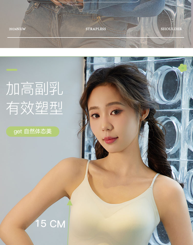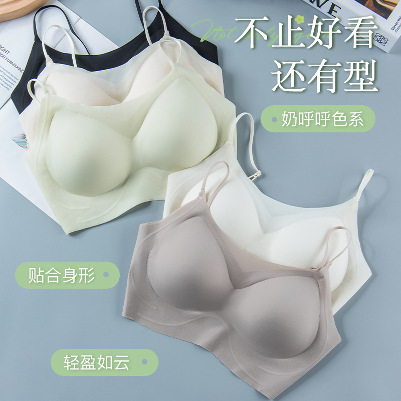 无痕内衣女吊带背心小胸聚拢收副乳无钢圈裹胸百搭固定杯冰丝抹胸