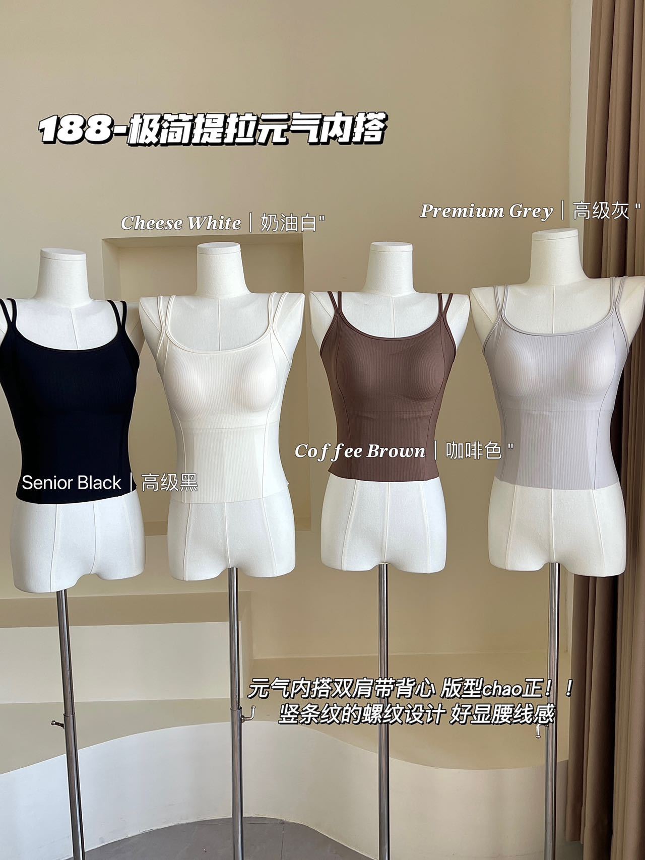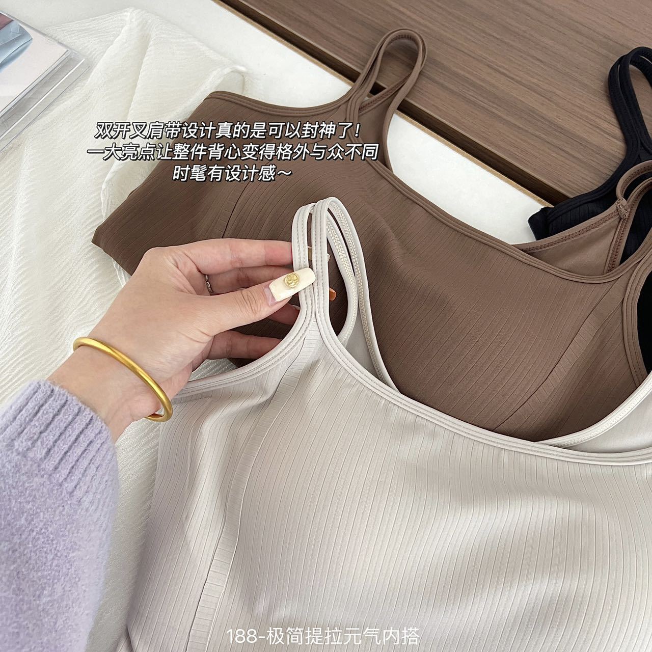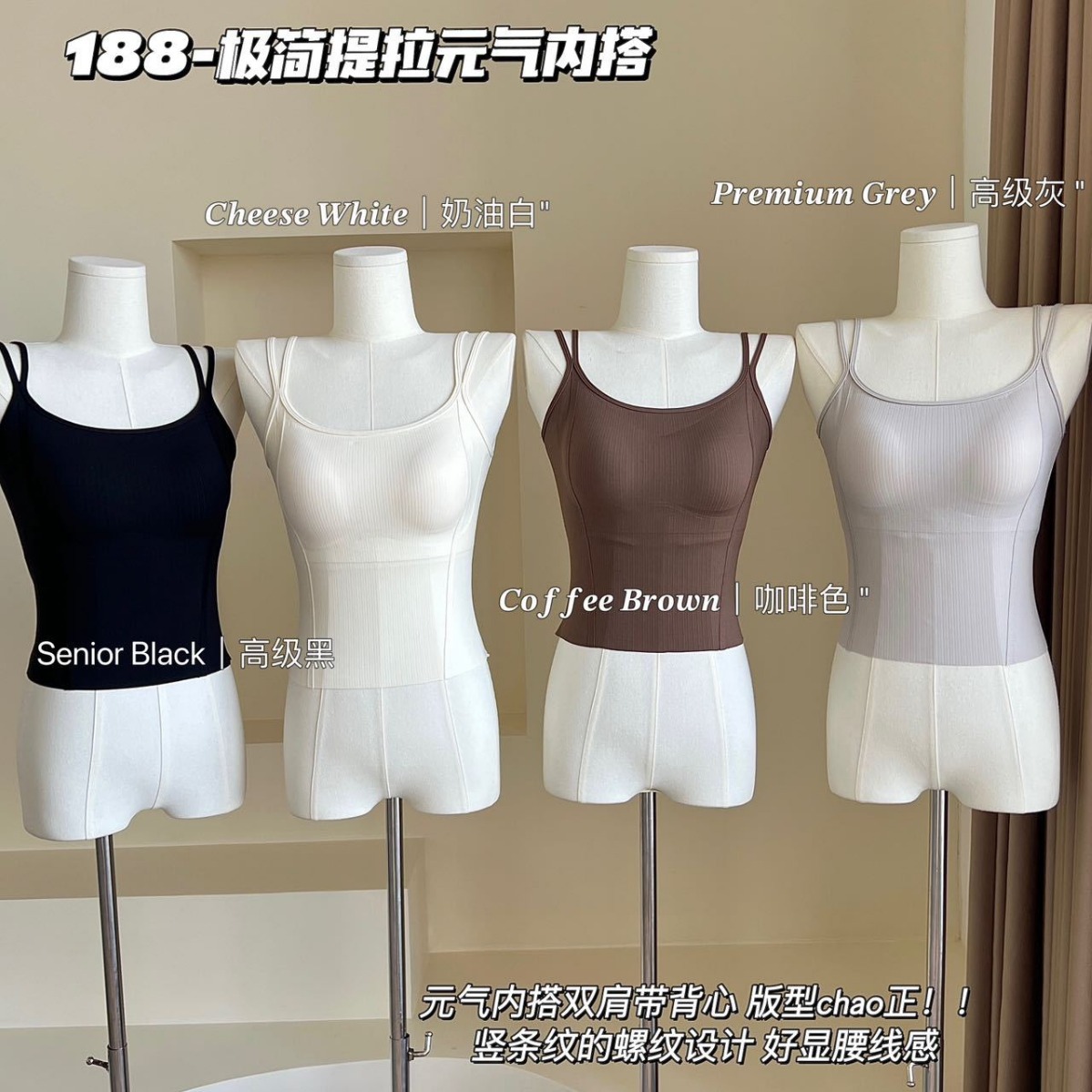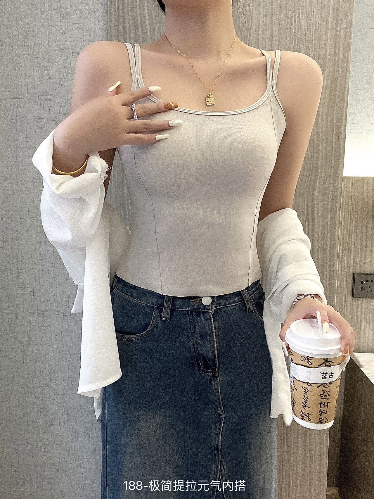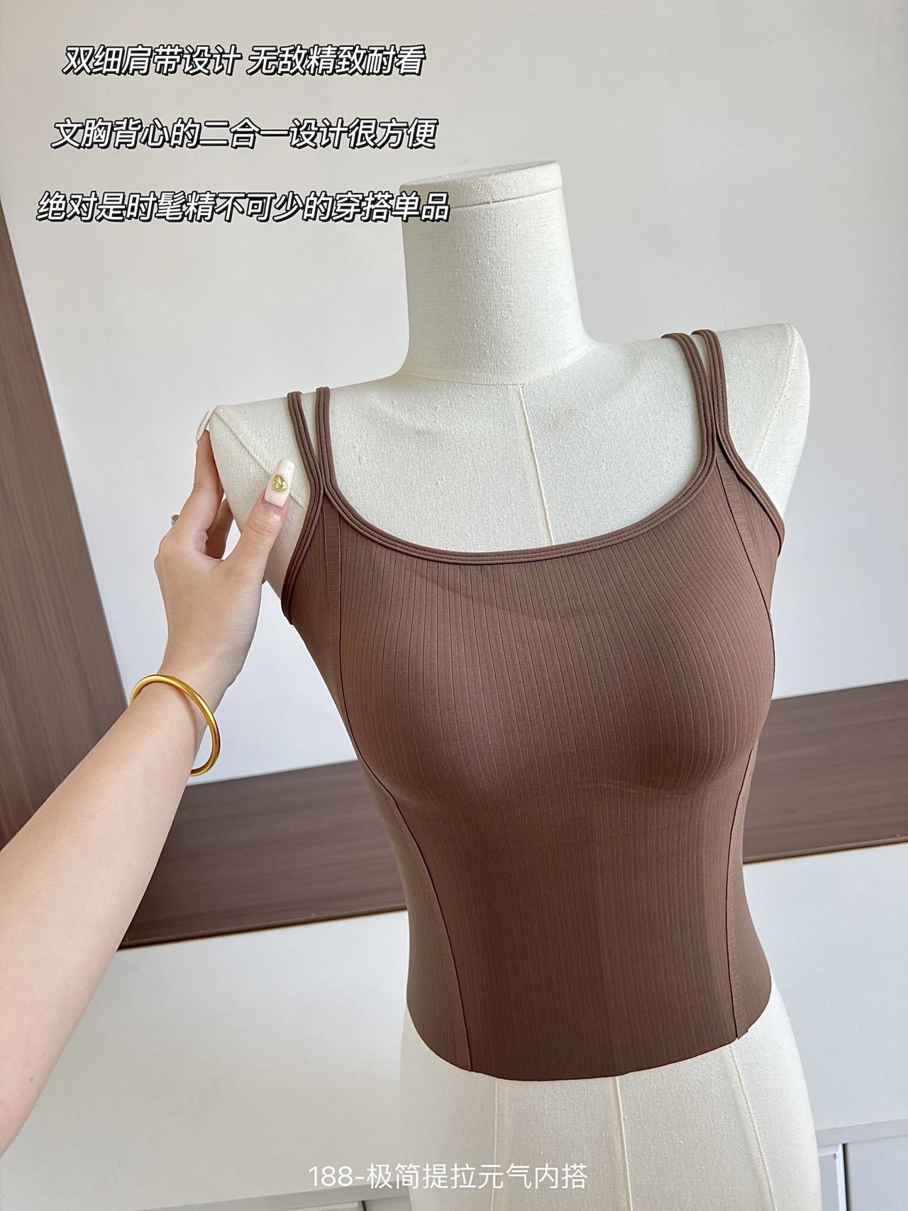 春夏双肩吊带U领元气小背心 带胸垫内搭打底舒适抹胸无痕上衣女
