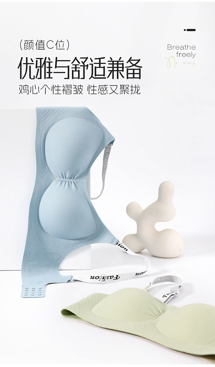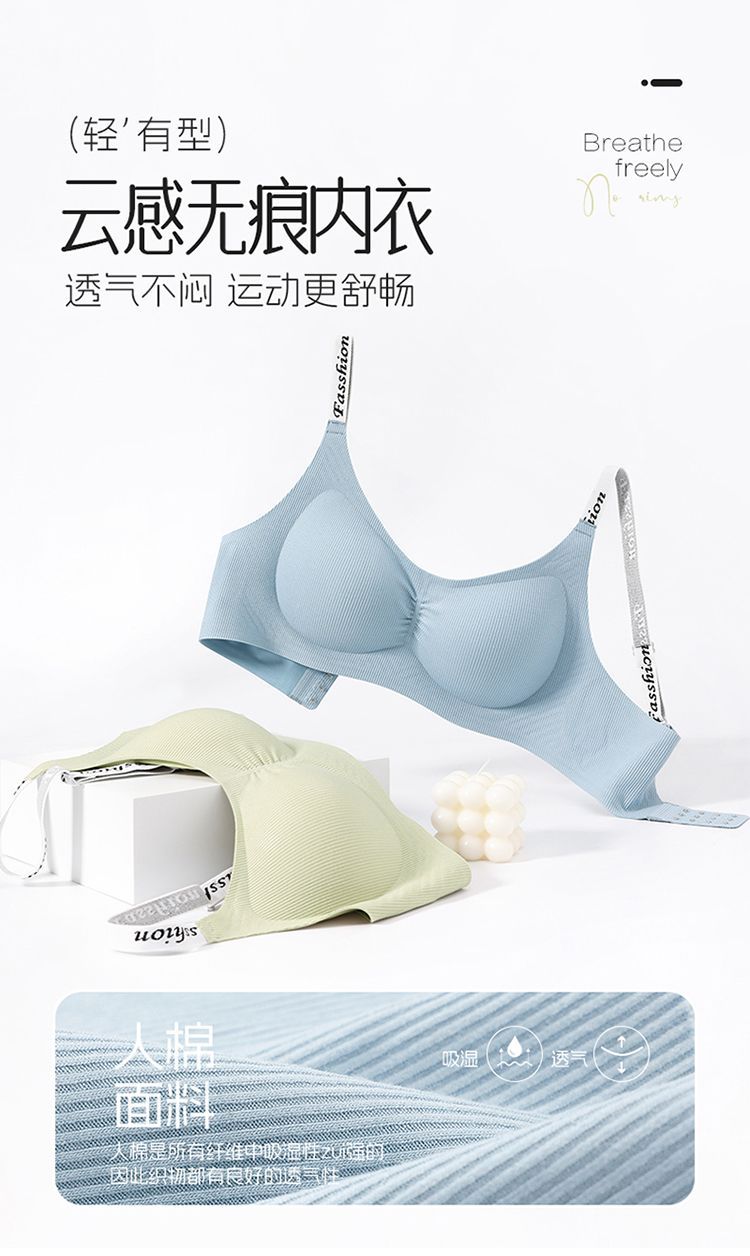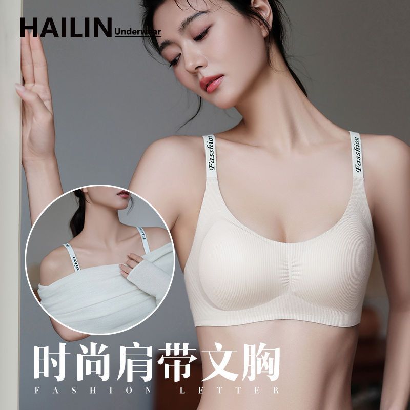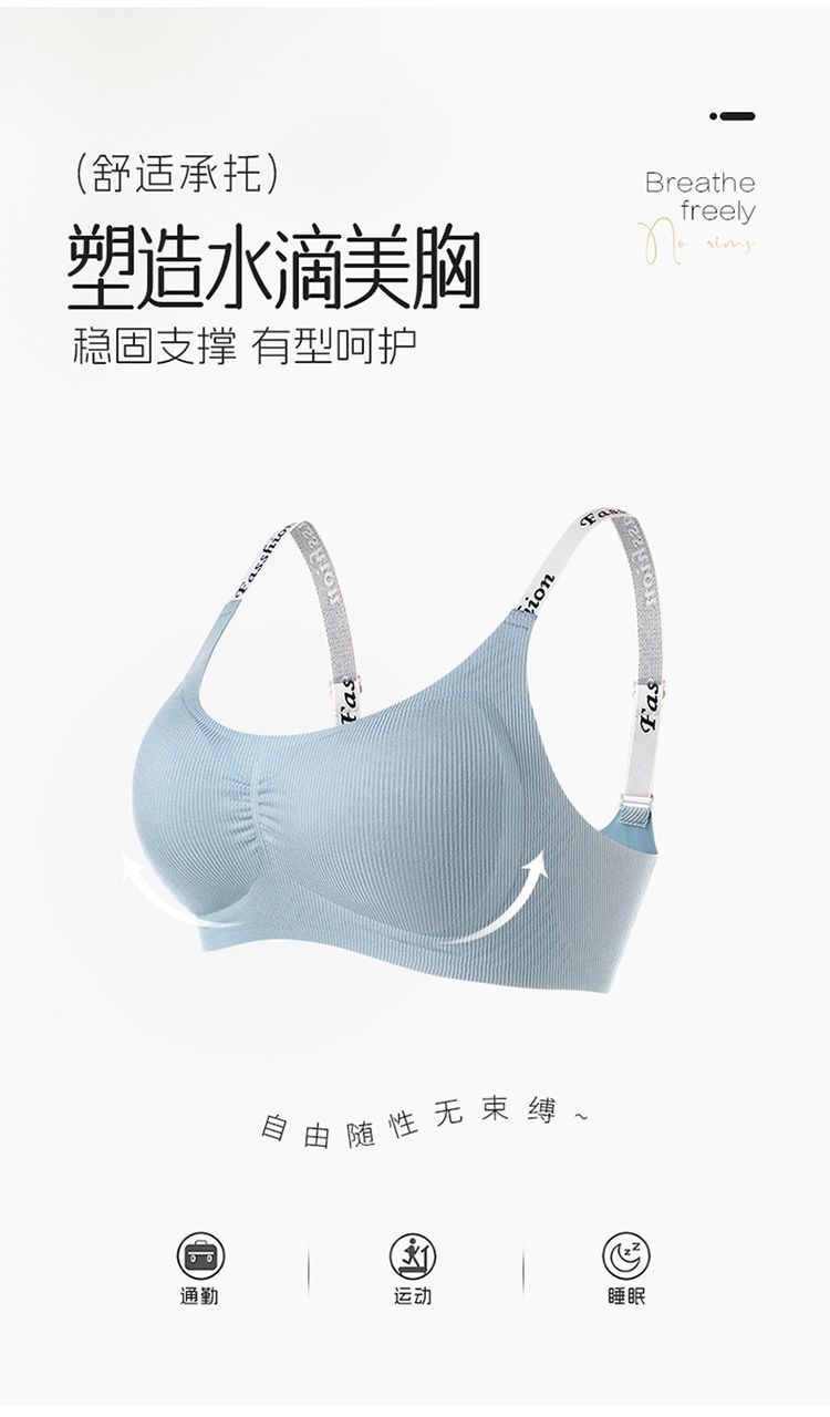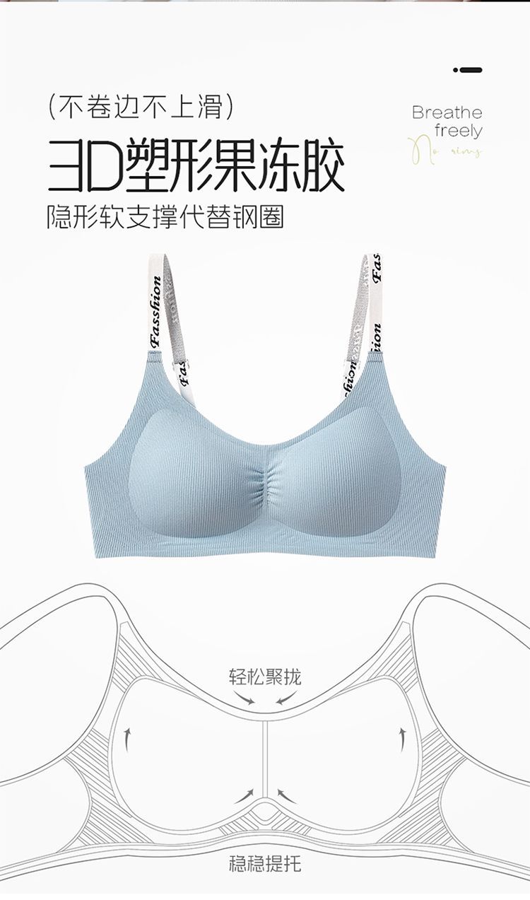 无痕内衣女大胸显小胸聚拢收副乳字母肩带固定杯薄款无钢圈文胸罩