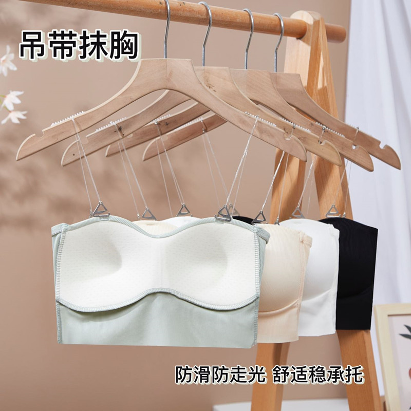 夏季新款带胸垫隐形鱼线肩带一字围吊带背心裸感冰丝抹胸性感上衣