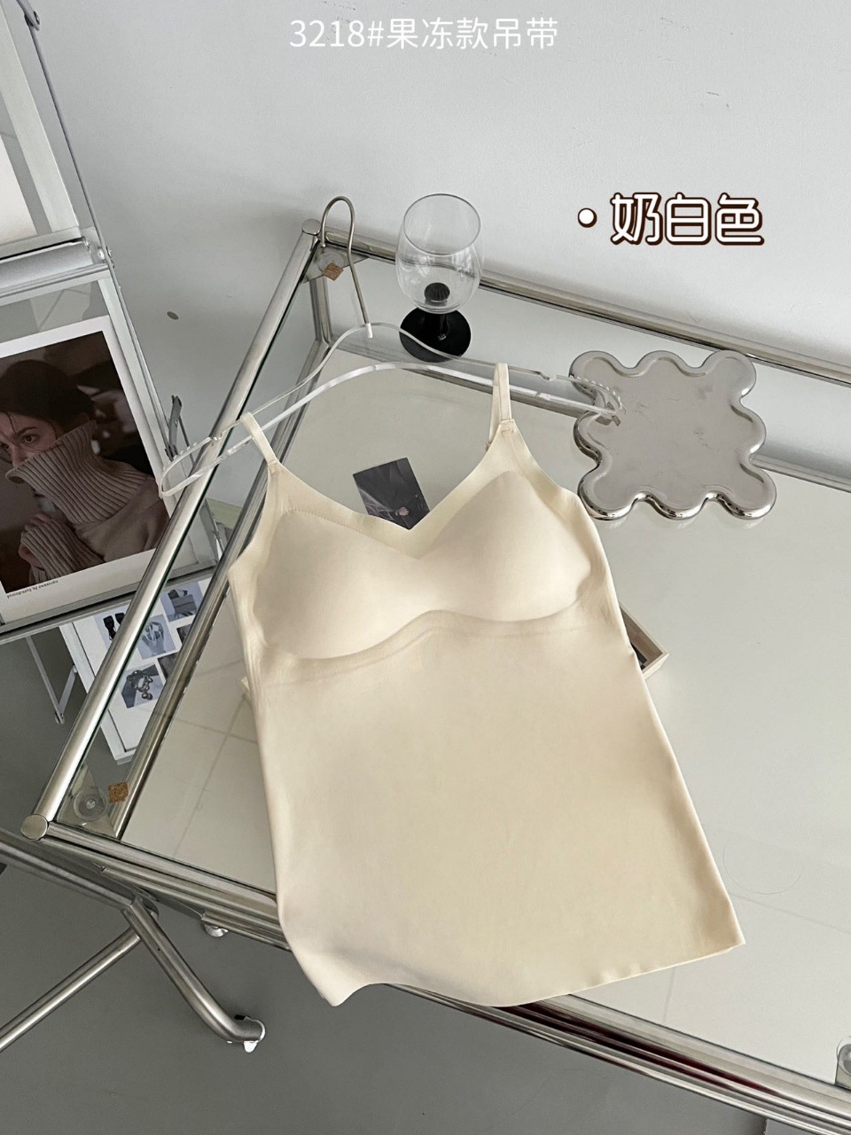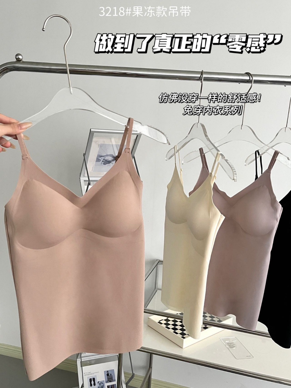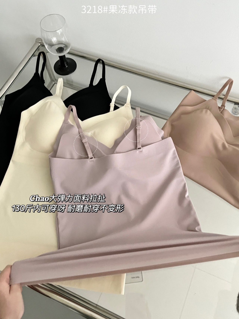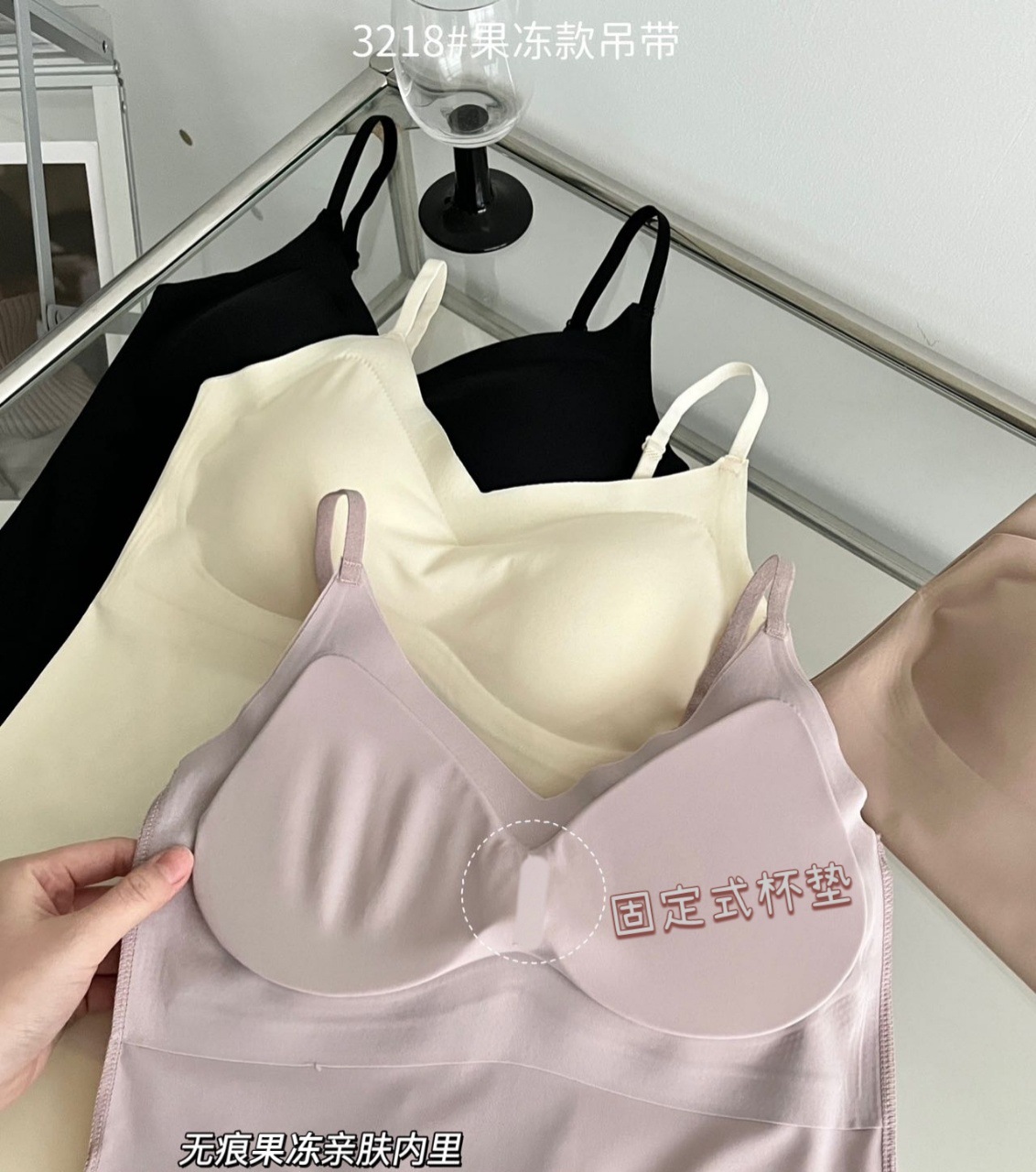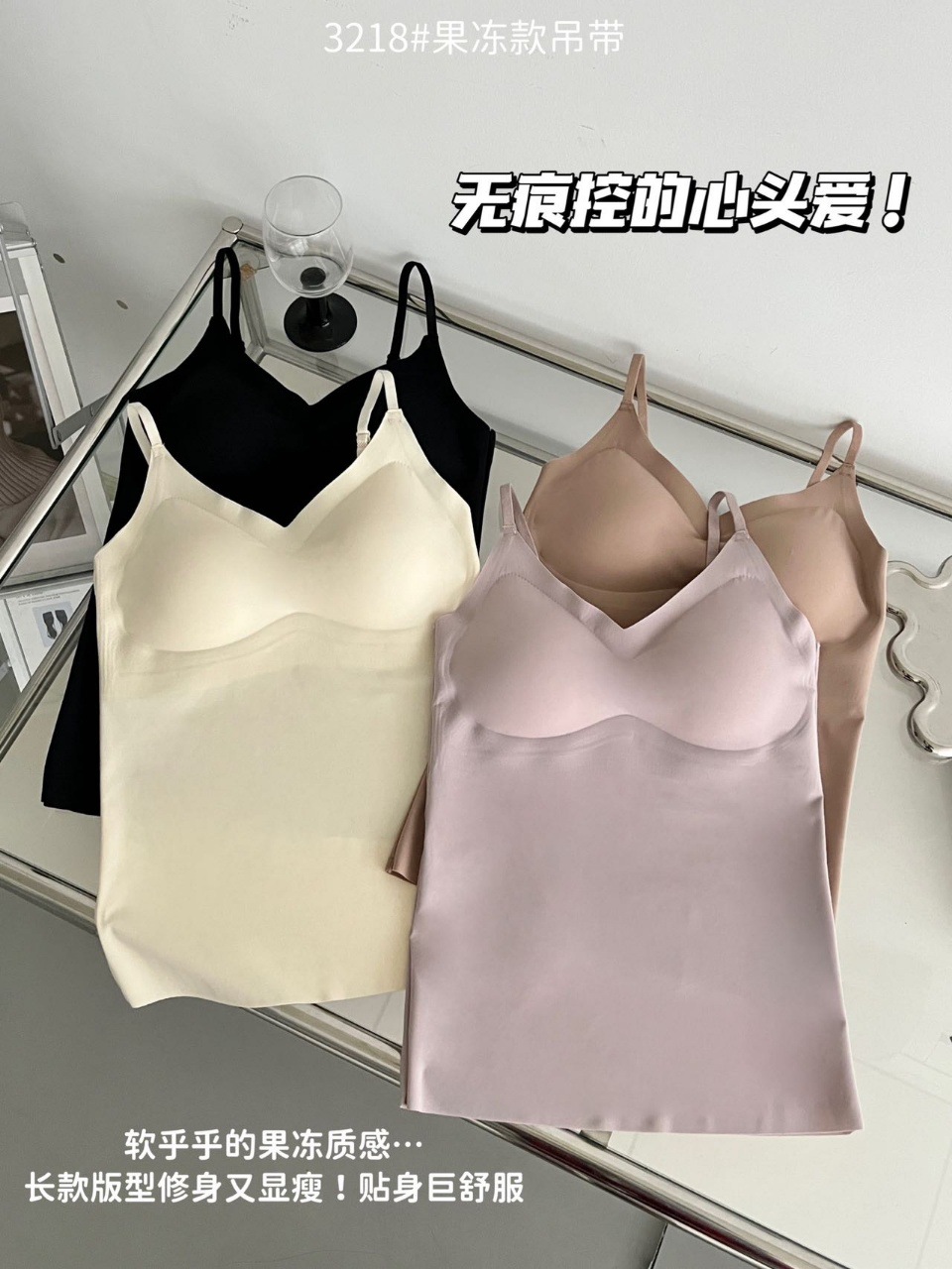 2024新款3218果冻款细肩带无痕吊带背心固定式一杯垫舒适无感内衣
