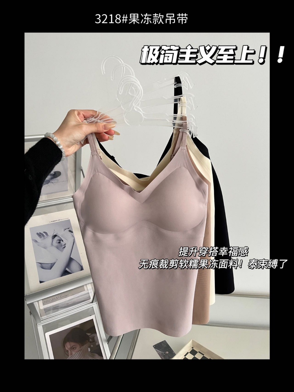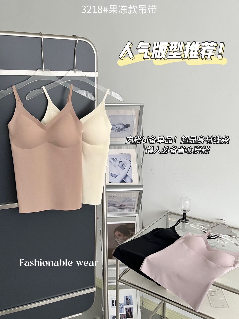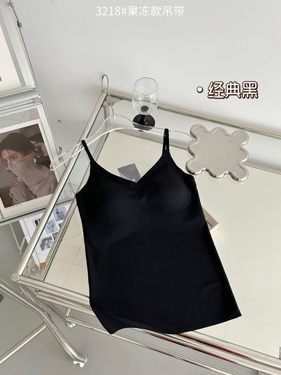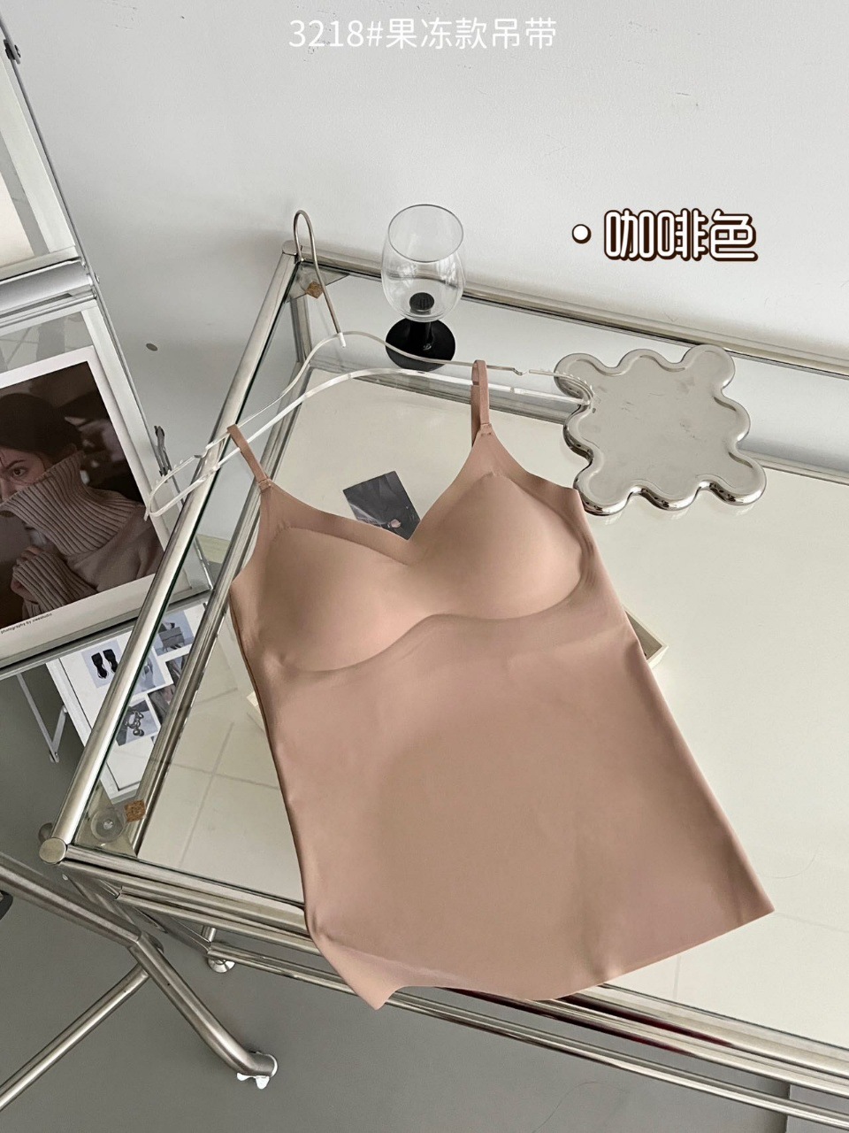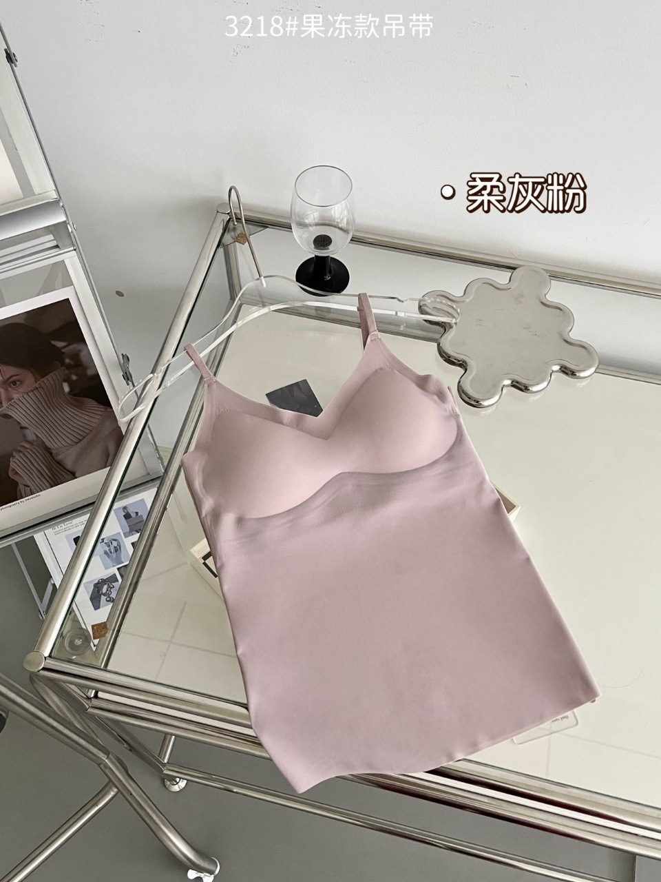 2024新款3218果冻款细肩带无痕吊带背心固定式一杯垫舒适无感内衣