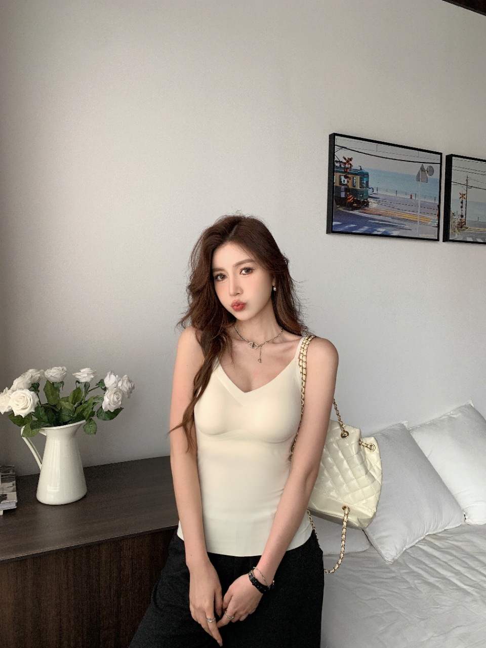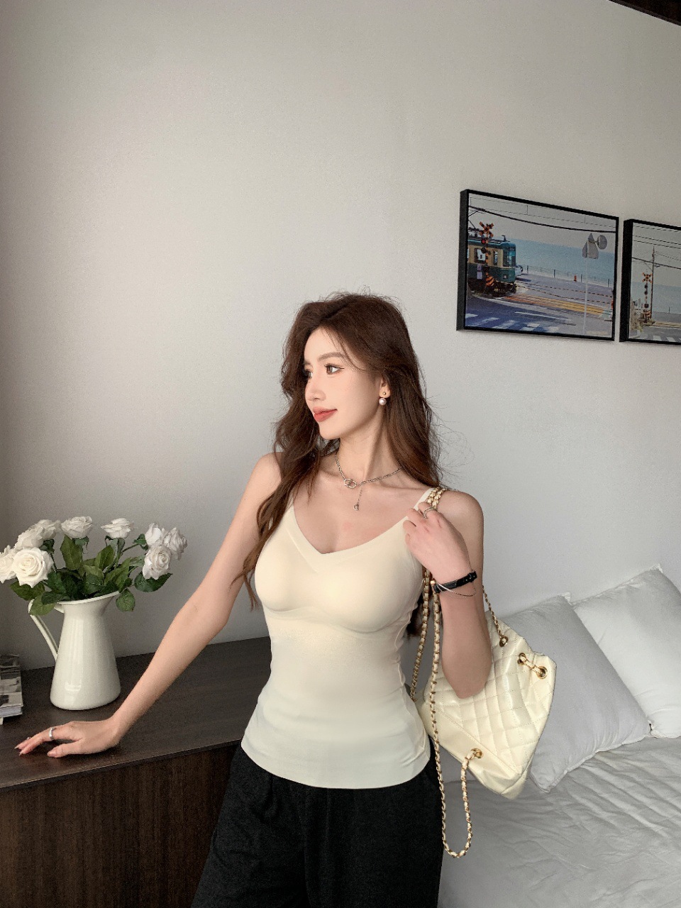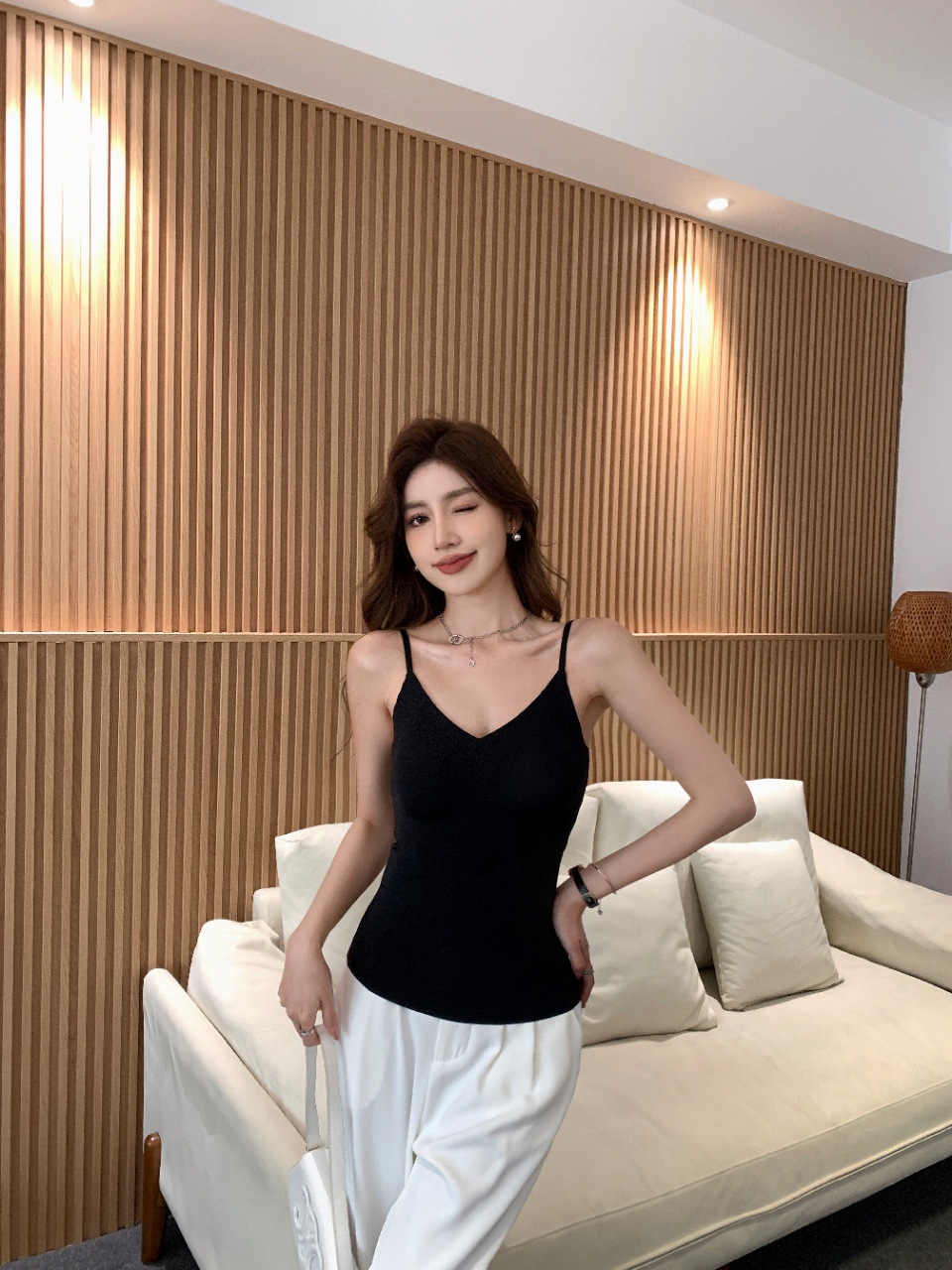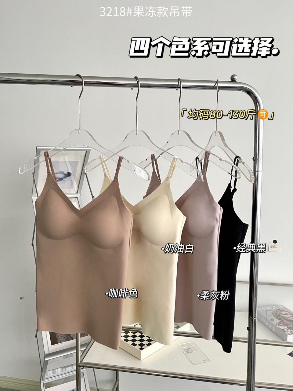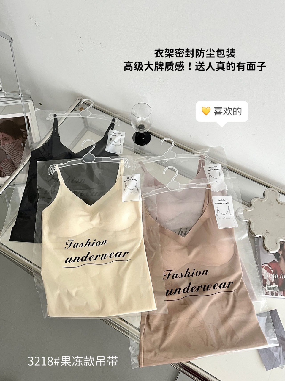2024新款3218果冻款细肩带无痕吊带背心固定式一杯垫舒适无感内衣
