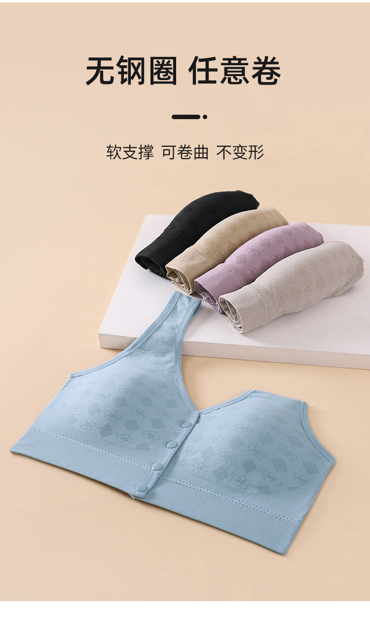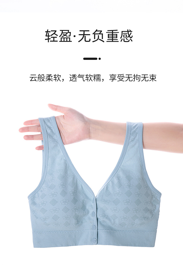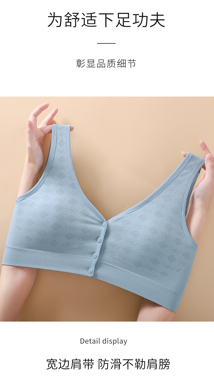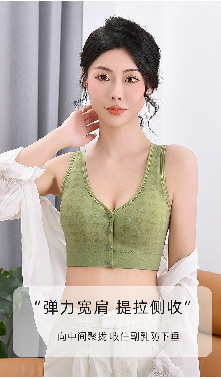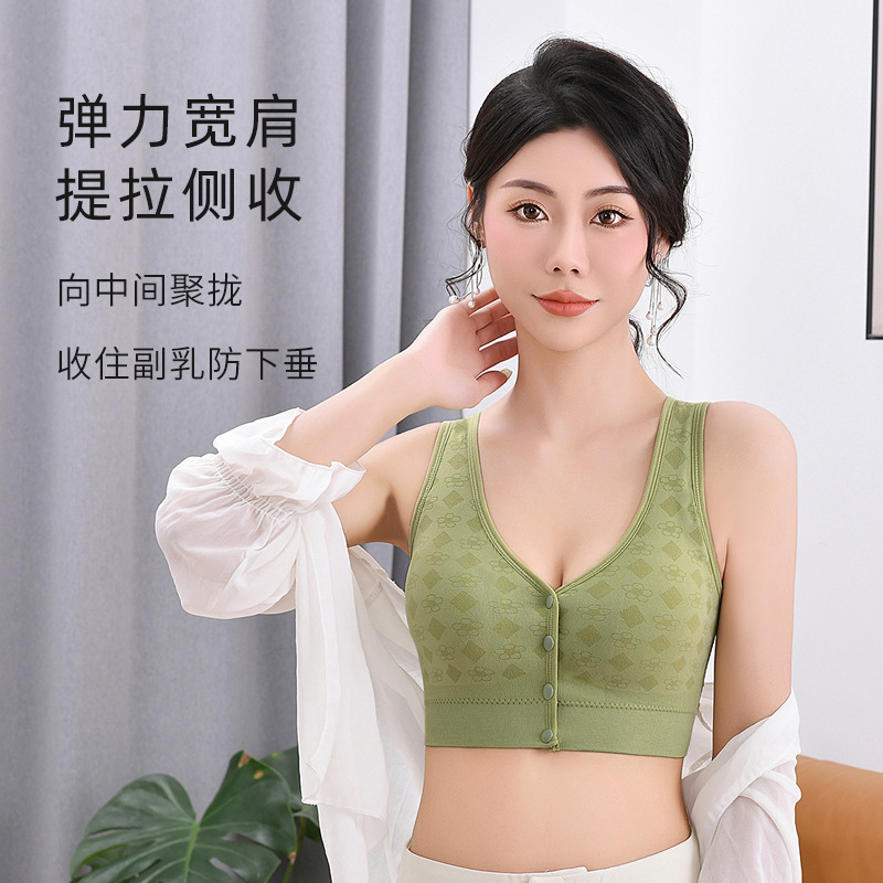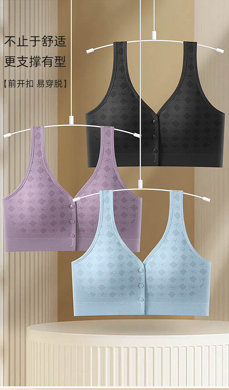跨境新款加肥版提花前开扣妈妈文胸弹力宽肩带胸垫收副乳U型美背