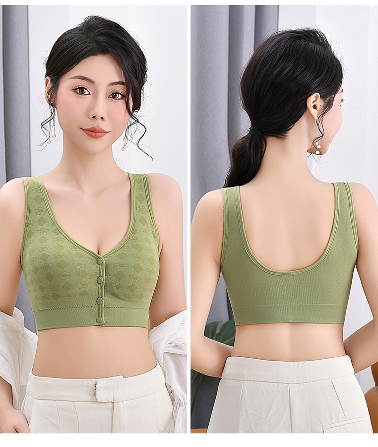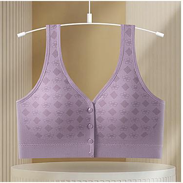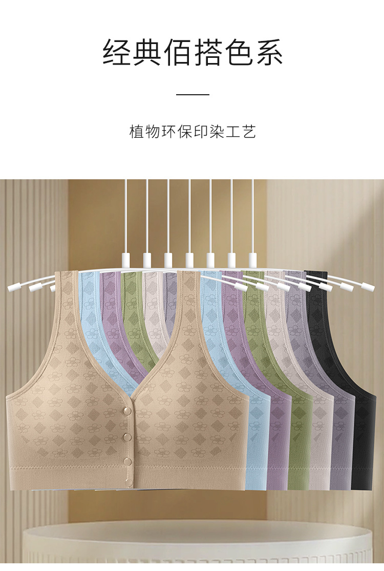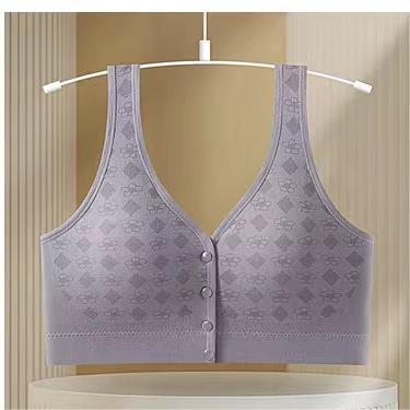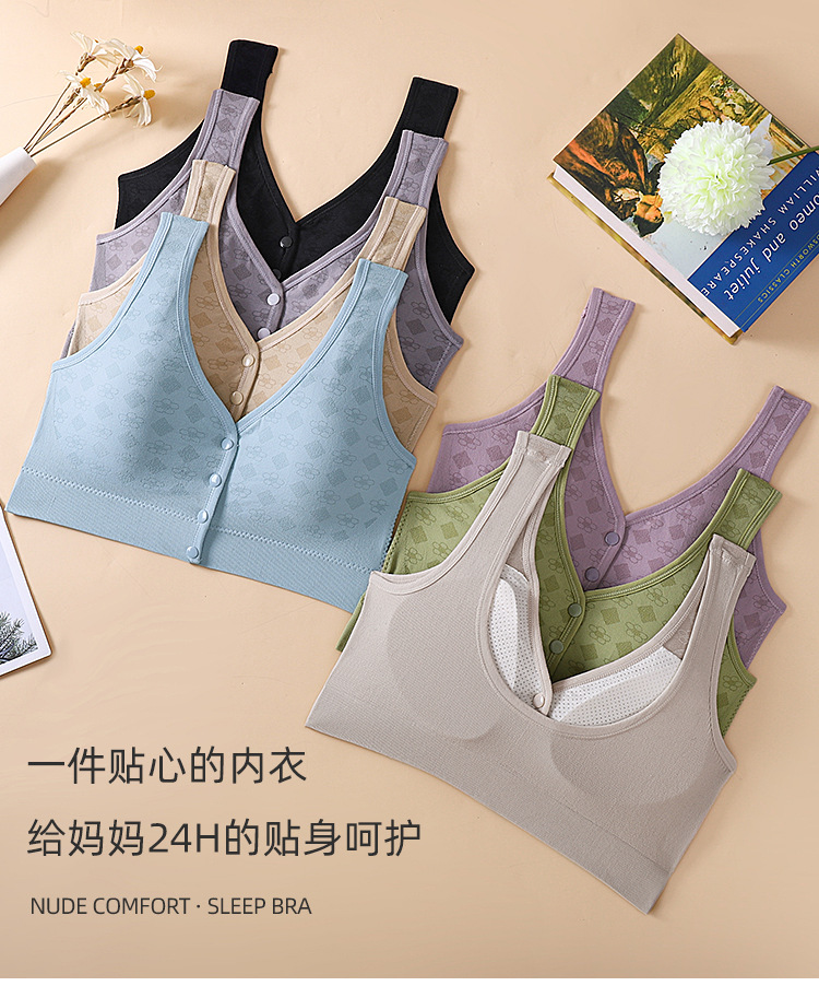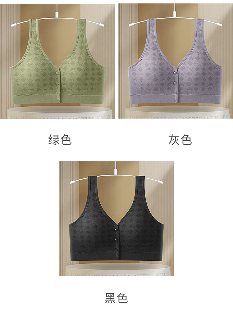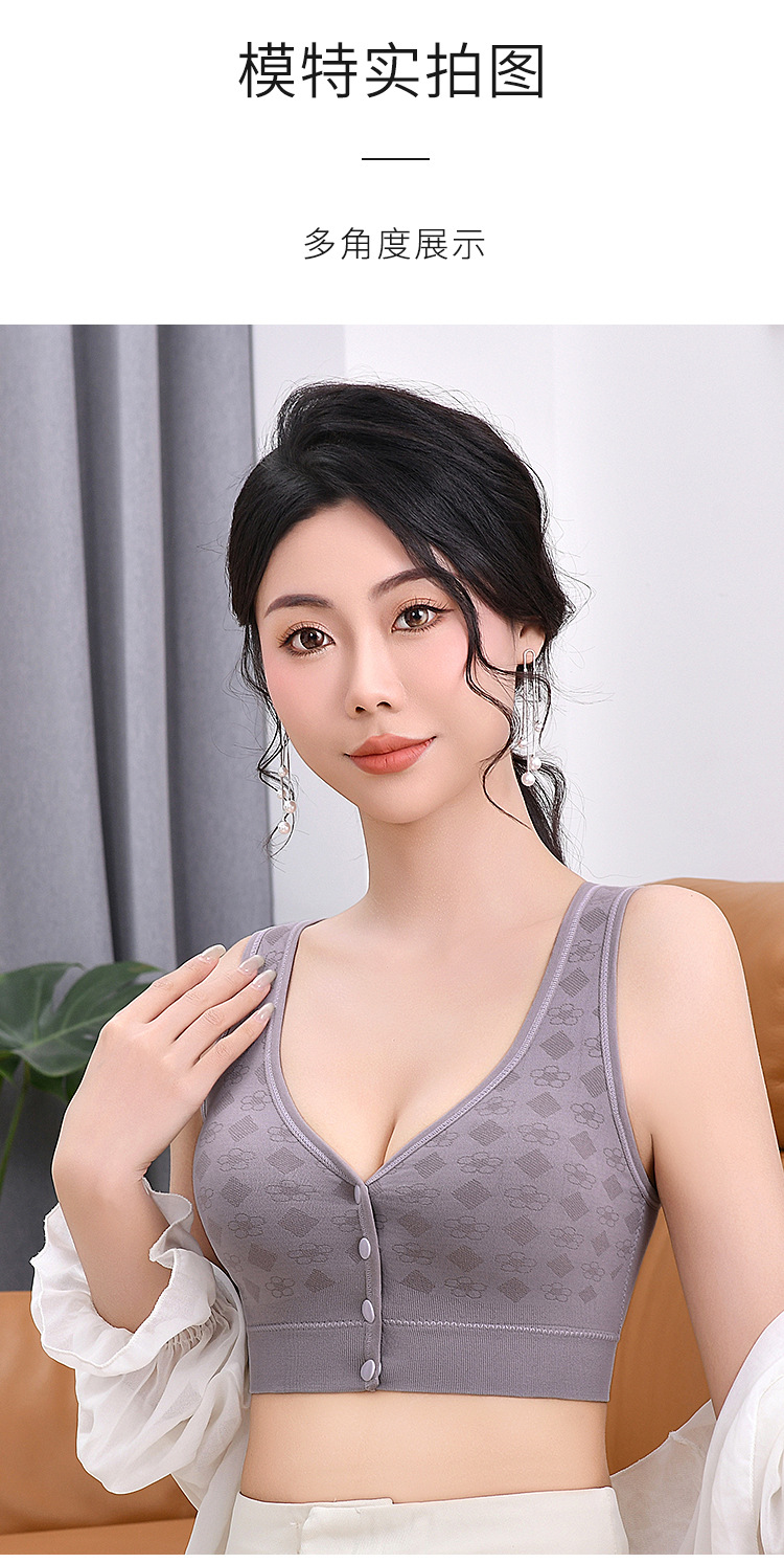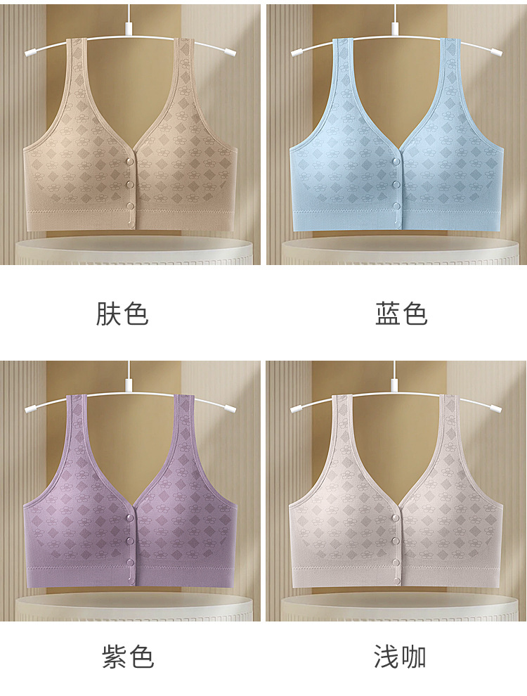 跨境新款加肥版提花前开扣妈妈文胸弹力宽肩带胸垫收副乳U型美背