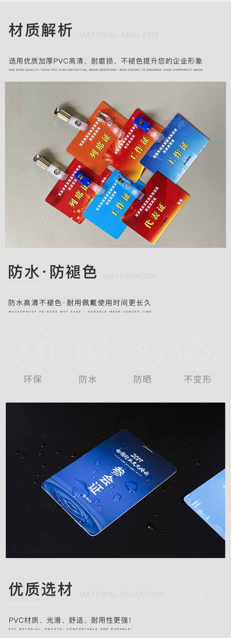 PVC工作证牌人像卡定 做胸卡参会证嘉宾代表证工牌定 制胸牌制作
