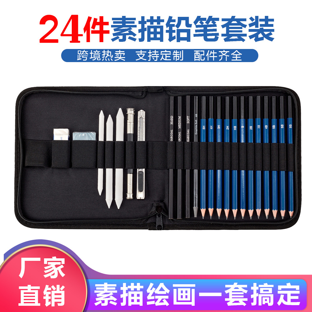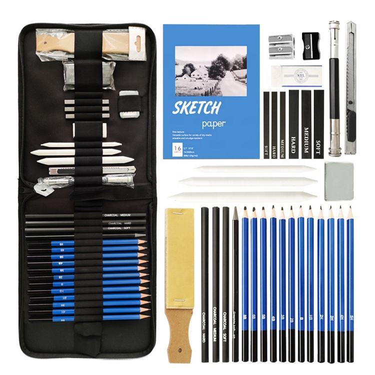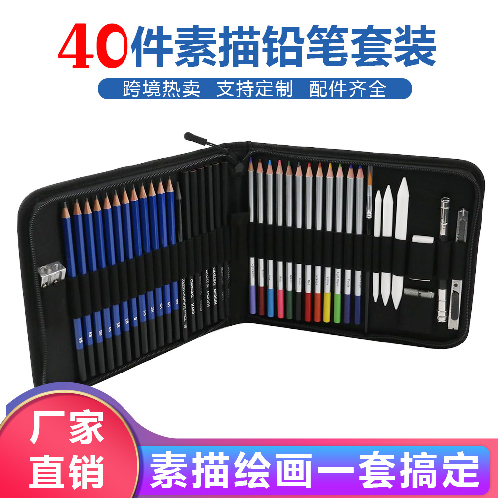 跨境35件素描铅笔套装40件绘画铅笔套装初学者专业美术工具包批发