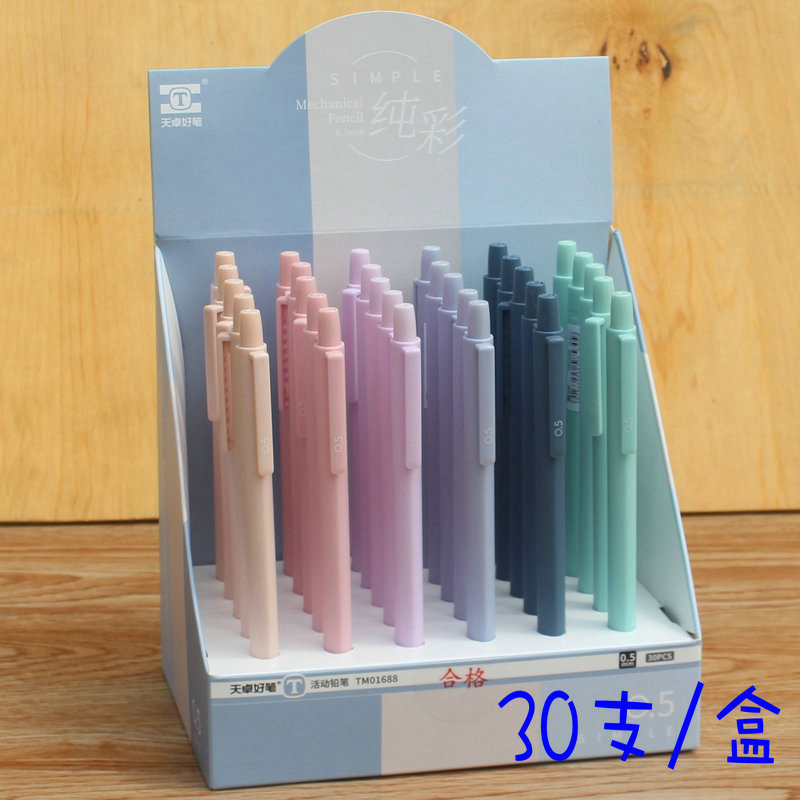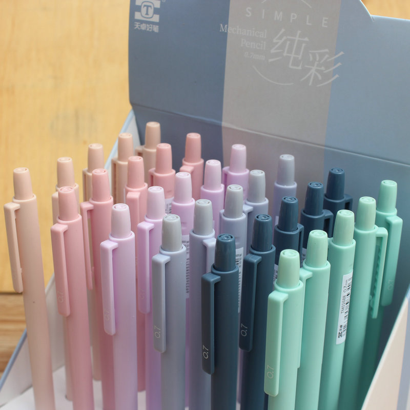 天卓01688莫兰迪色活动铅笔 彩学生用简约三角杆矫姿自动铅笔新