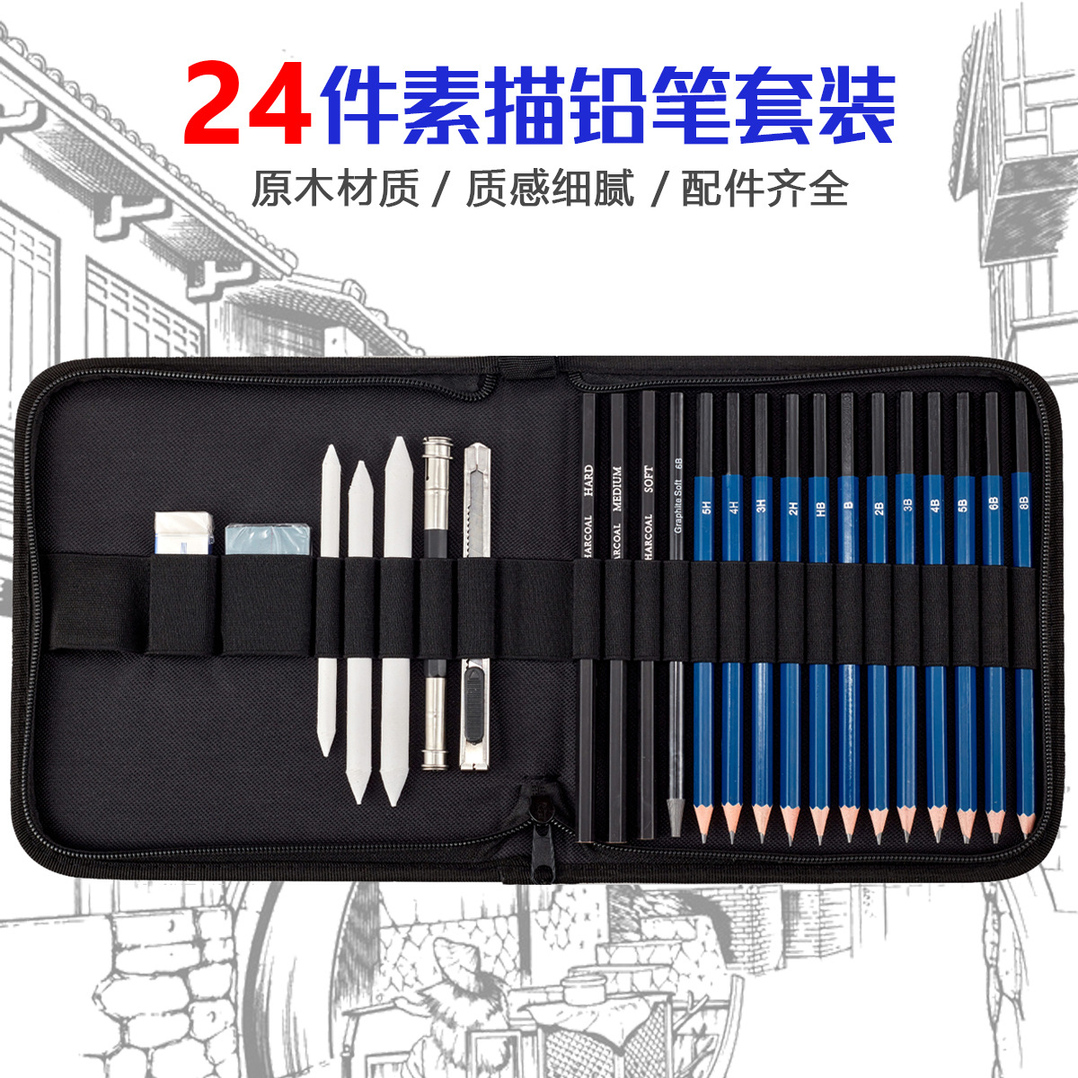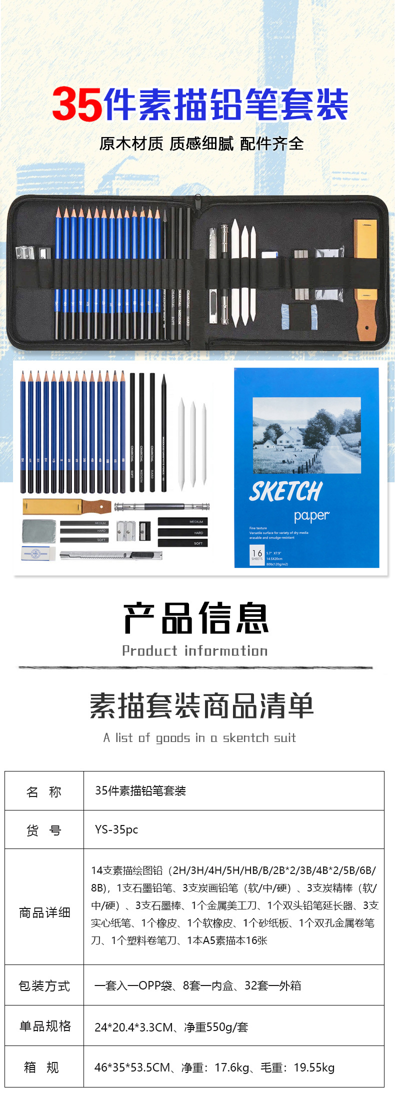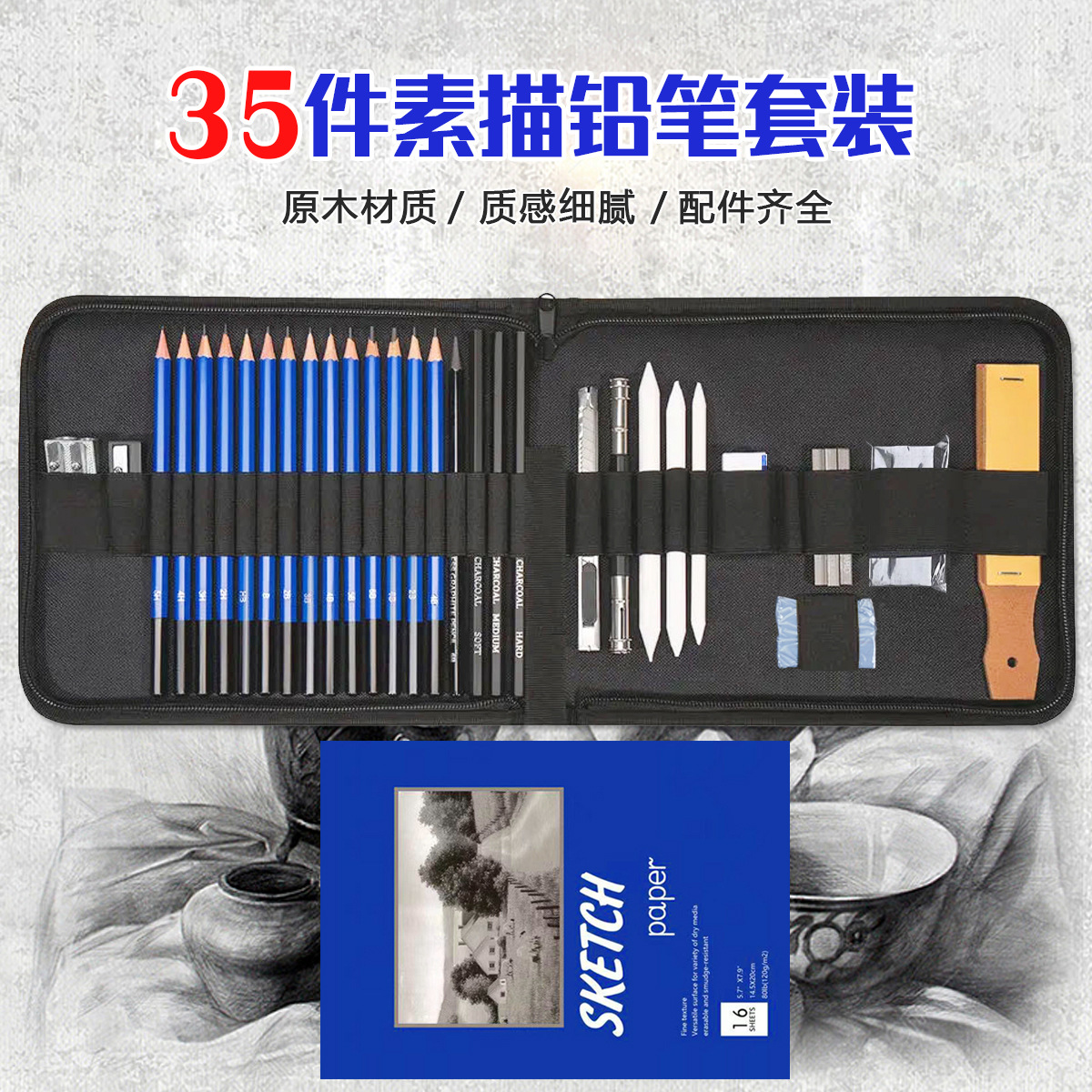 跨境35件素描铅笔套装40件绘画铅笔套装初学者专业美术工具包批发