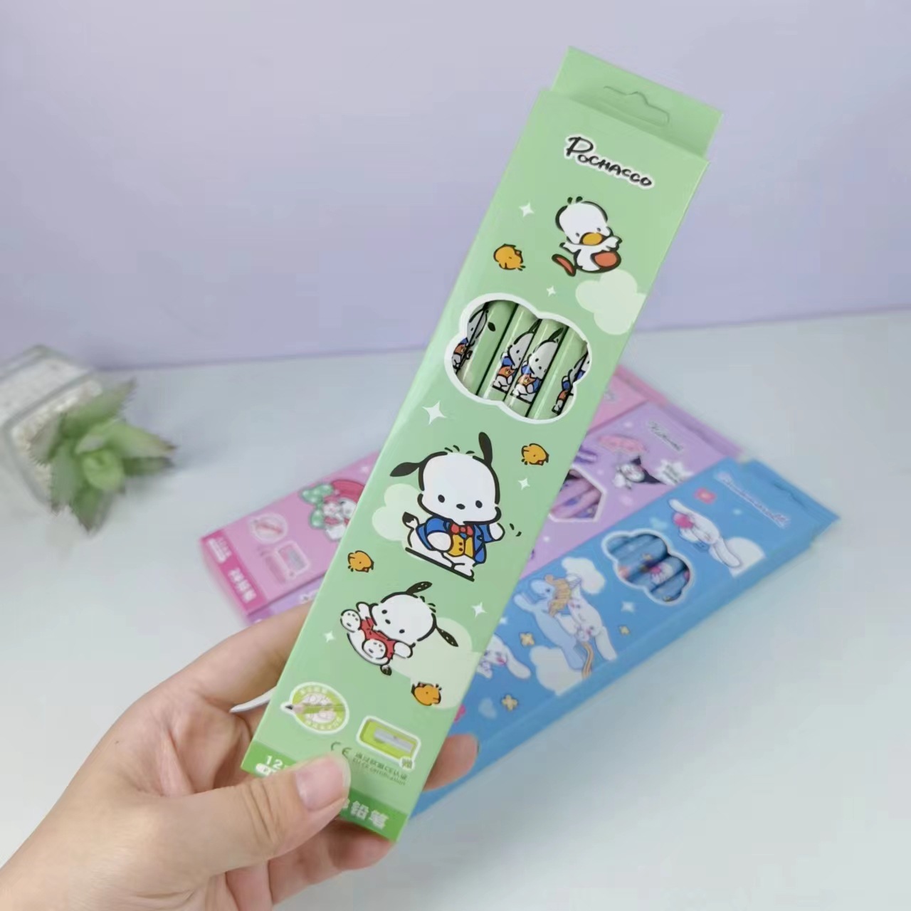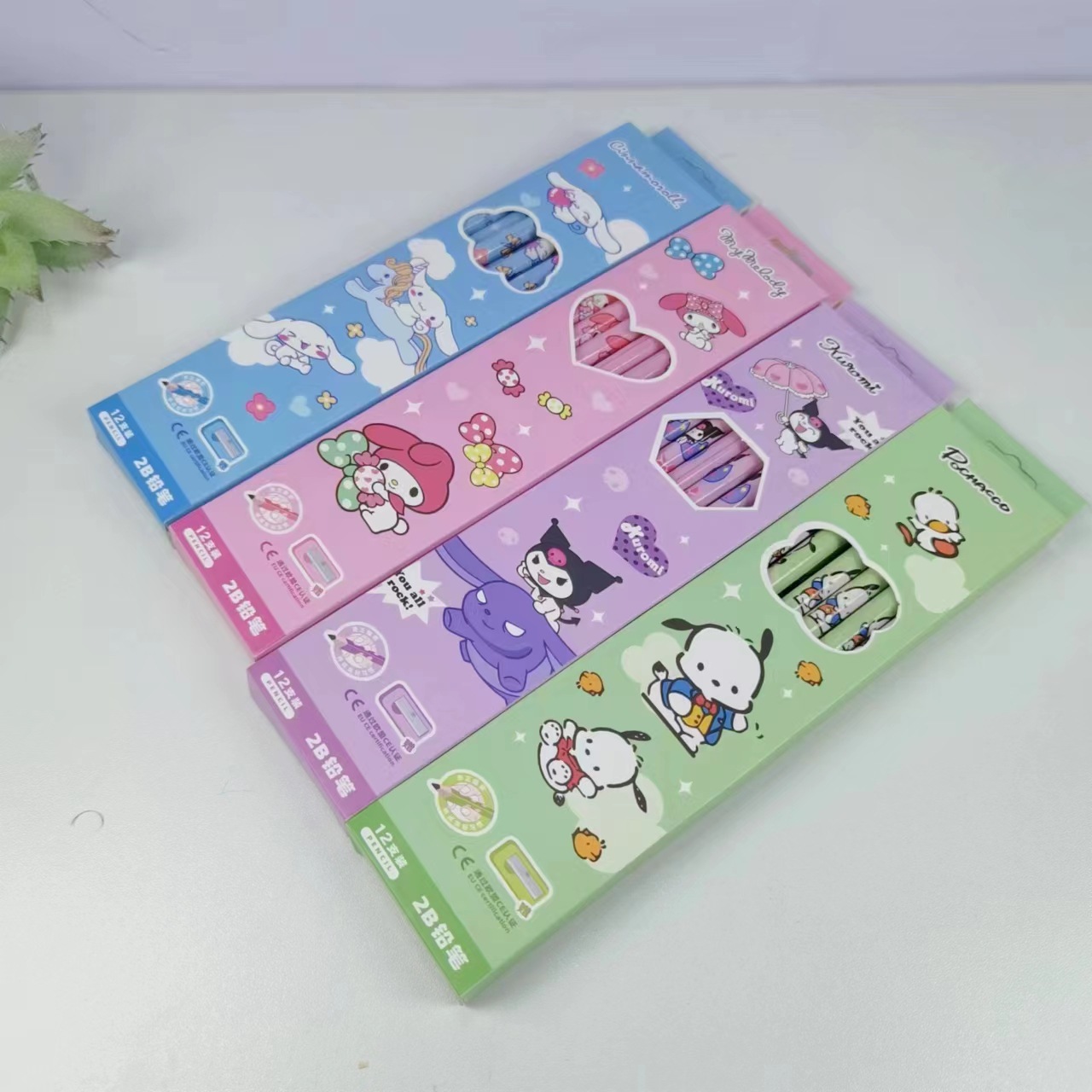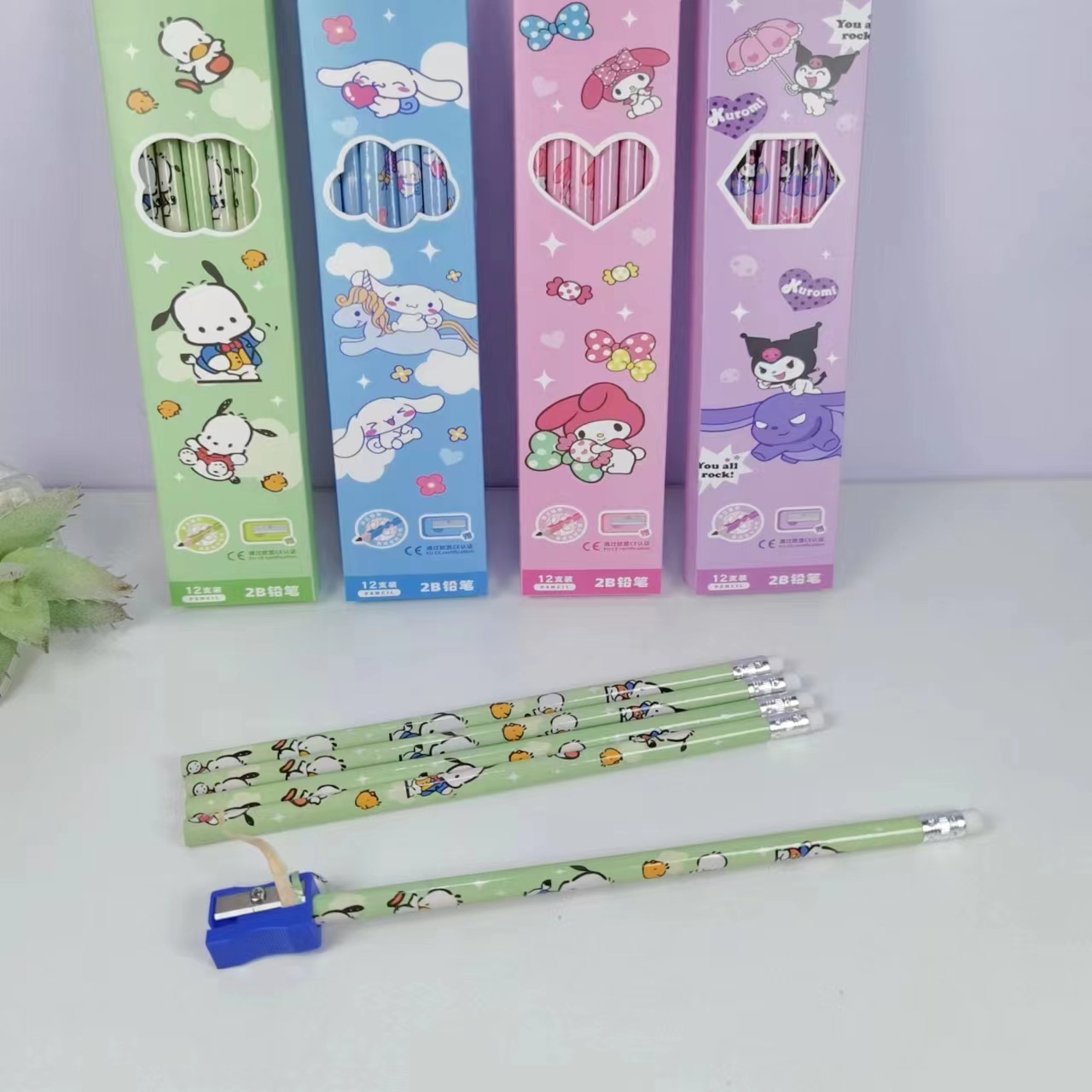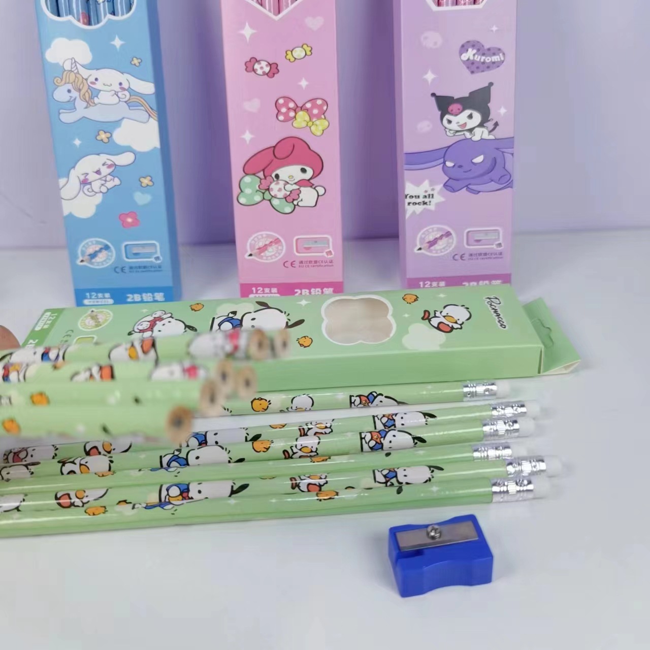 跨境帕恰卡通铅笔12只盒装小学生HB带橡皮擦铅笔儿童礼品画笔批发