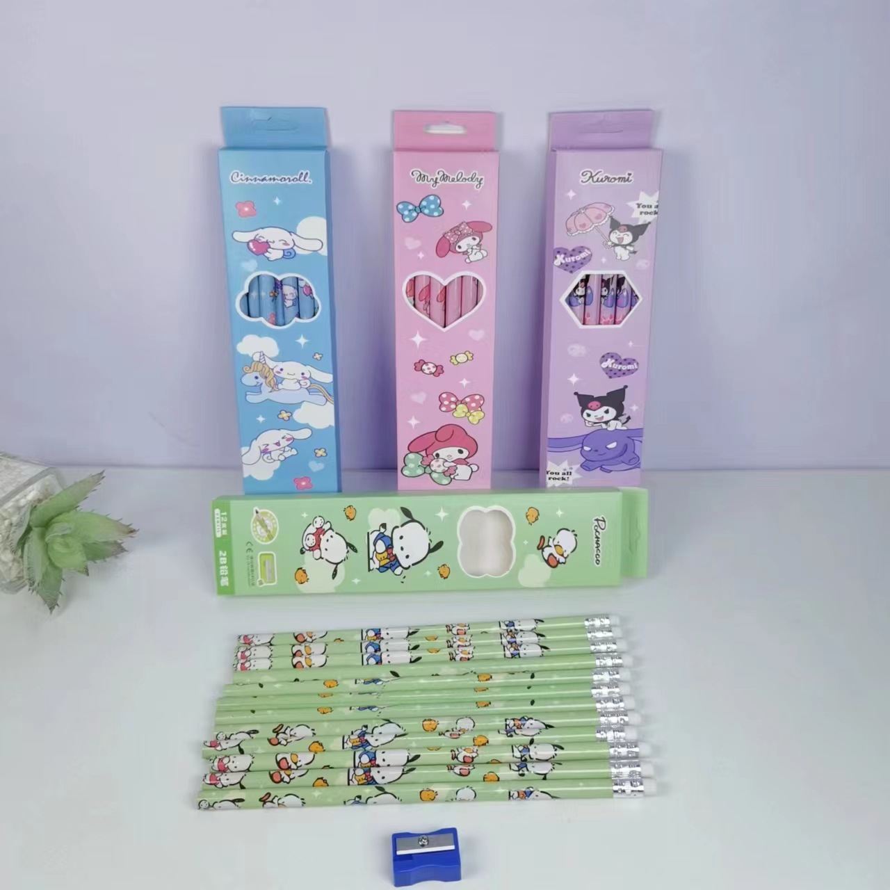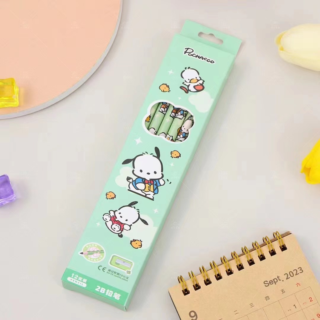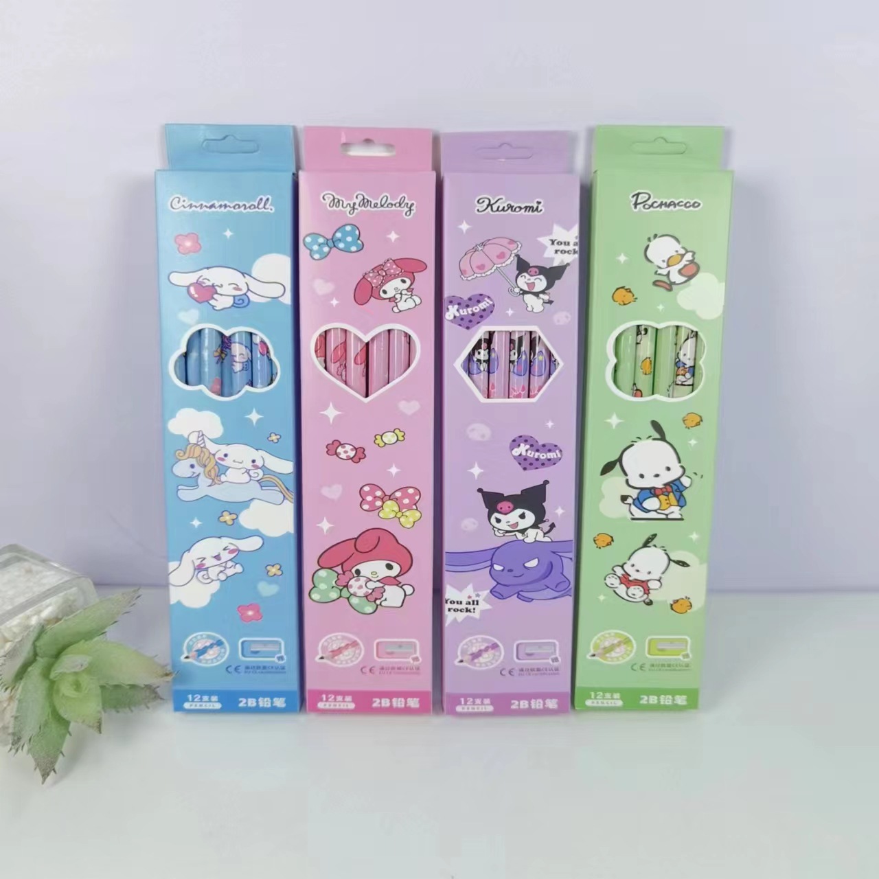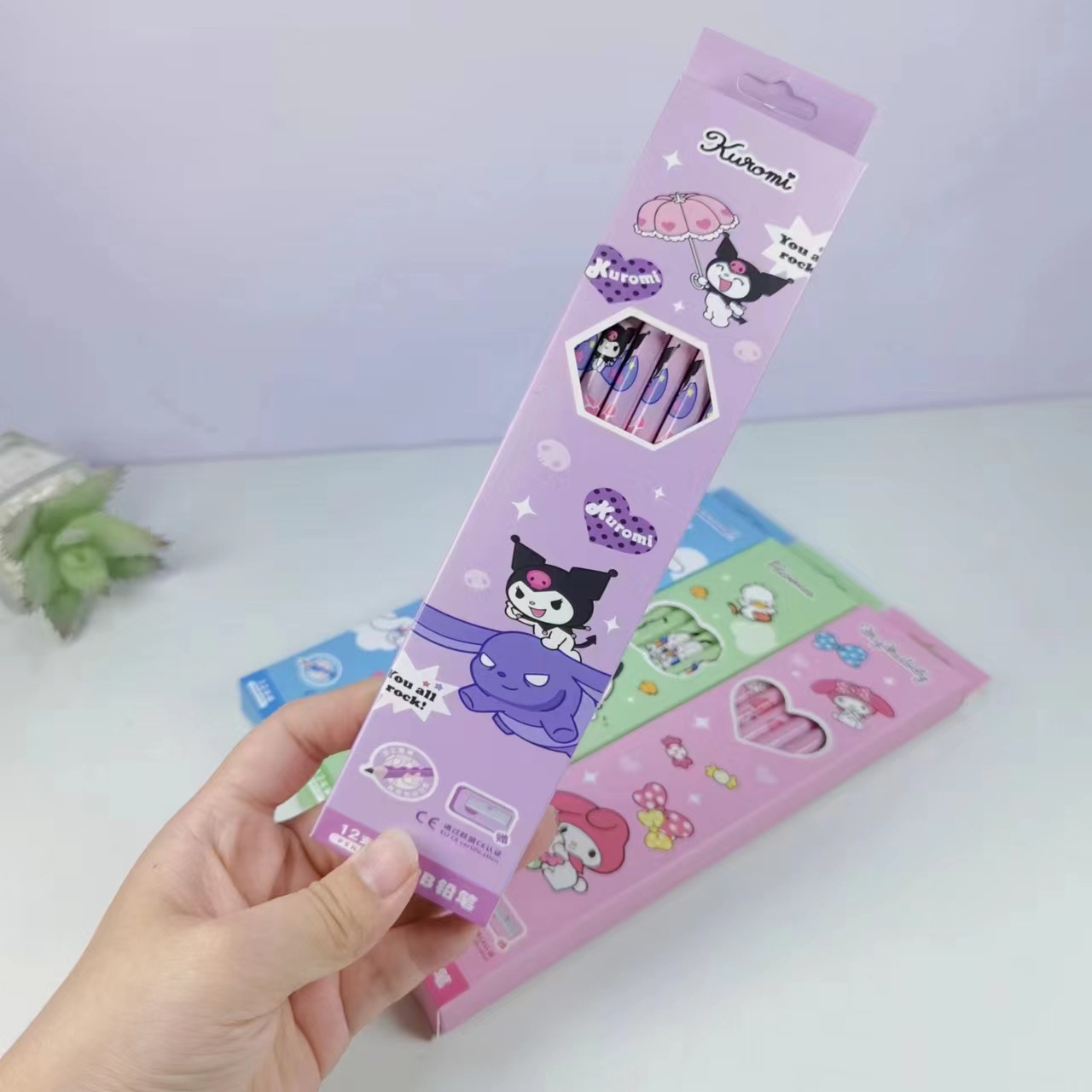 跨境帕恰卡通铅笔12只盒装小学生HB带橡皮擦铅笔儿童礼品画笔批发