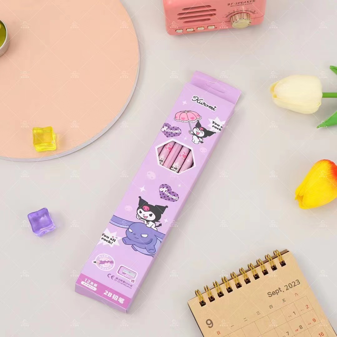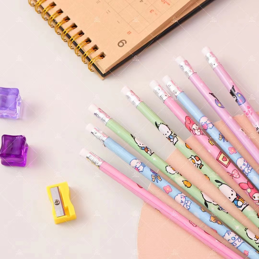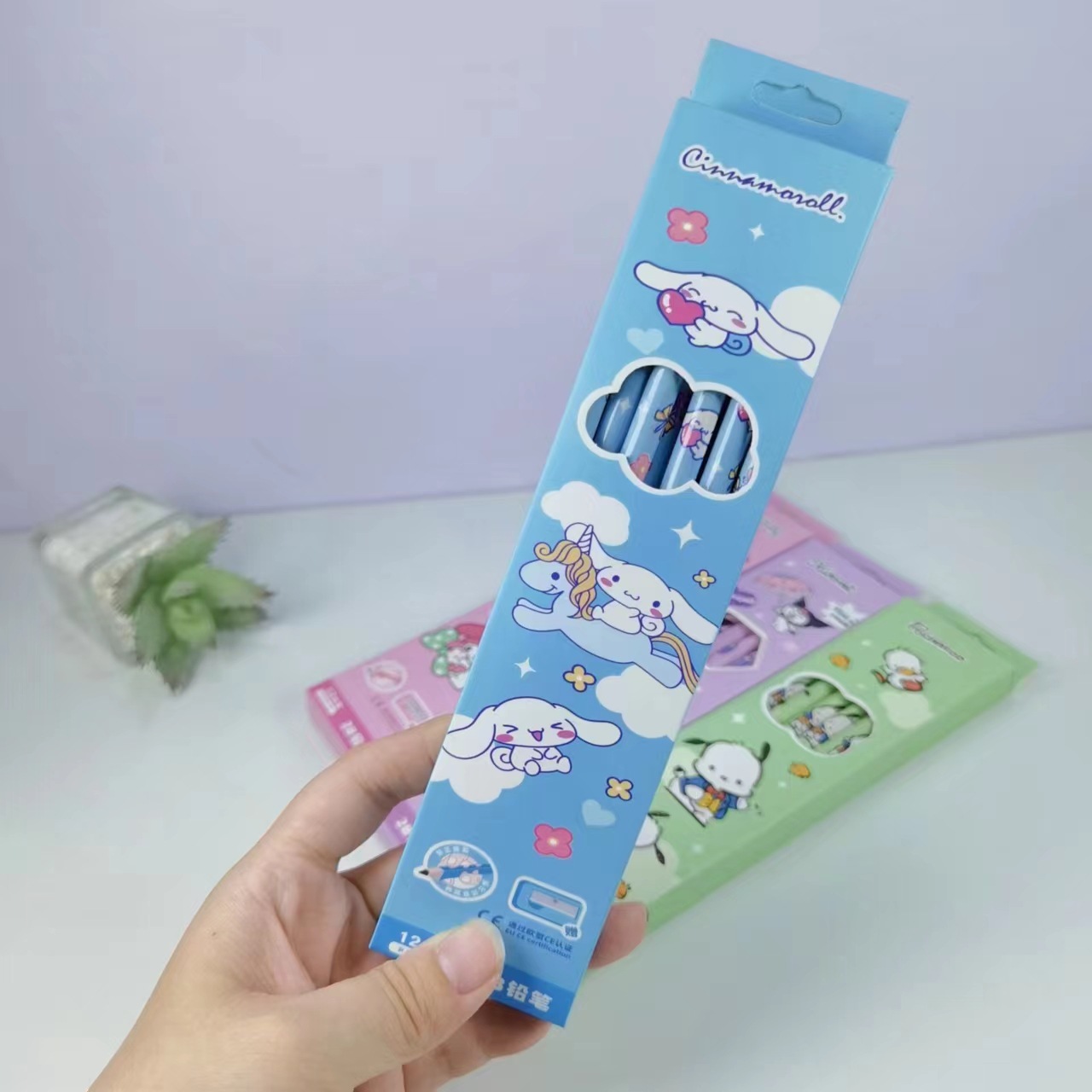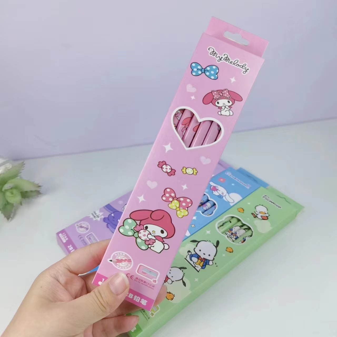 跨境帕恰卡通铅笔12只盒装小学生HB带橡皮擦铅笔儿童礼品画笔批发