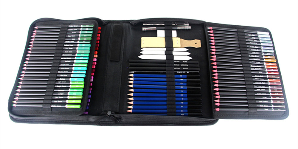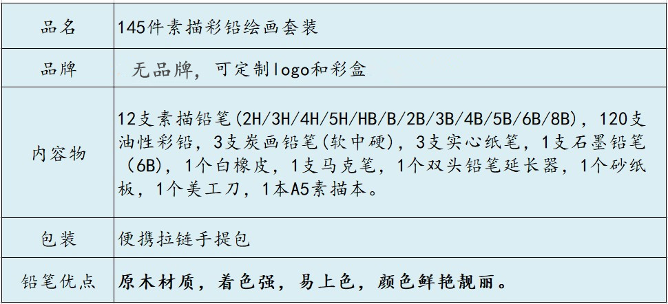 跨境热卖 145件素描彩铅绘画套装 素描铅笔套装 美术油性彩铅套装