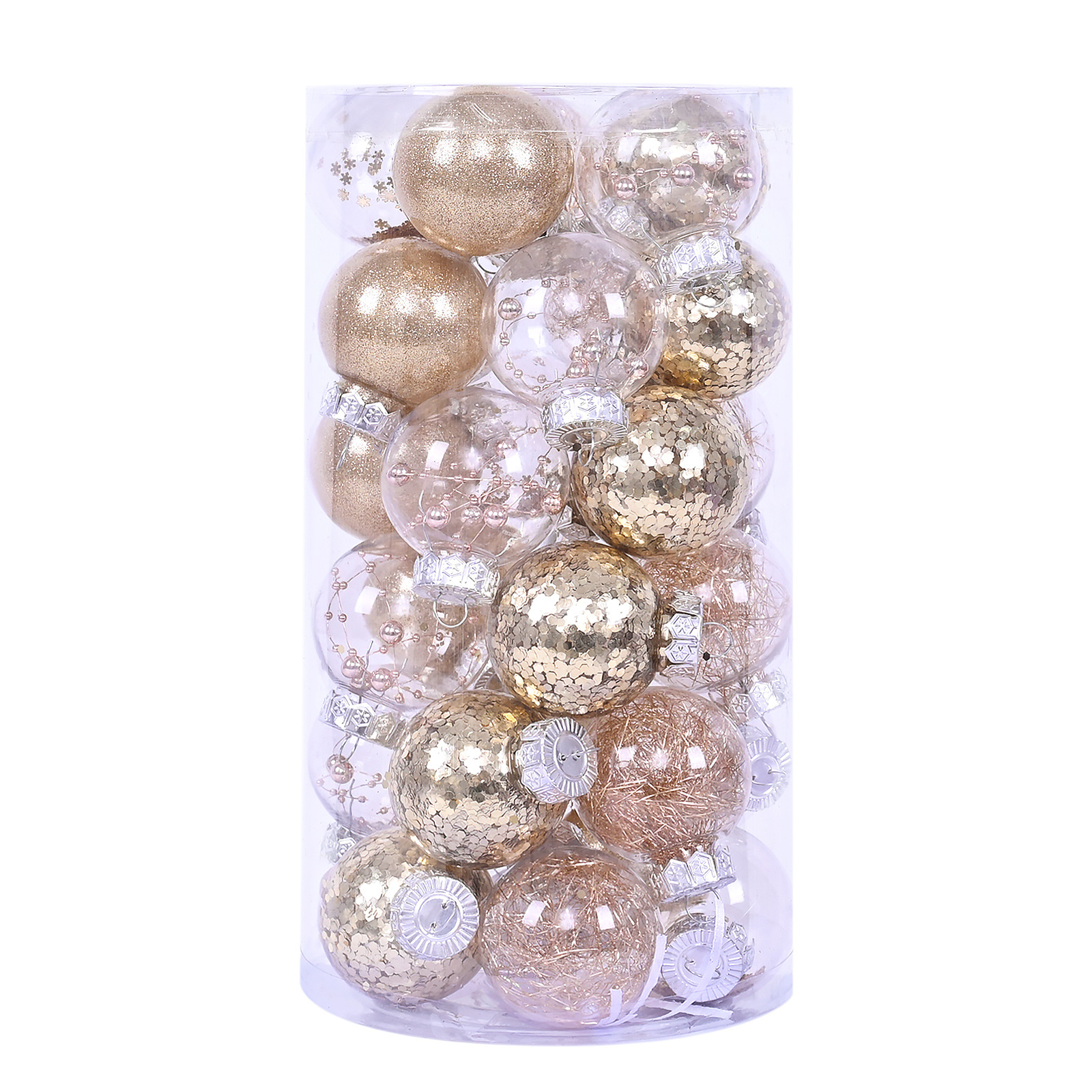 亚马逊热销圣诞装饰球6CM30个透明PET圆桶圣诞球商场橱窗节日装饰
