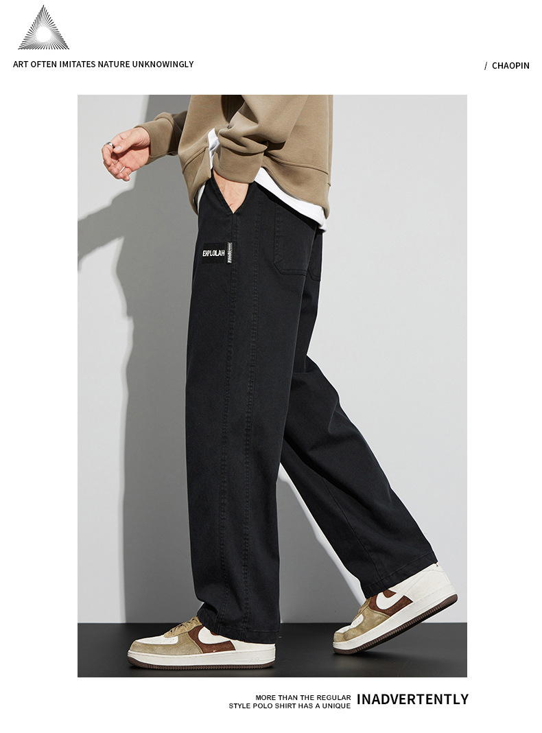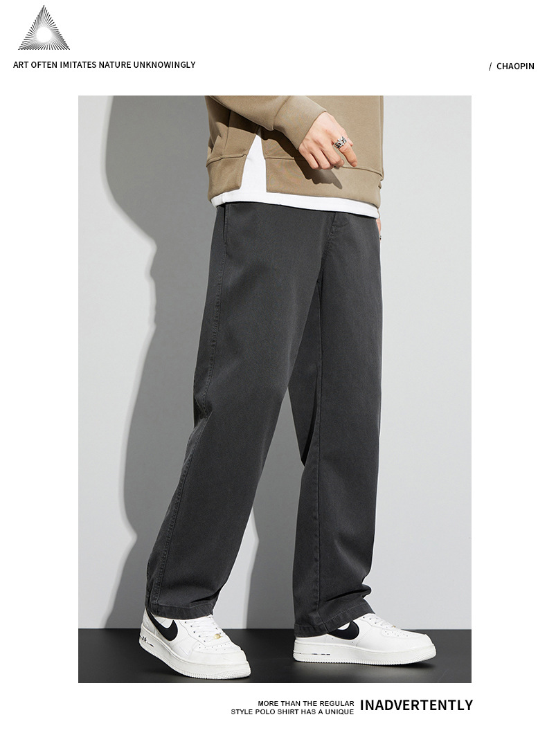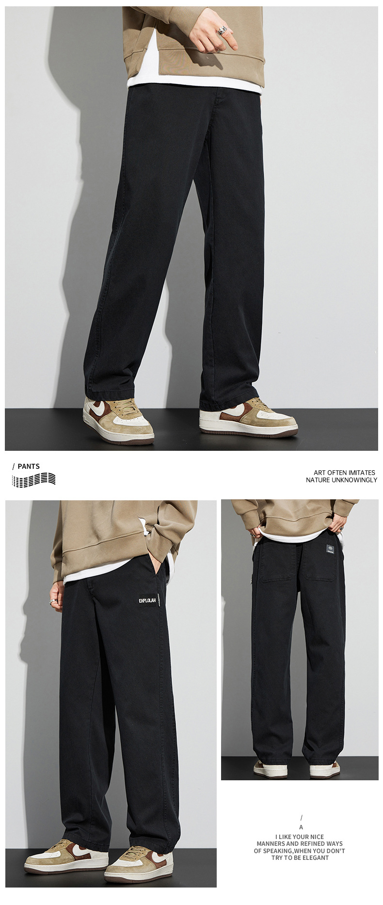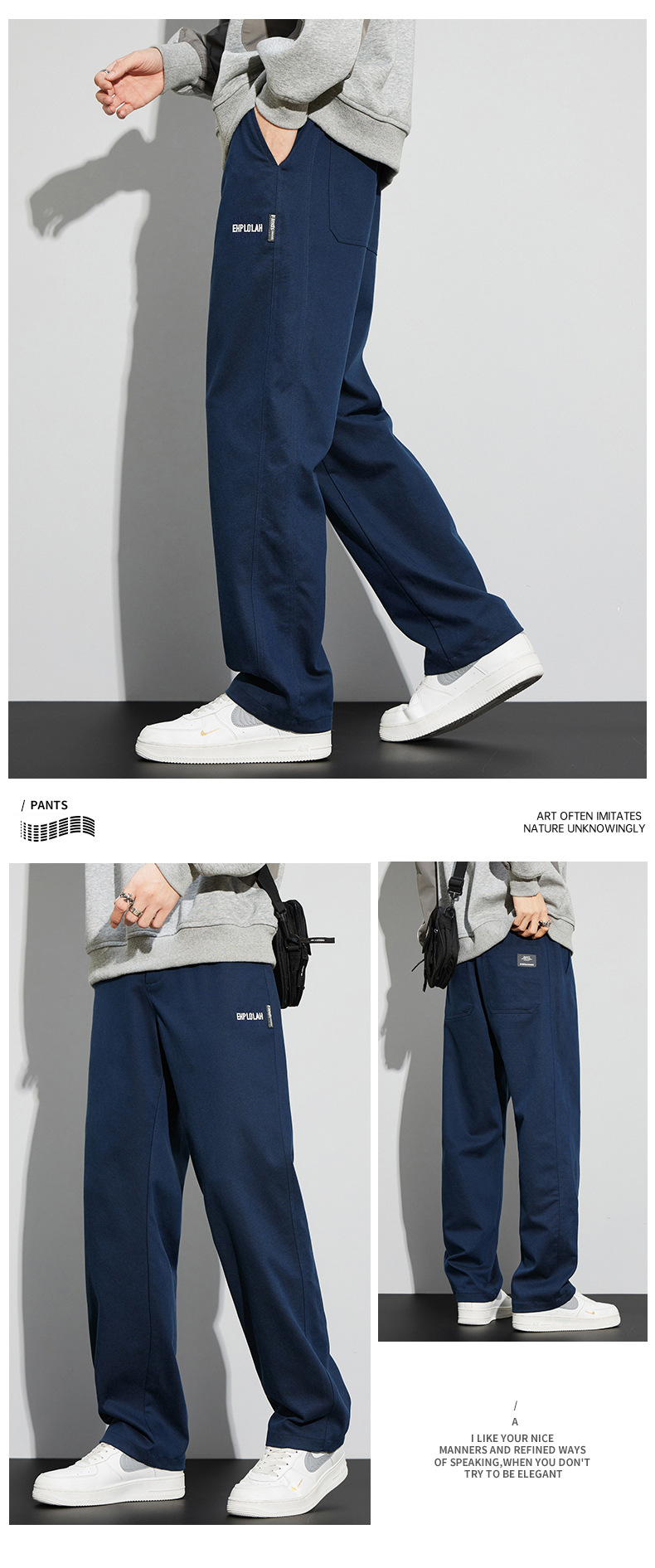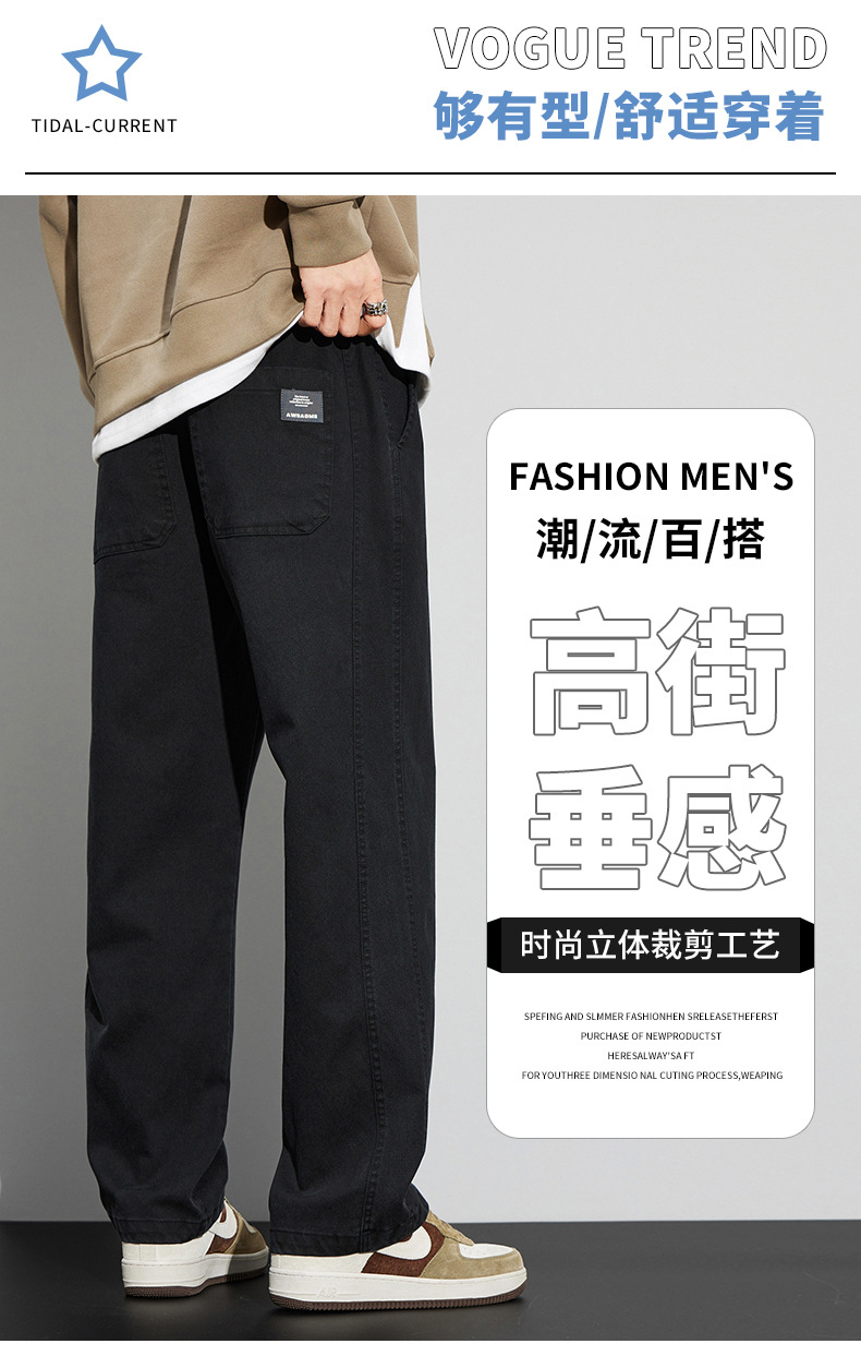 春季新款阔腿休闲裤宽松大码直筒纯色裤子男士百搭潮流裤子男