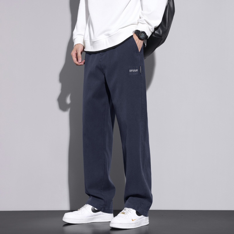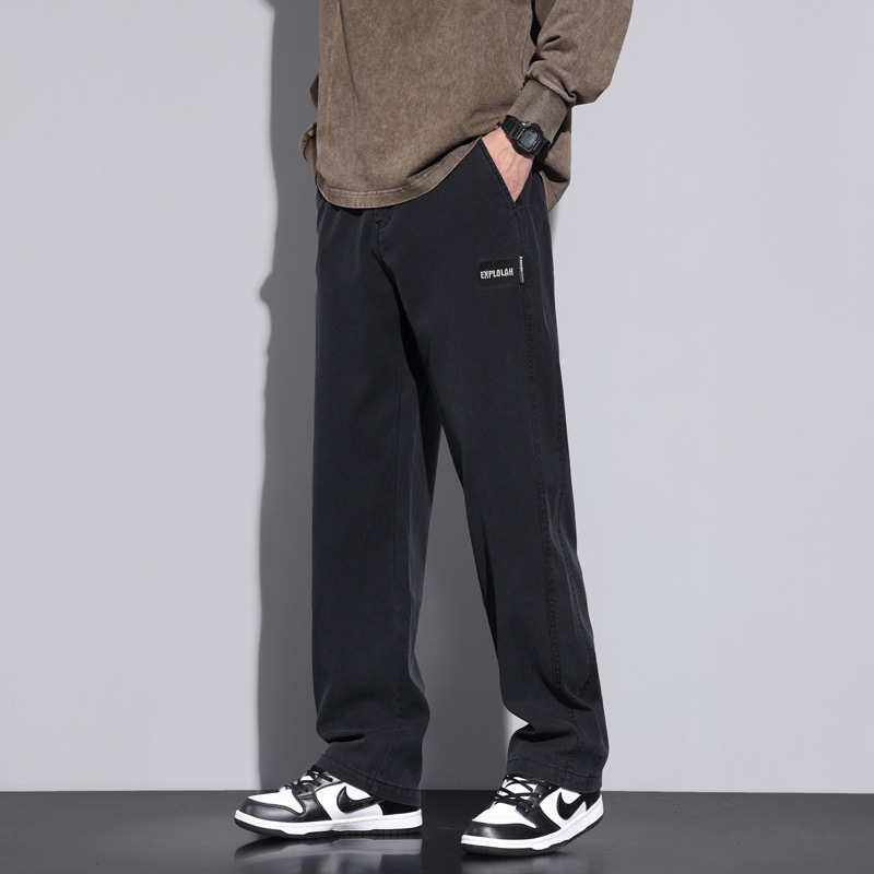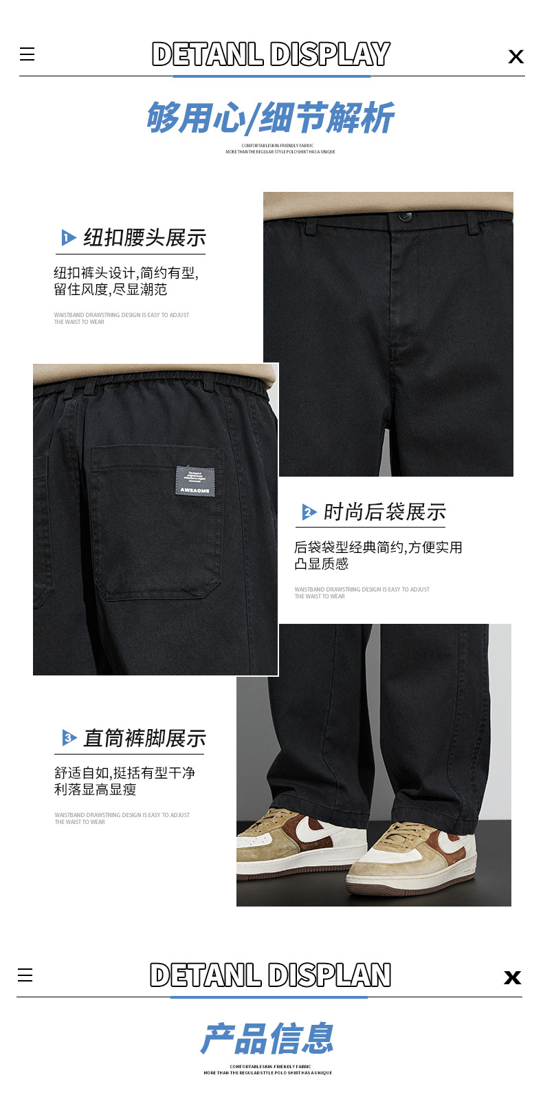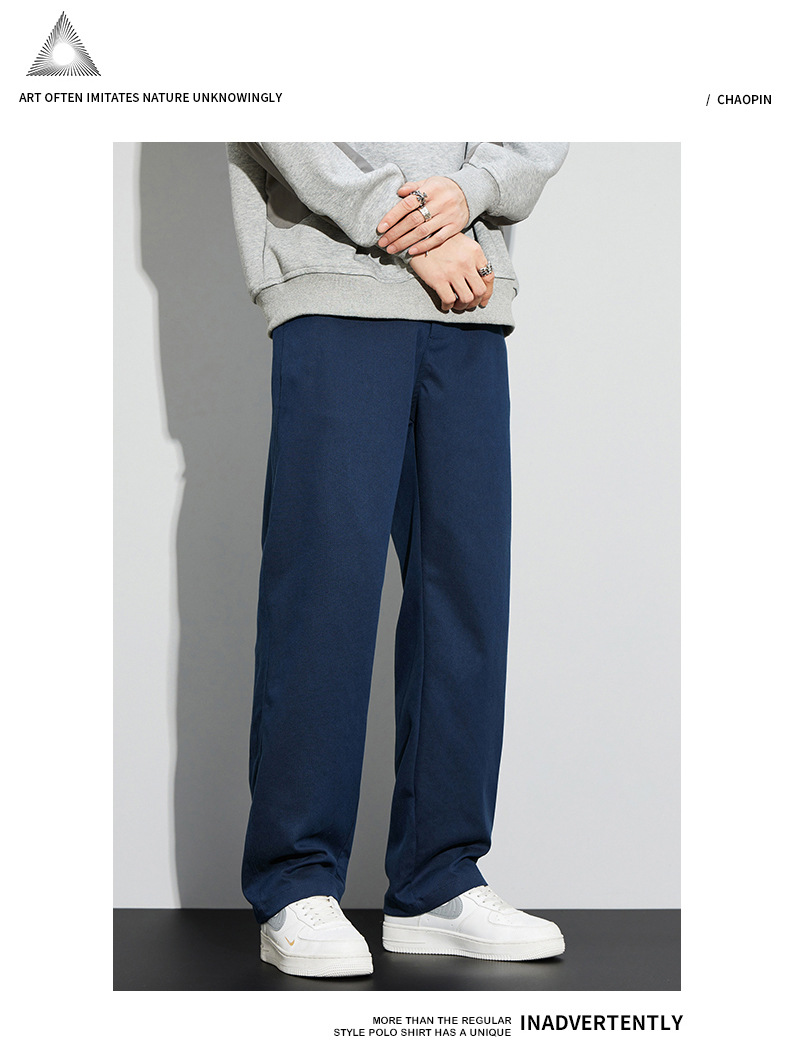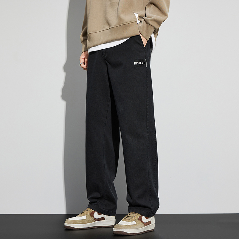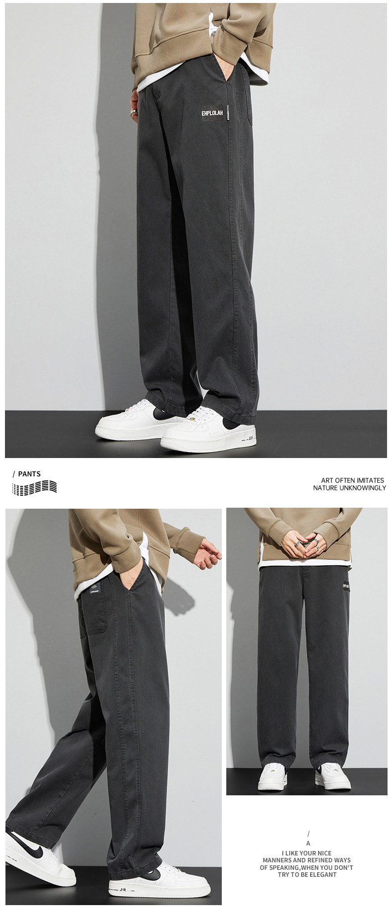 春季新款阔腿休闲裤宽松大码直筒纯色裤子男士百搭潮流裤子男