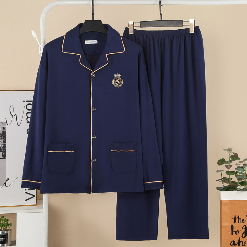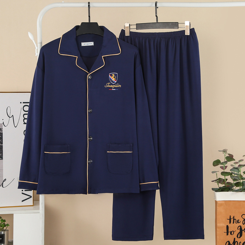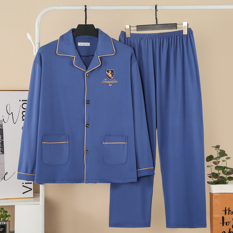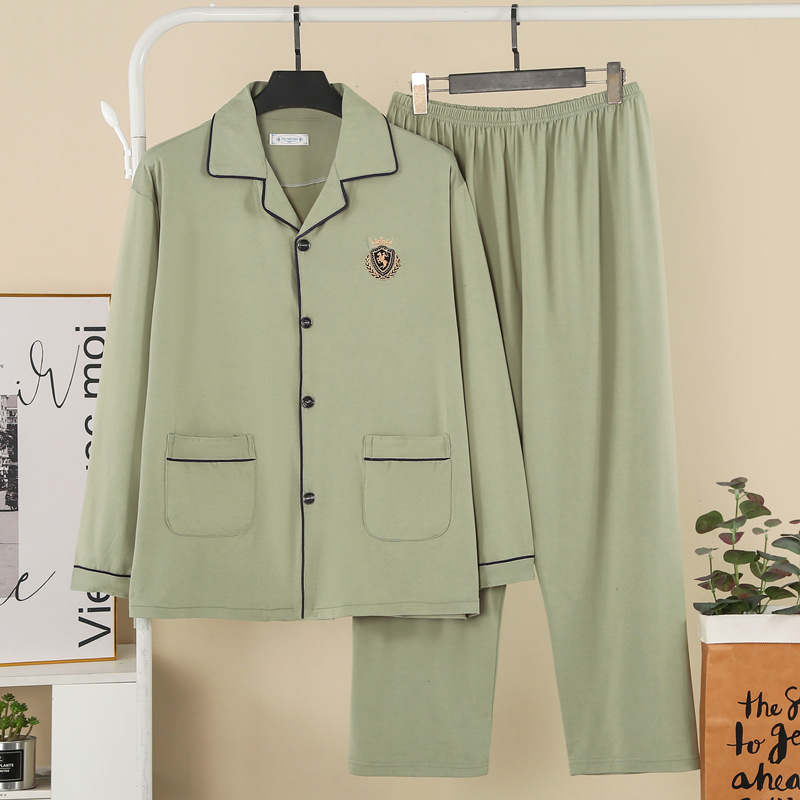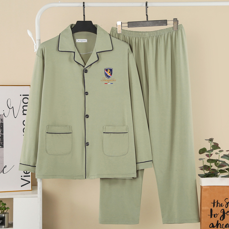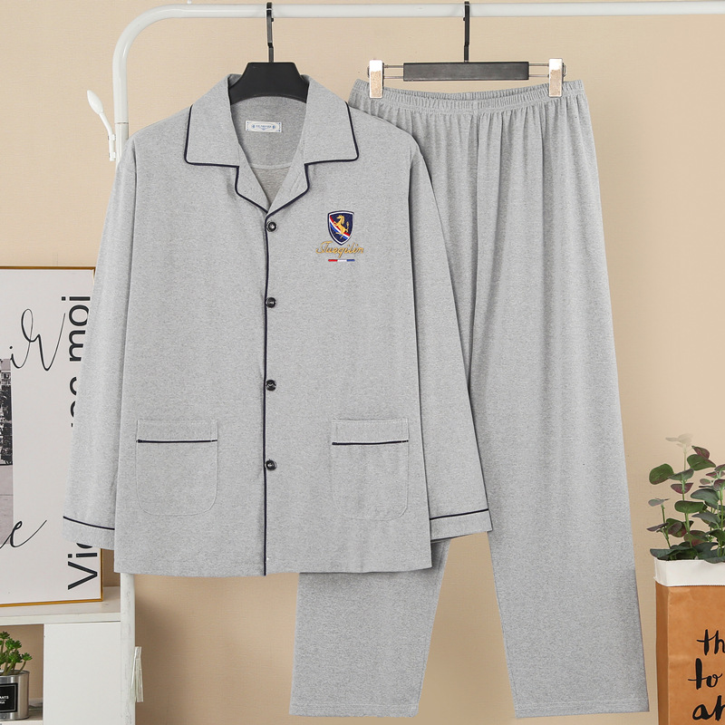 2301睡衣男式春秋季纯色棉质长袖休闲套装男士夏款家居服可外穿