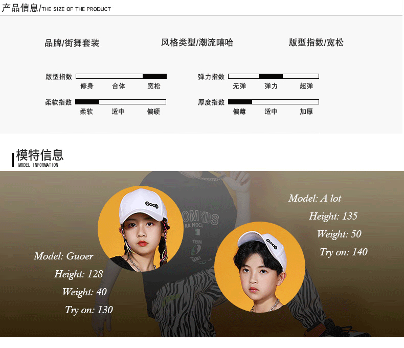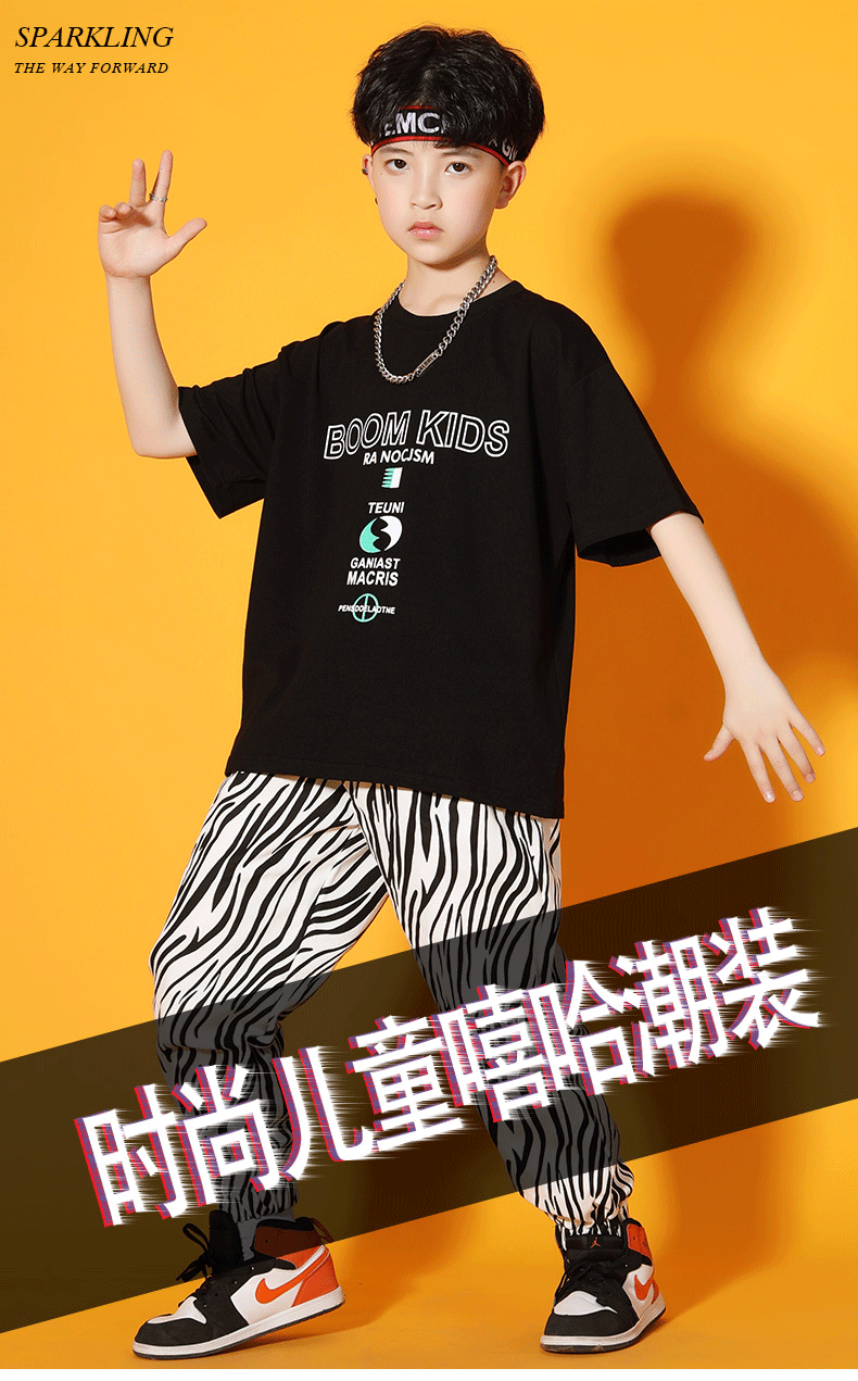 爵士舞儿童服装男女童中小学生运动会演出服街舞嘻哈宽松练功服潮