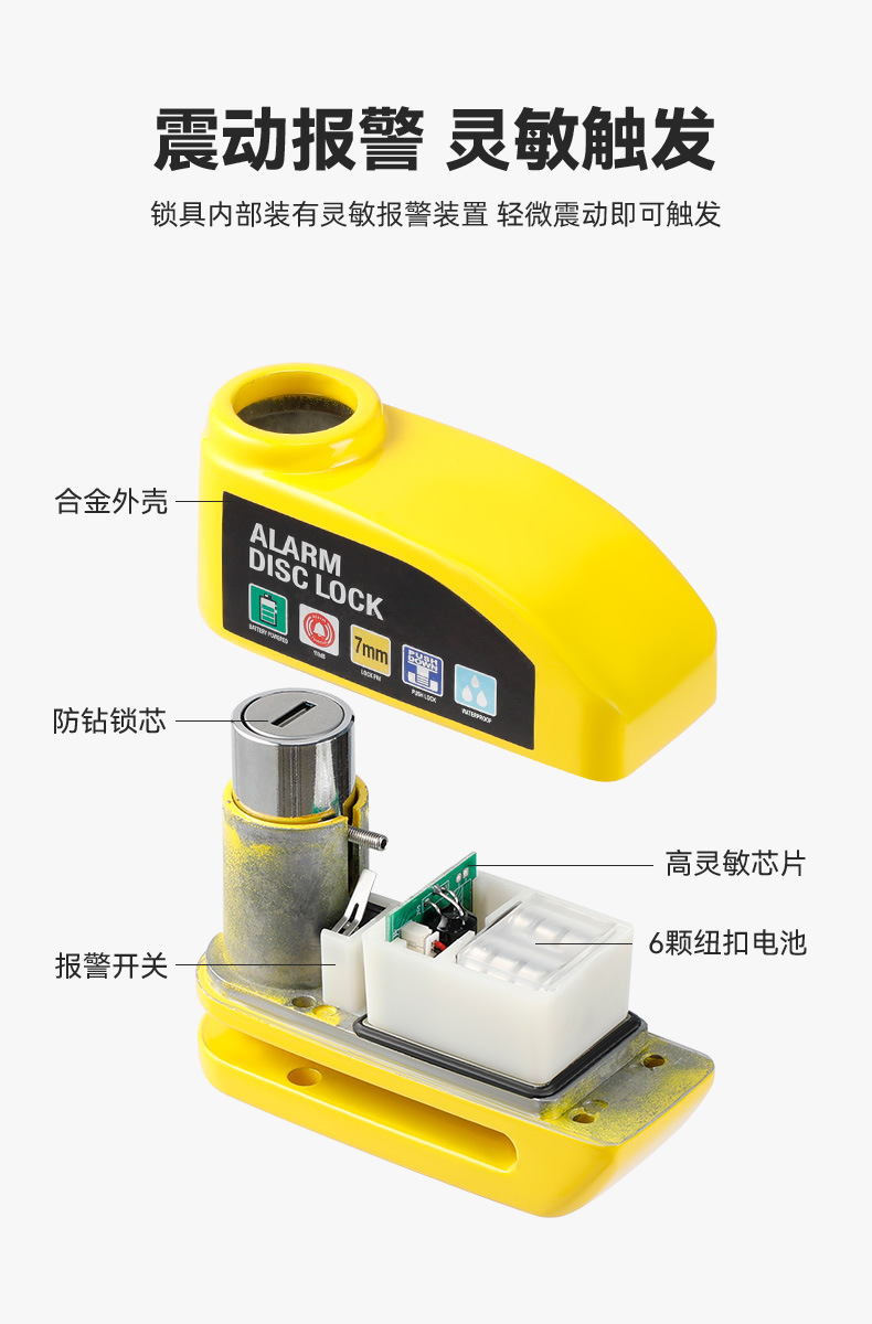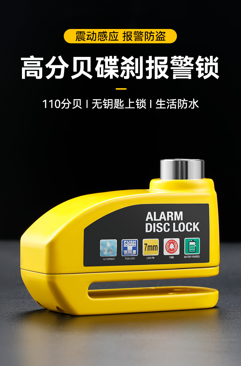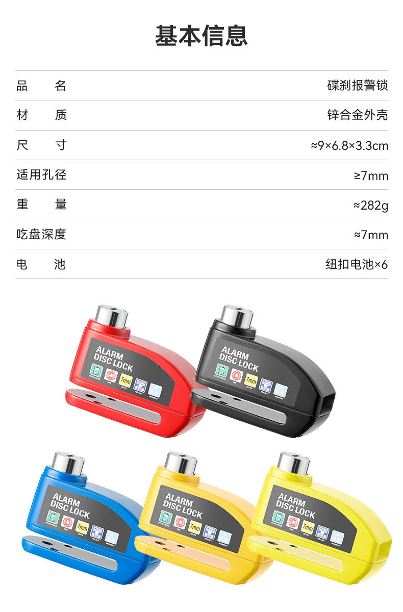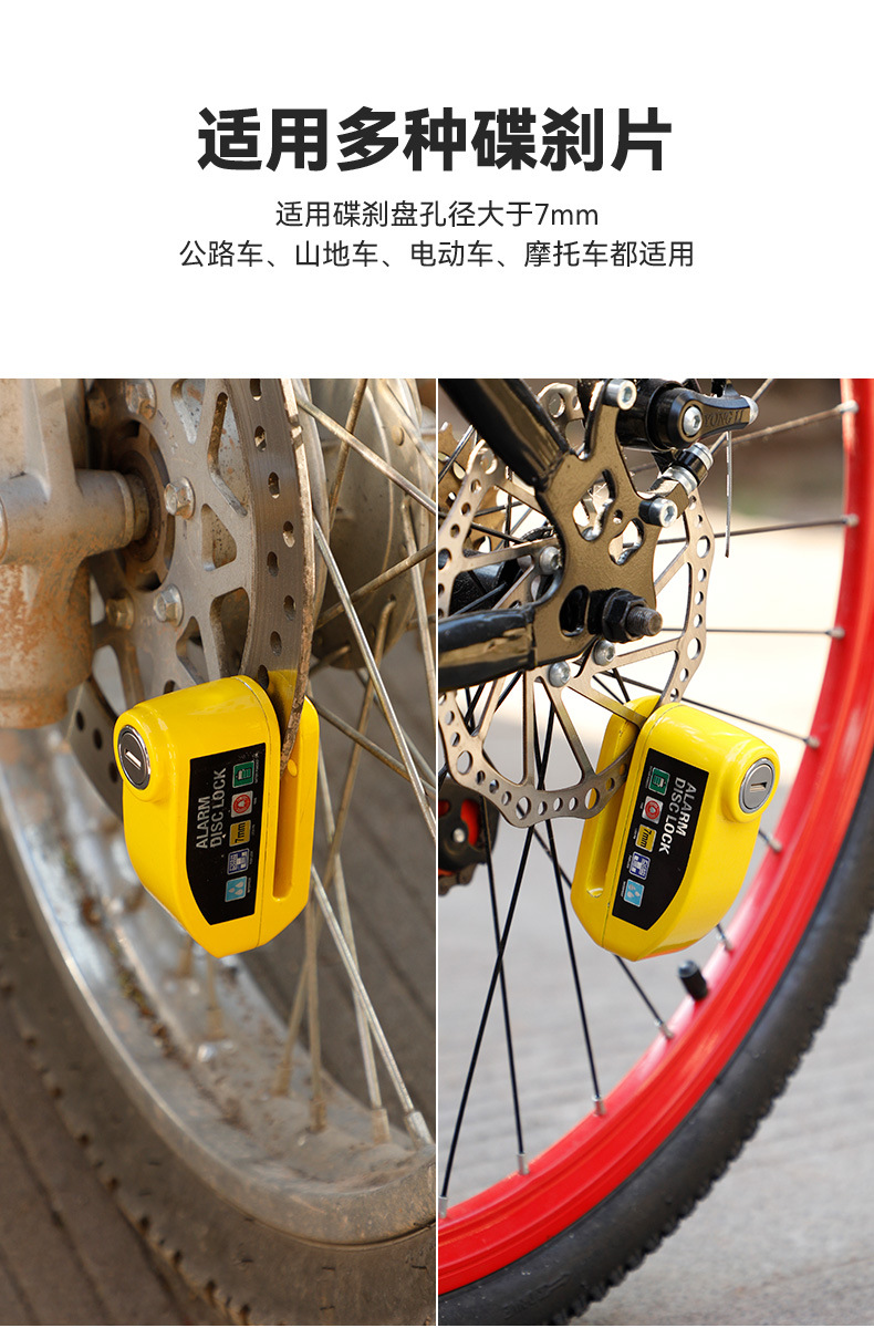 自行车碟刹锁报警器 电动车锁 摩托车刹车盘防盗锁骑行装备蹦果