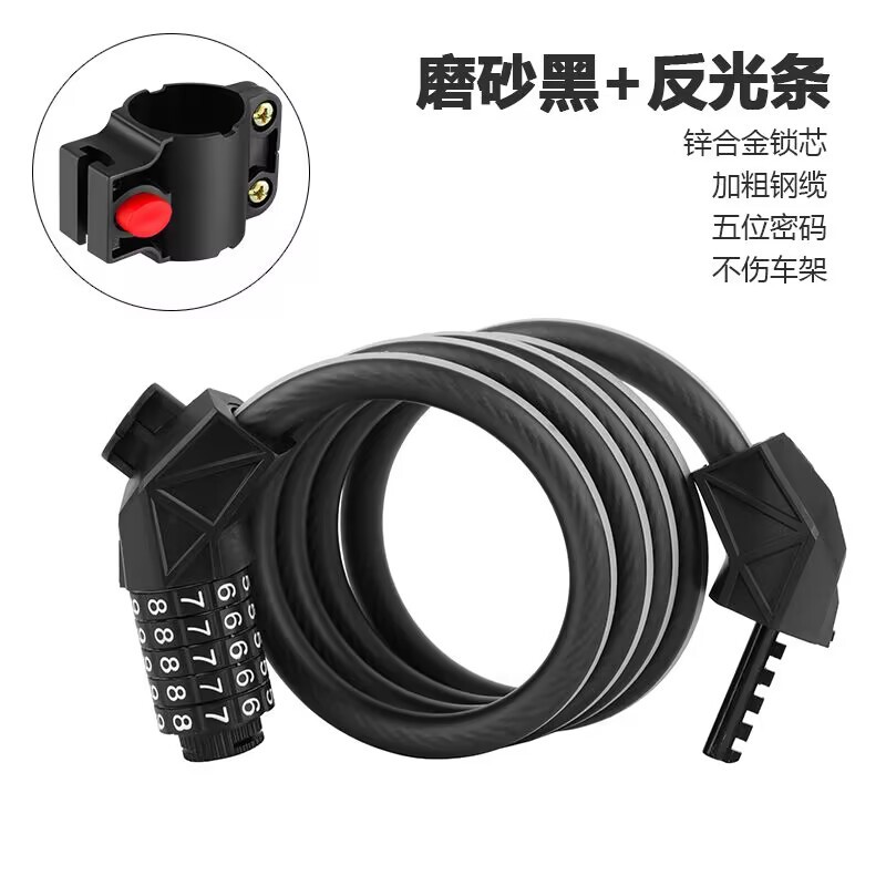 自行车锁五位密码锁加粗钢缆锁防盗电动车山地车锁单车链条锁加长