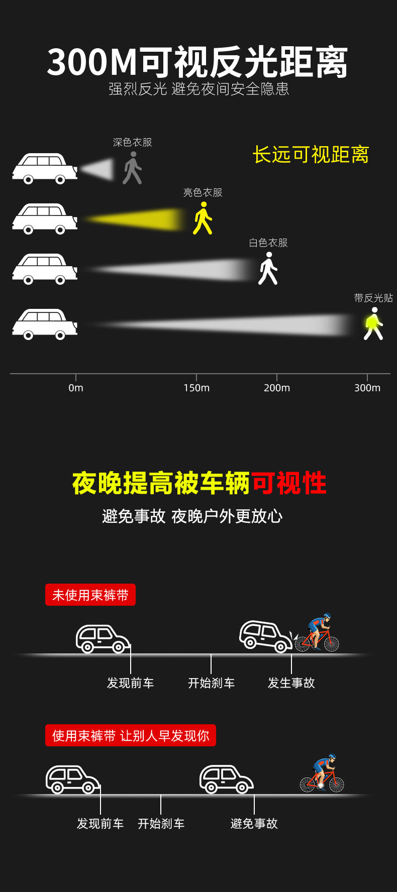 自行车束裤带 山地车夜间高亮加宽反光束腿绑带 骑行配件蹦果批发