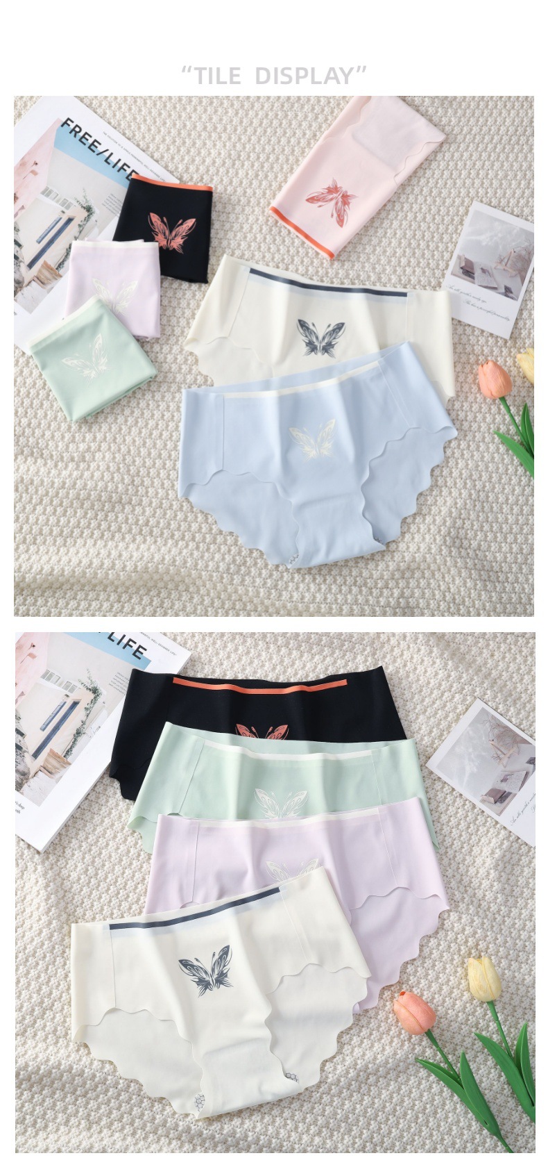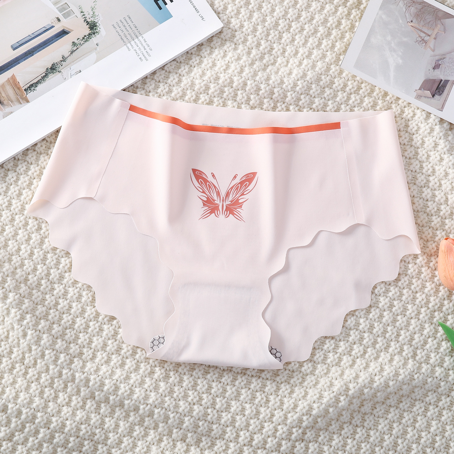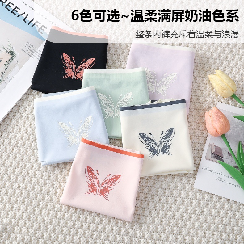 蝴蝶甜美少女一片式波浪边无痕内裤批发透气舒适女士中腰三角裤