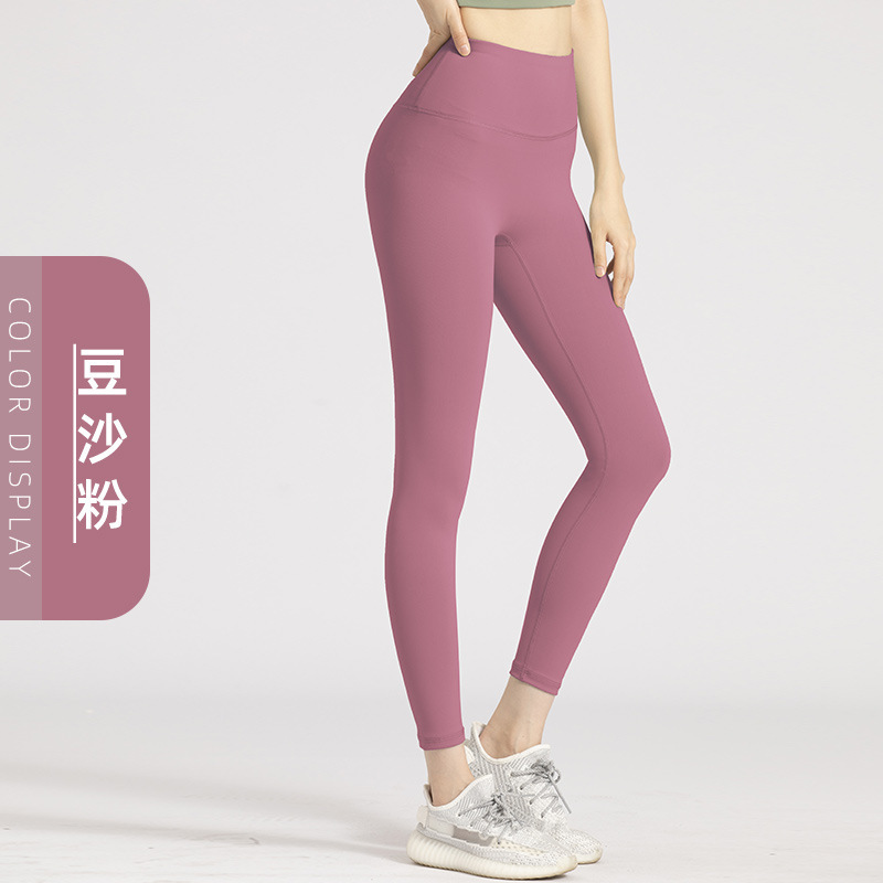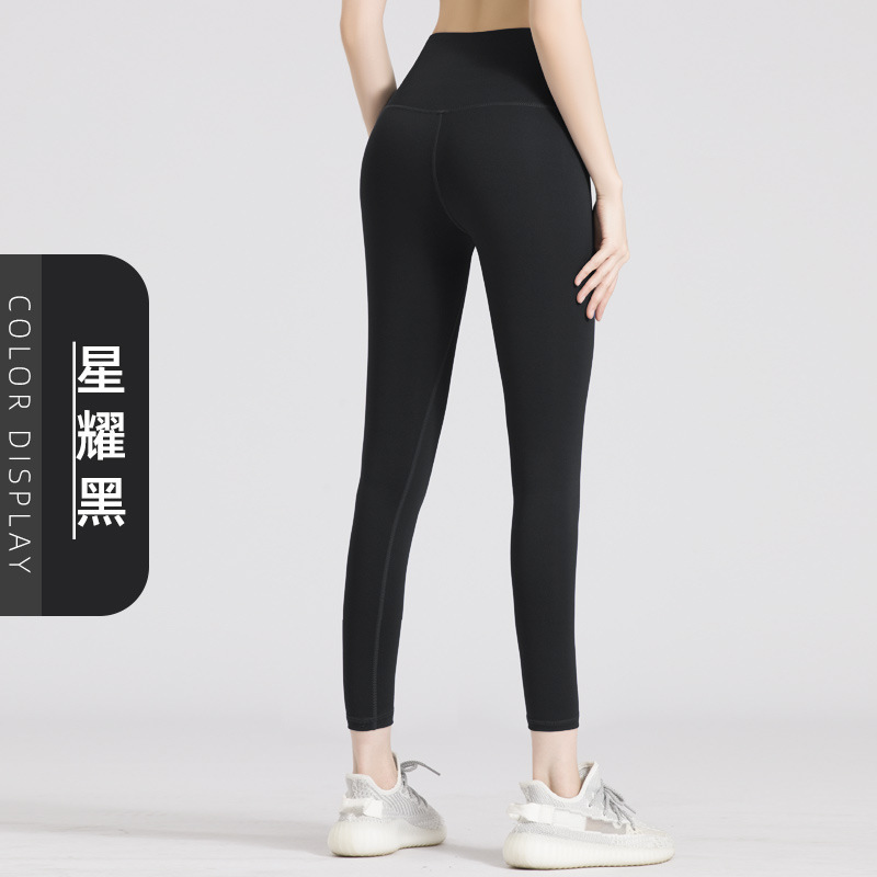 蜜桃高腰一片式无尴尬线运动跑步九分裤防卷边健身训练瑜伽裤跨境