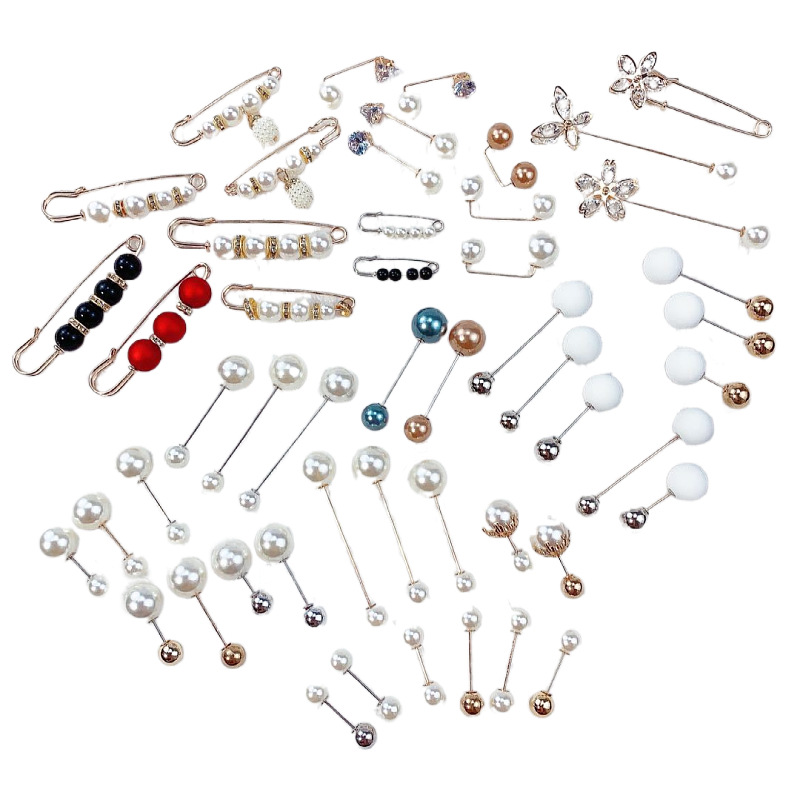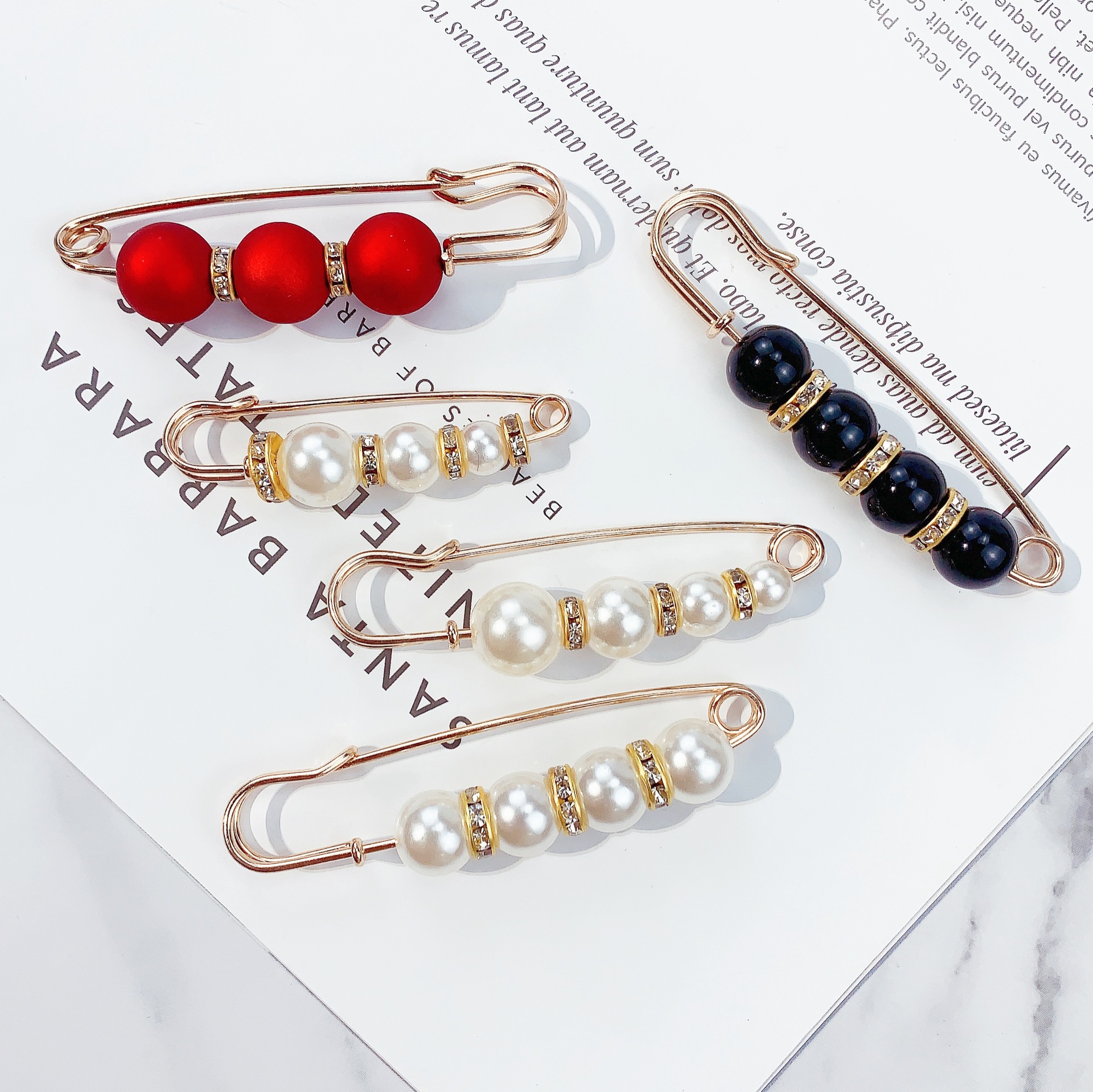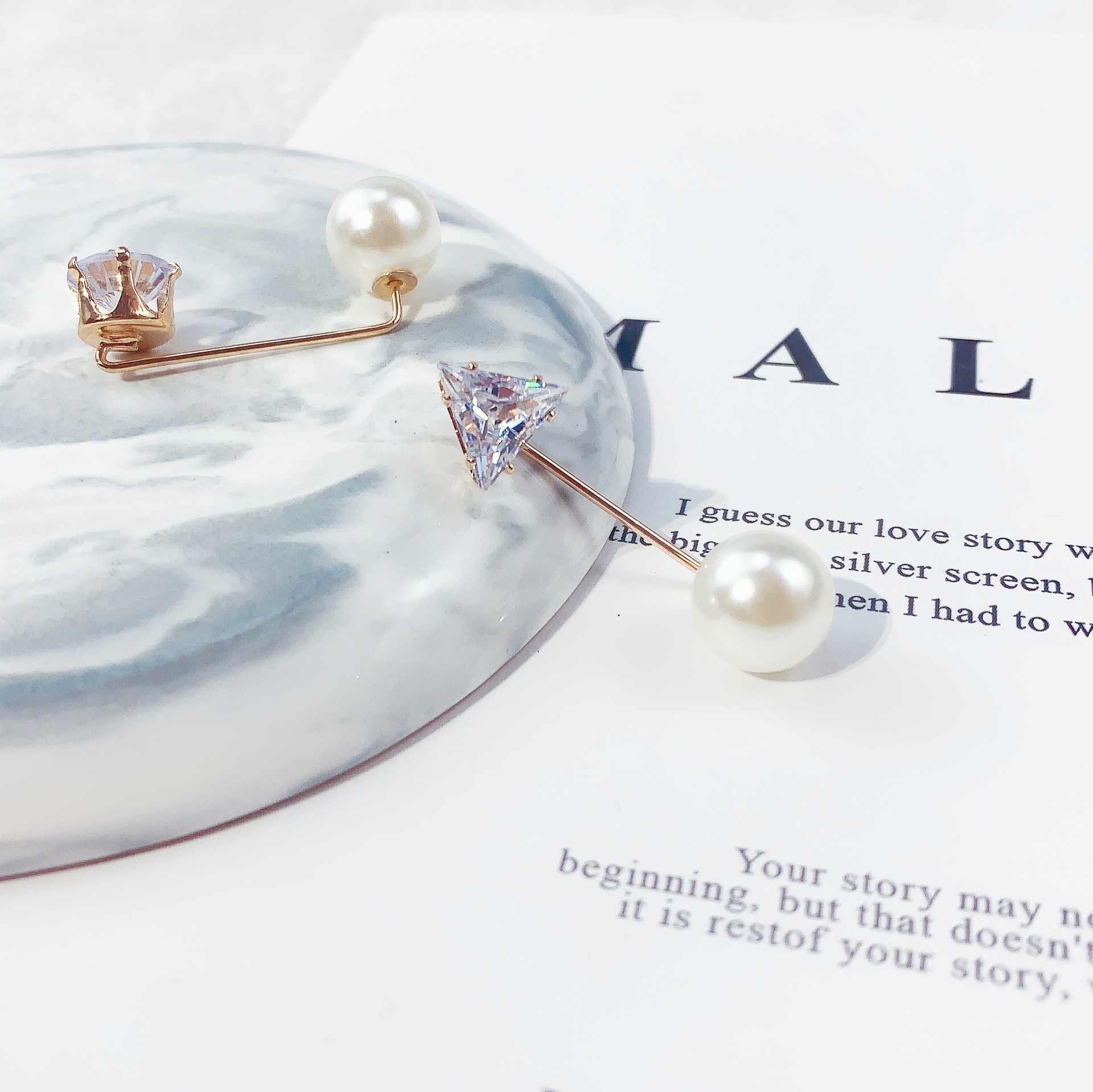韩国收腰防走光扣胸针女别针女一字胸花双头珍珠开衫扣领针扣多款