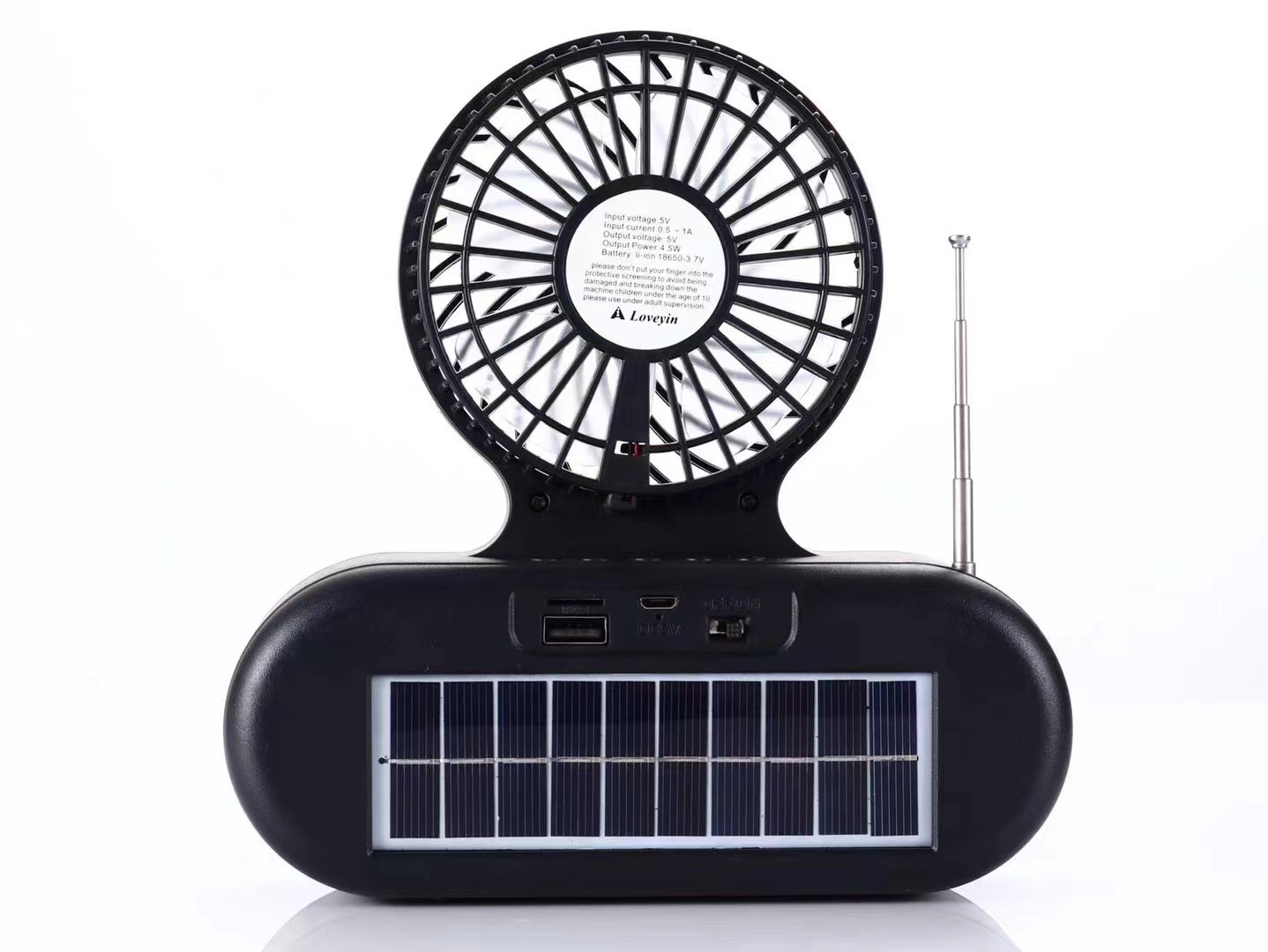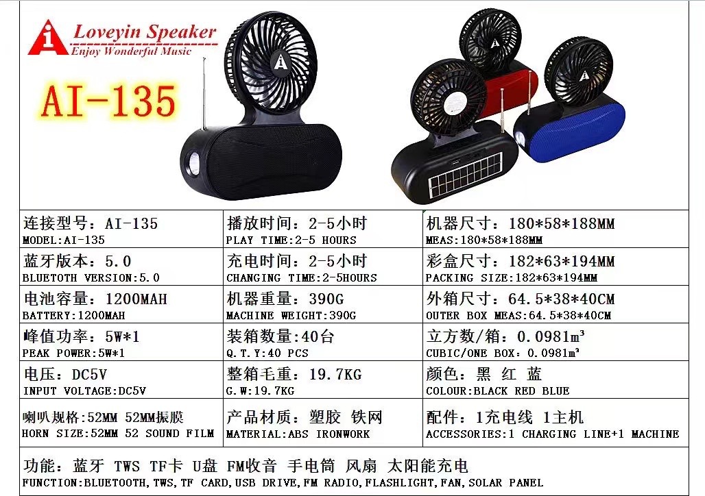 Ai-135太阳能风扇音响 天线收音FM插卡U盘播放手提便携式无线音箱