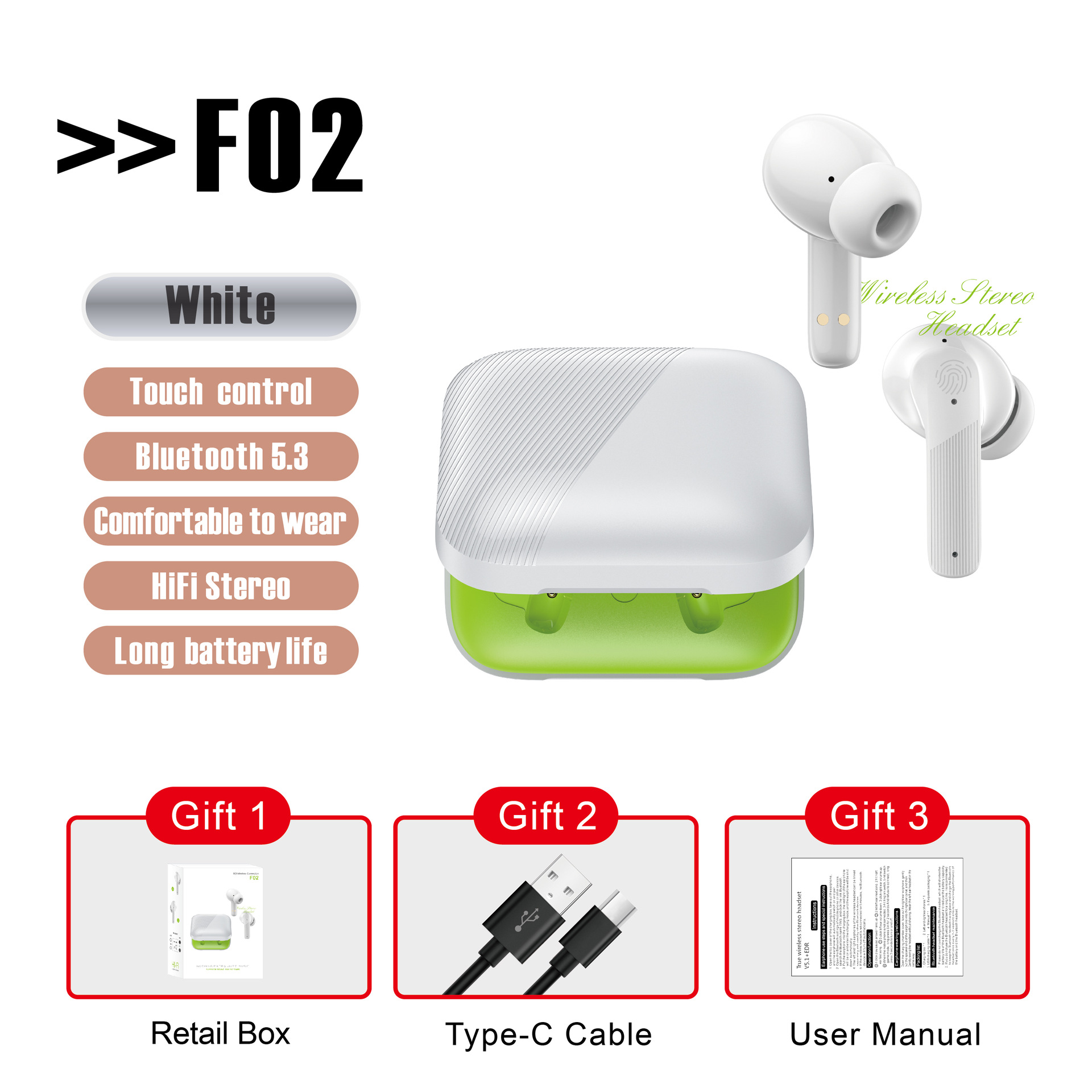 跨境新款 F02无线蓝牙耳机5.3长续航TWS低延迟入耳式运动耳机