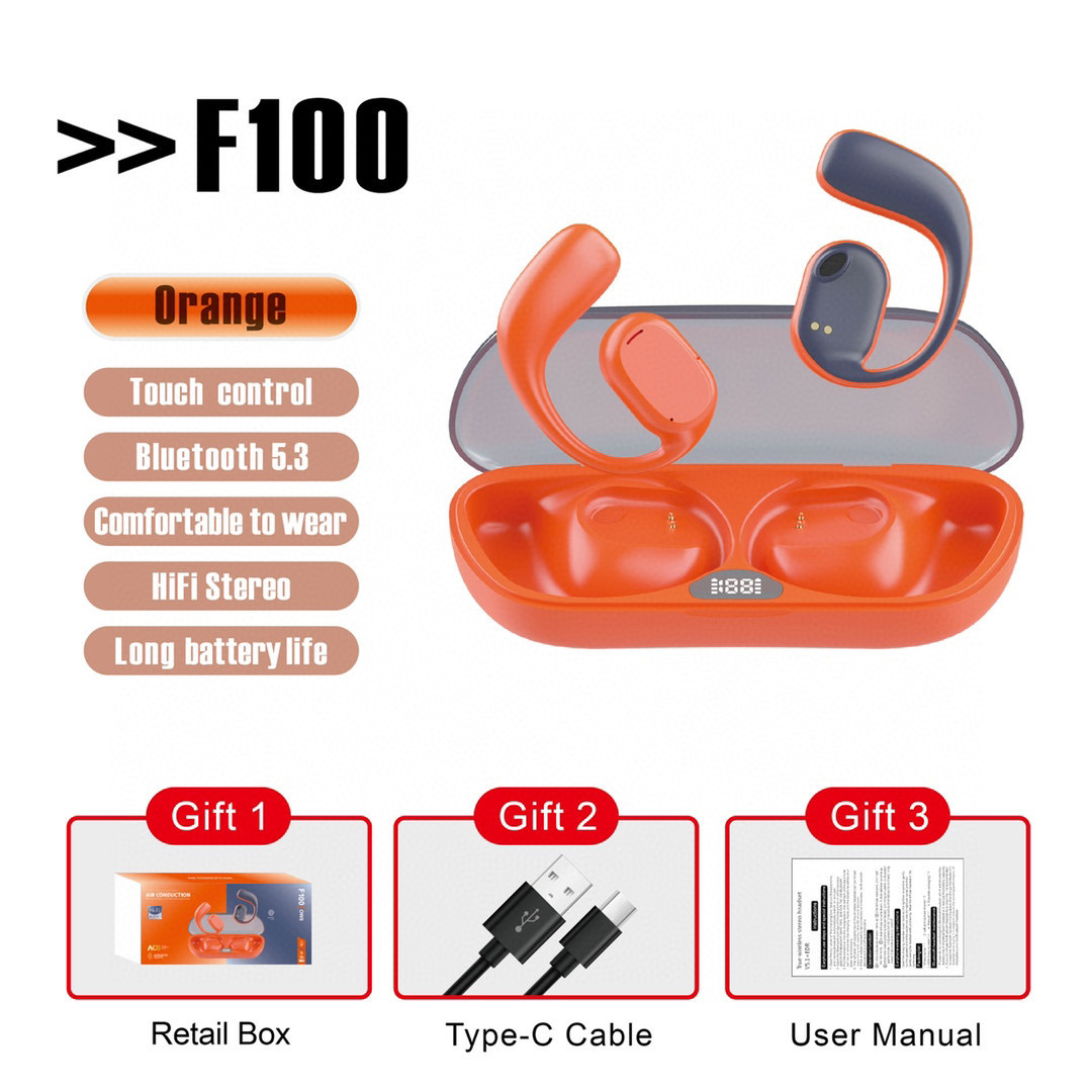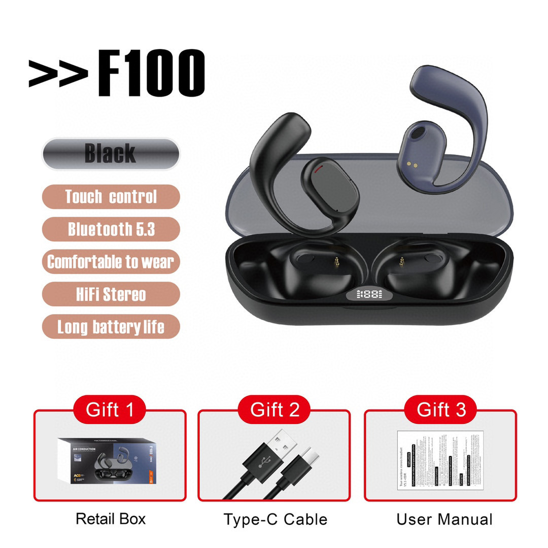 跨境新款F100 无线OWS蓝牙耳机运动挂耳音传导智能数显长续航耳机
