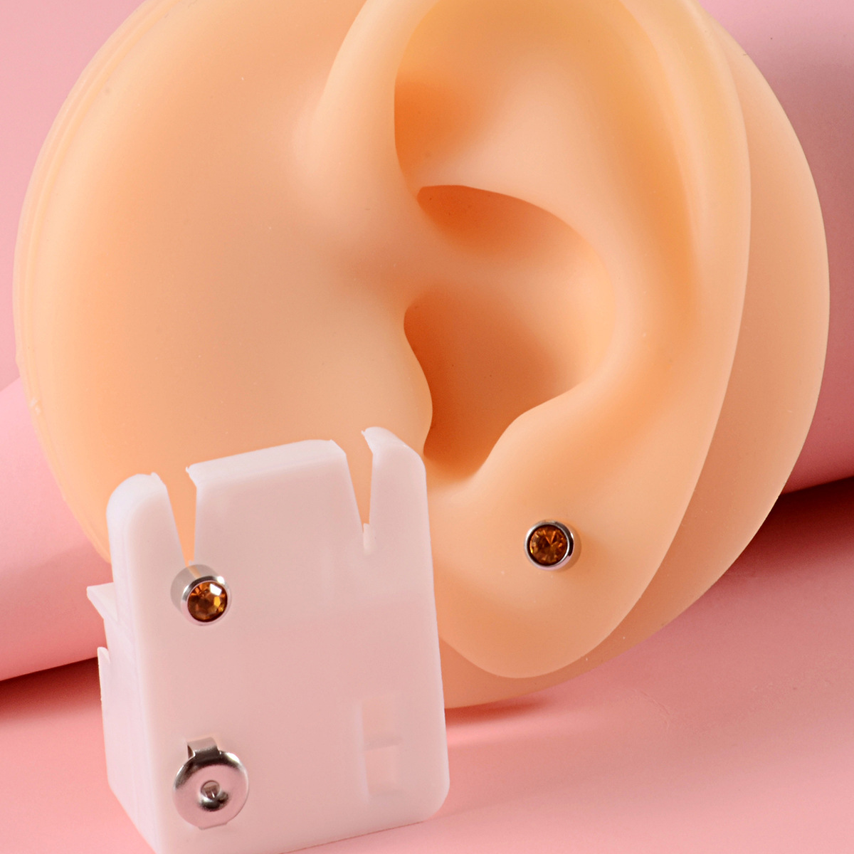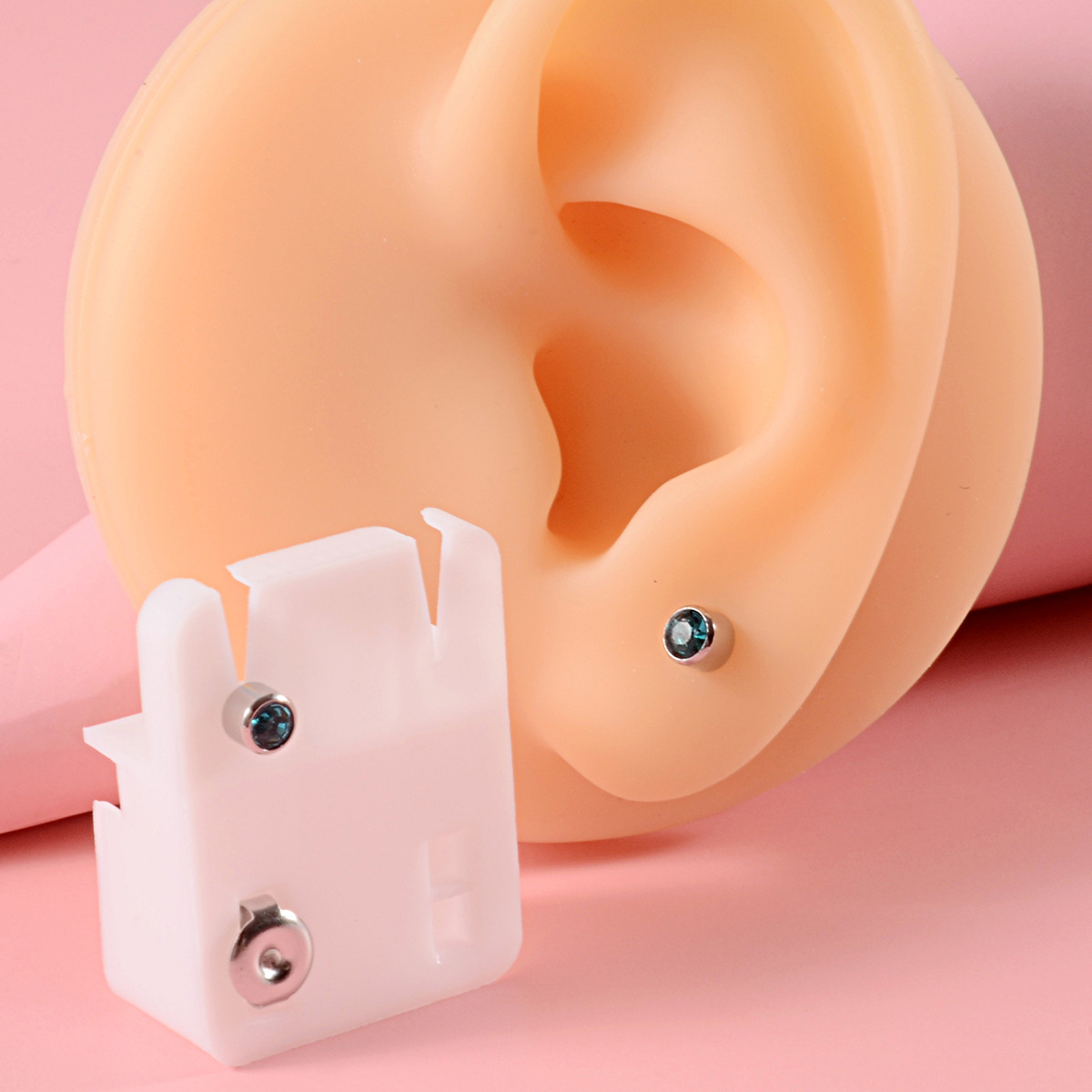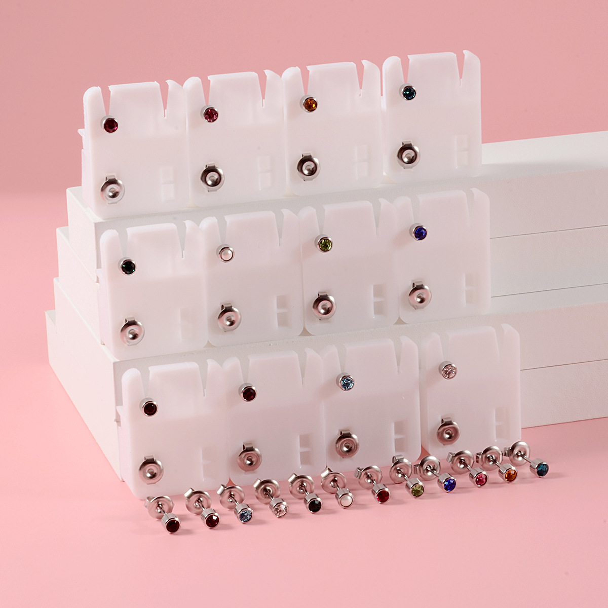 无菌包装捷克钻耳钉 304不锈钢诞生石耳钉birthstone cz打洞耳钉