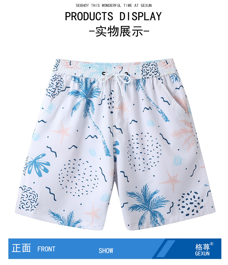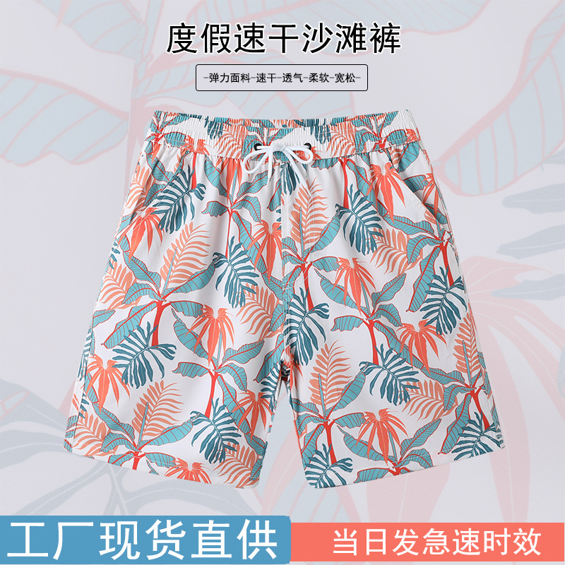 现货速干男士沙滩裤冲浪运动五分裤度假宽松男短裤印花温泉大裤衩
