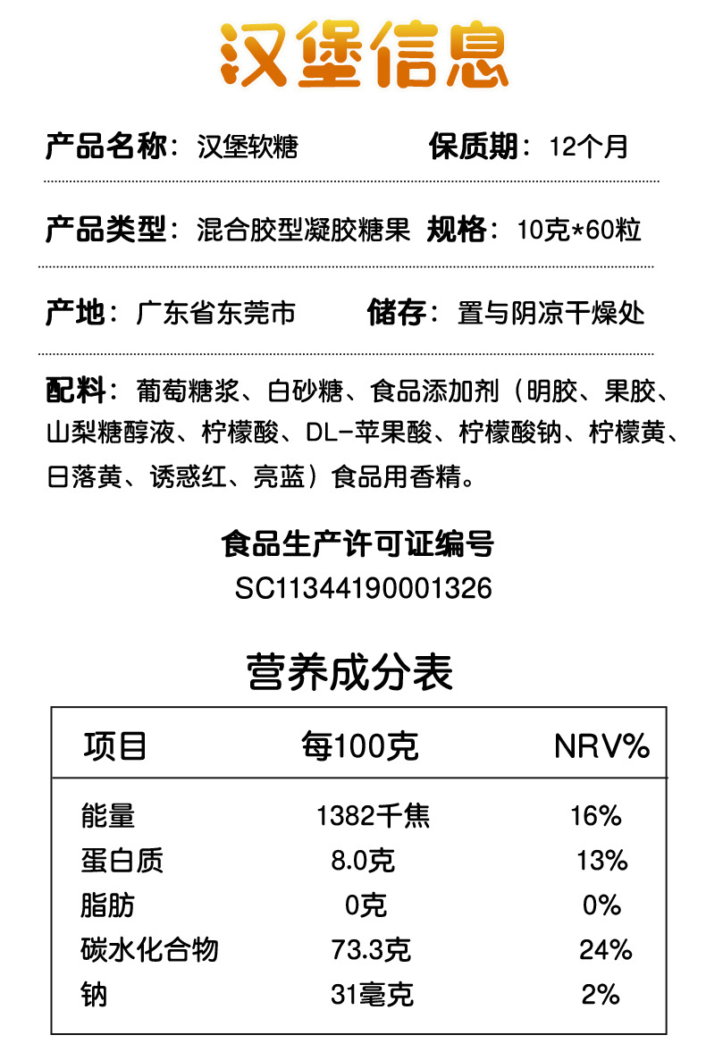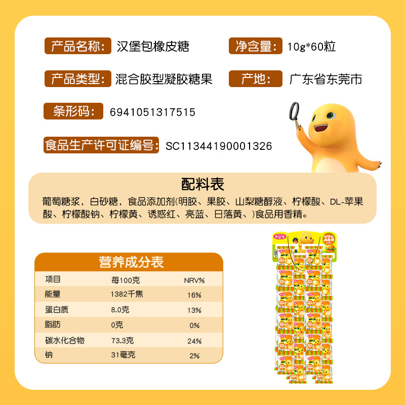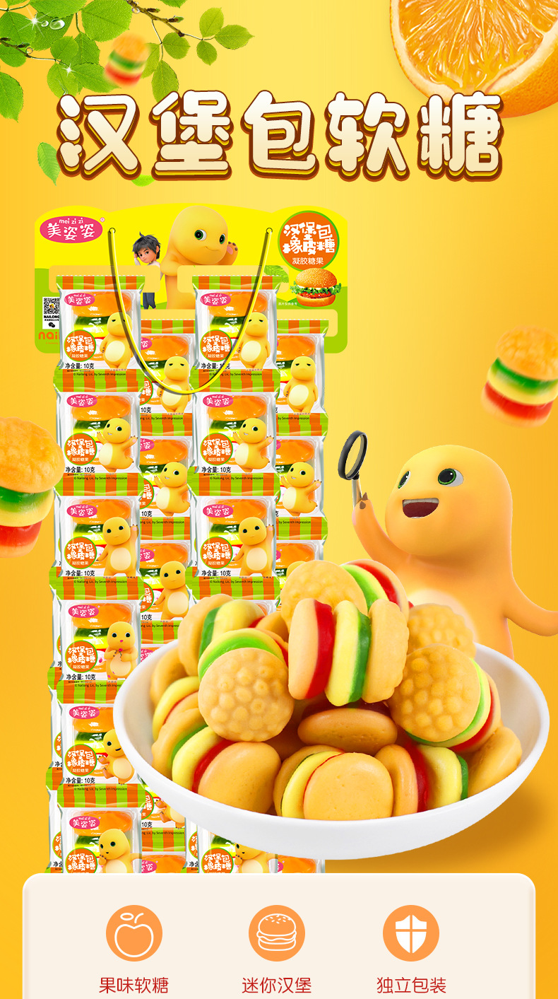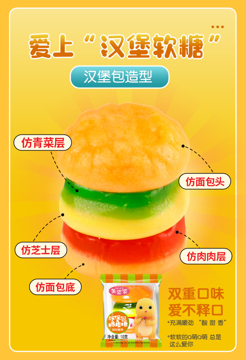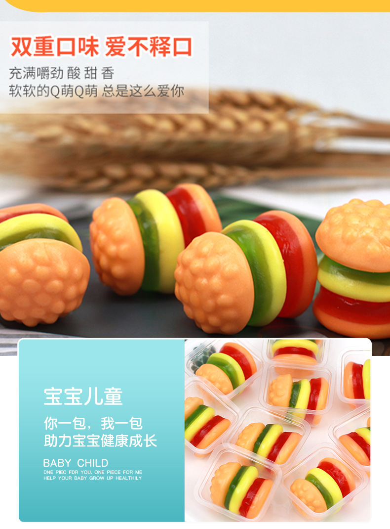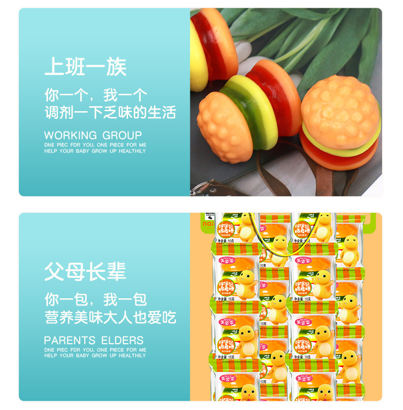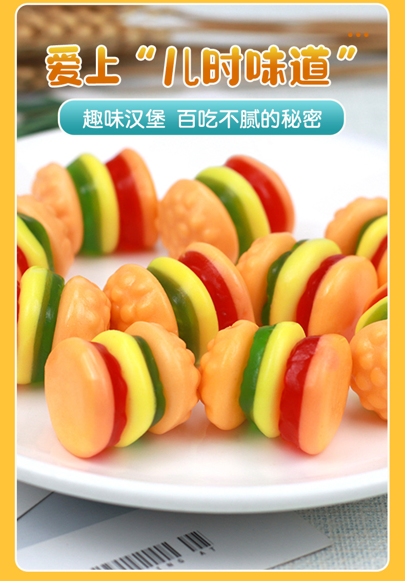 10克奶龙条装汉堡包糖软糖橡皮糖怀旧儿童零食水果味网红糖果批发