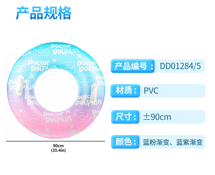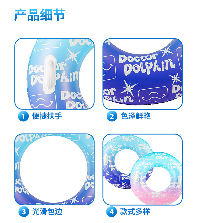 博士豚儿童游泳圈把手泳圈ins风印花儿童游泳圈充气泳圈扶手泳圈