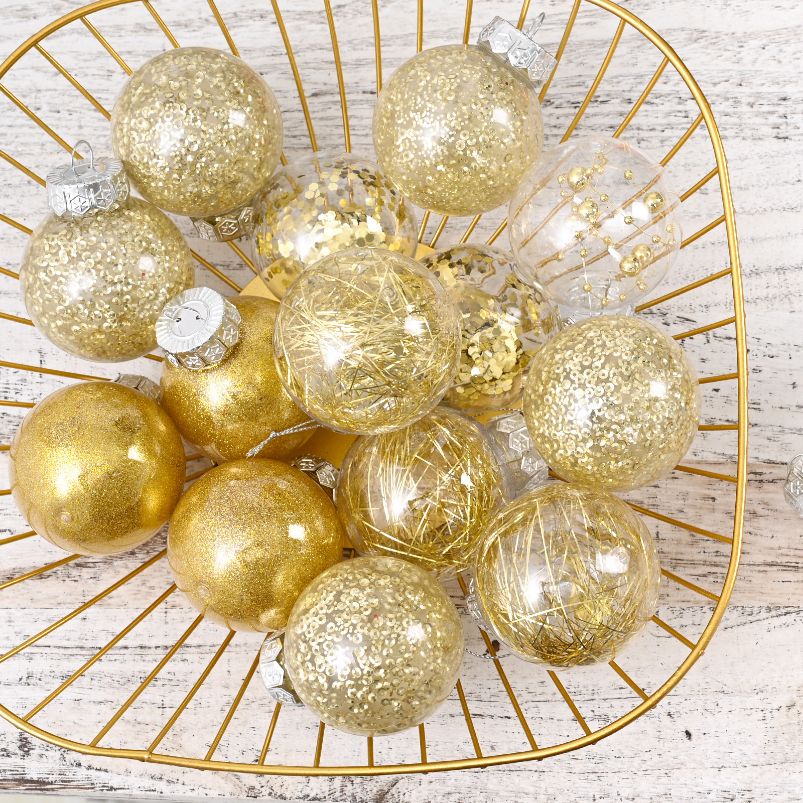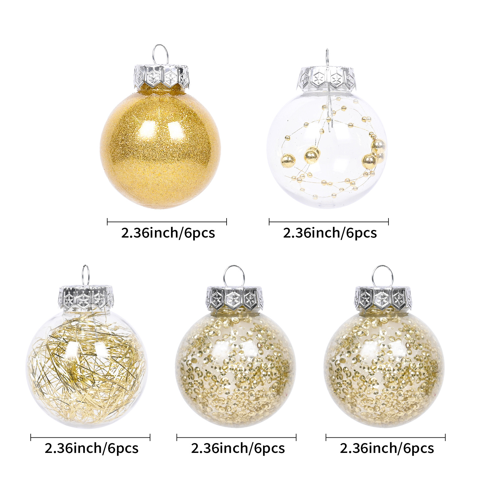 跨境热销圣诞树挂饰6CM30个桶装透明PET圣诞球商场橱窗节日装饰