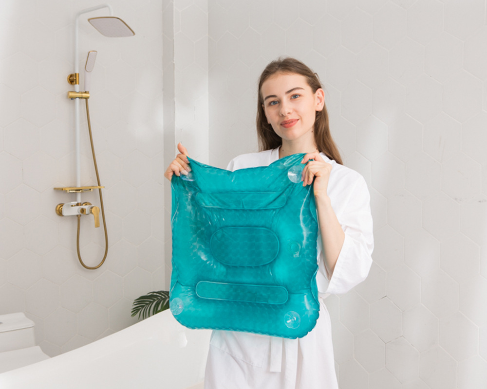 跨境新款充气spa浴缸垫泡澡池坐垫加厚镭射料带吸盘注水清凉坐垫