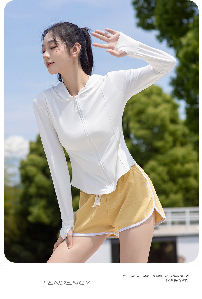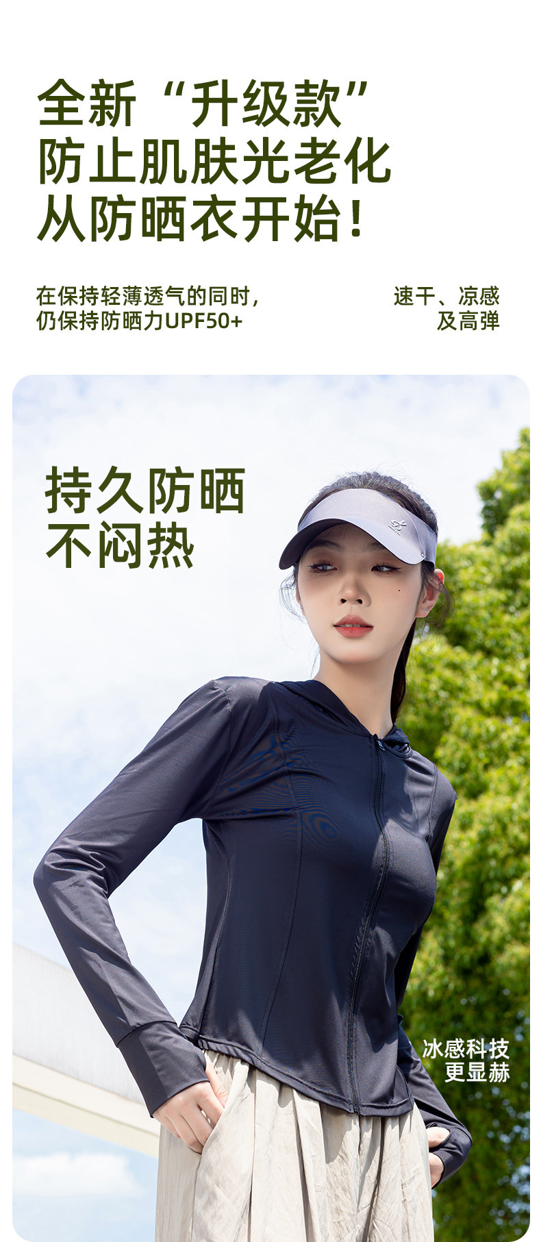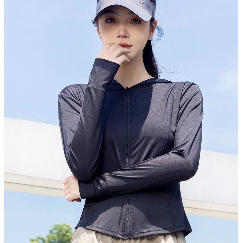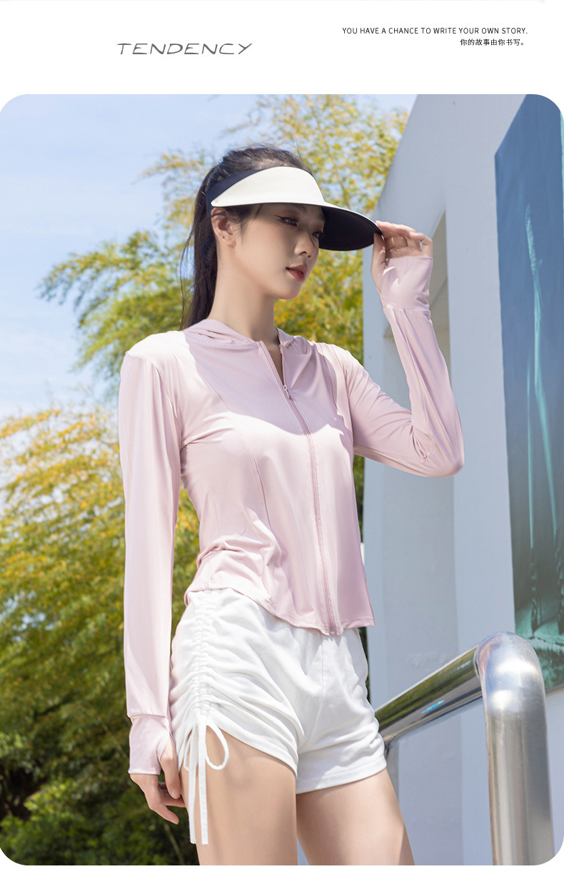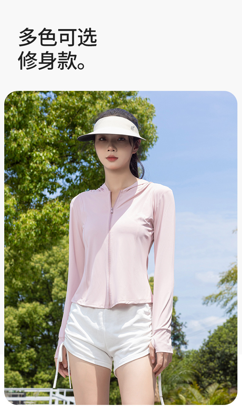 冰丝防晒服女夏户外骑行透气防紫外线薄款修身弹性连帽外套女上衣