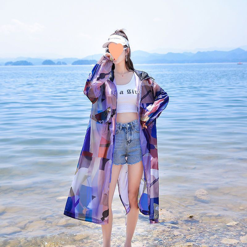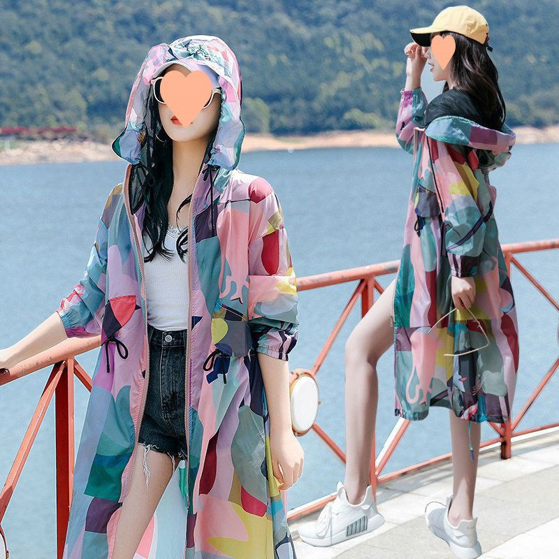长款防晒衣新款女夏装中长款宽松韩版防紫外电动车连帽遮阳服外穿