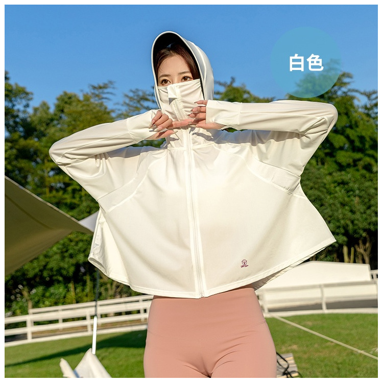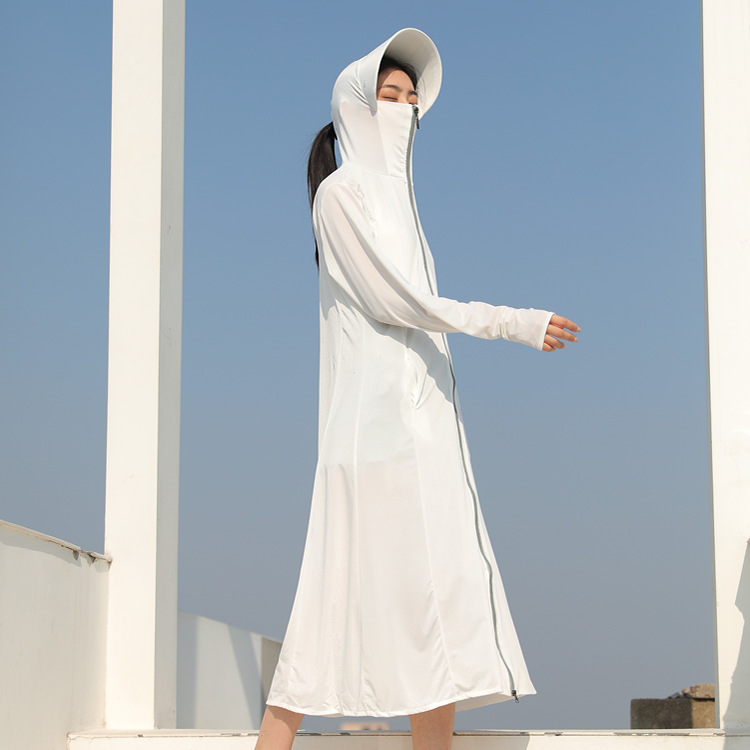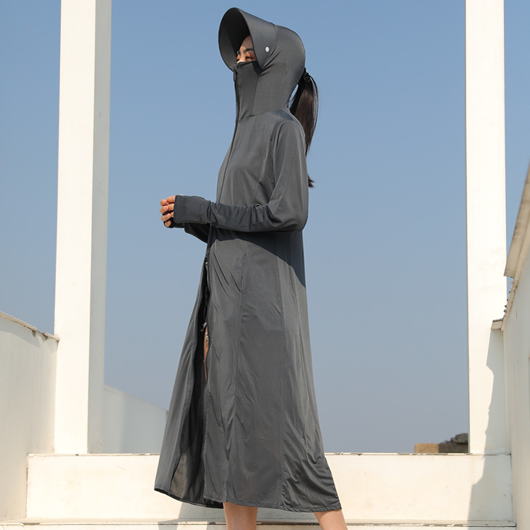 2024披肩防晒衣女中长款夏防紫外线黑胶帽檐薄冰丝透气防晒服