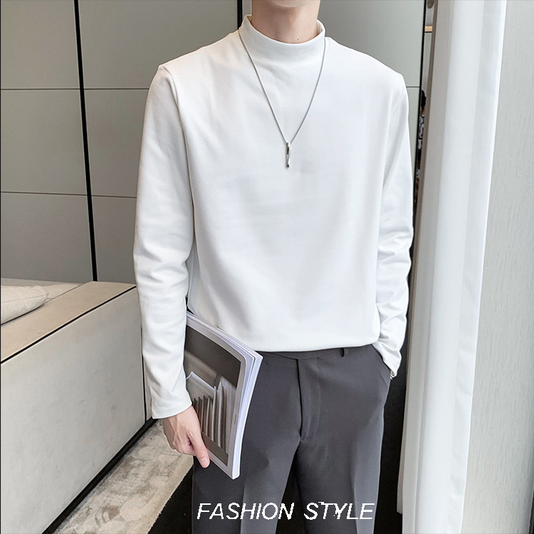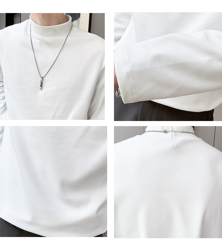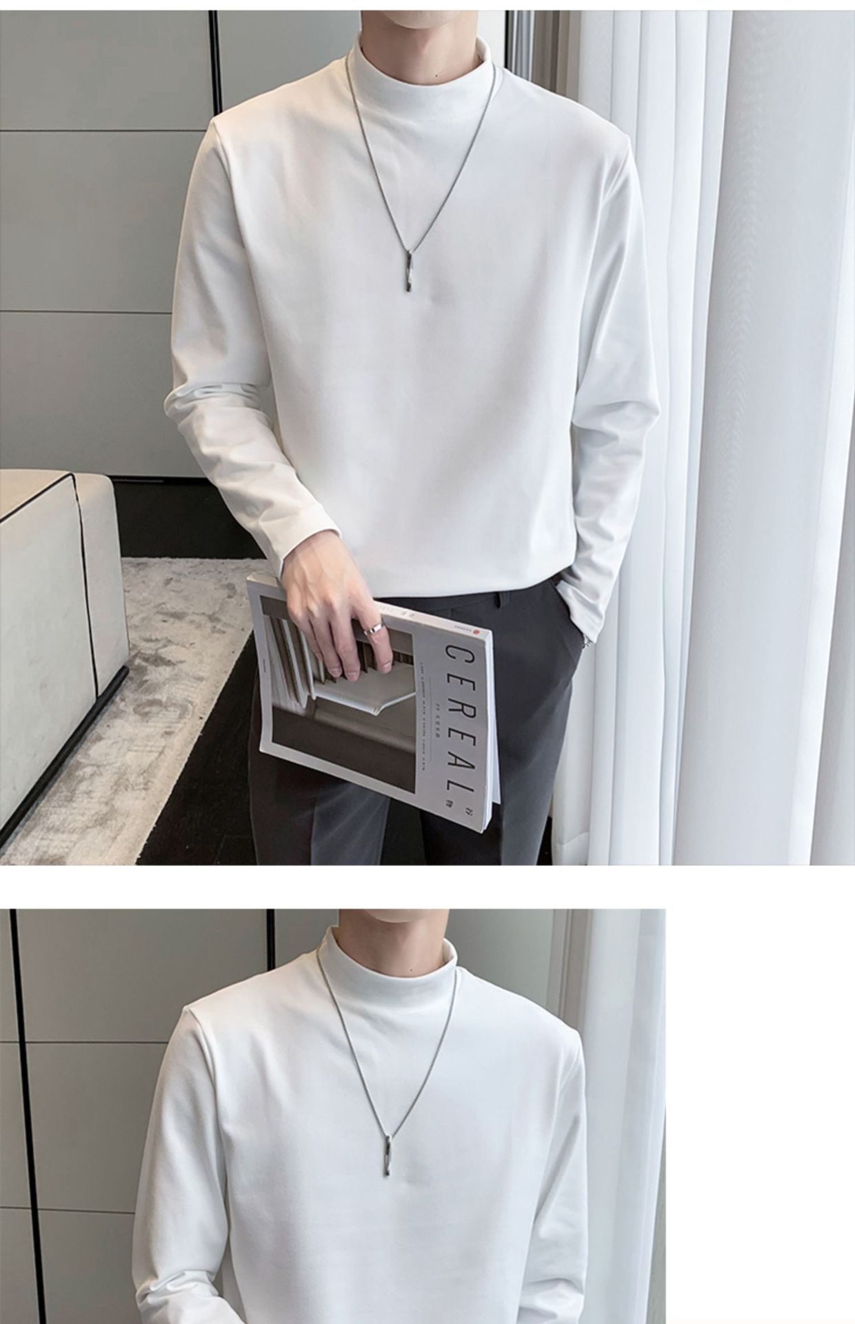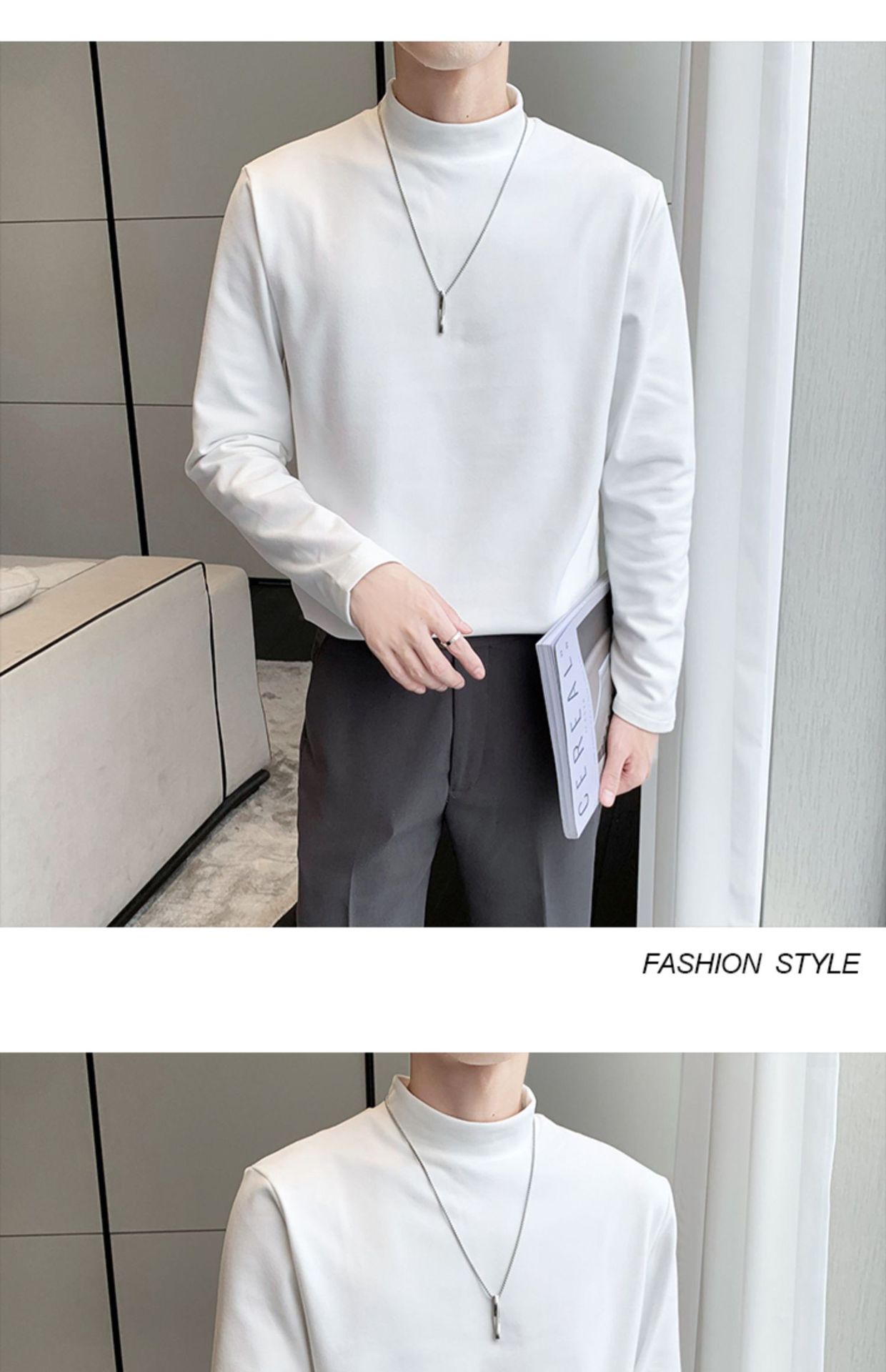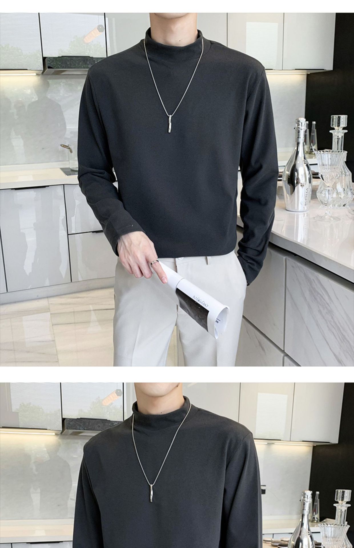 德绒长袖t恤男士潮牌秋冬季修身半高领打底衫保暖内搭纯色上衣服