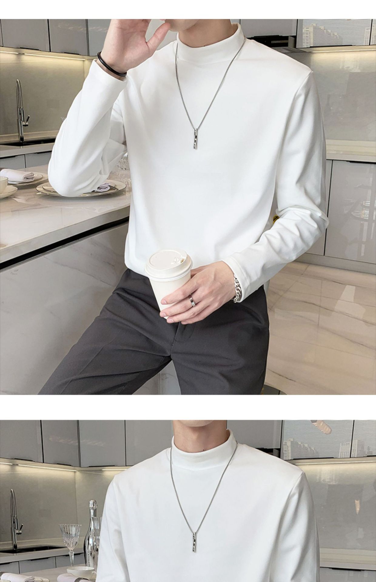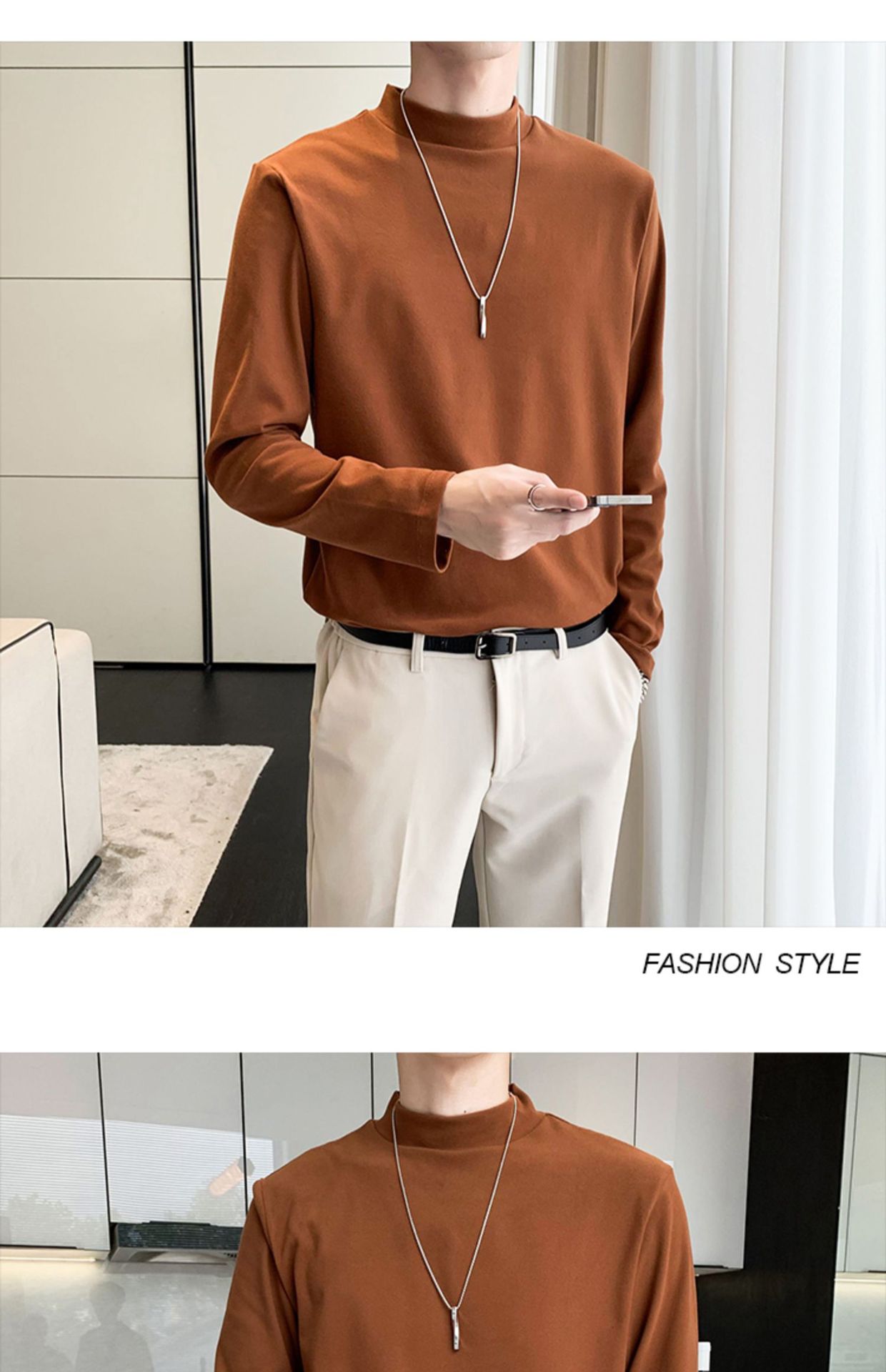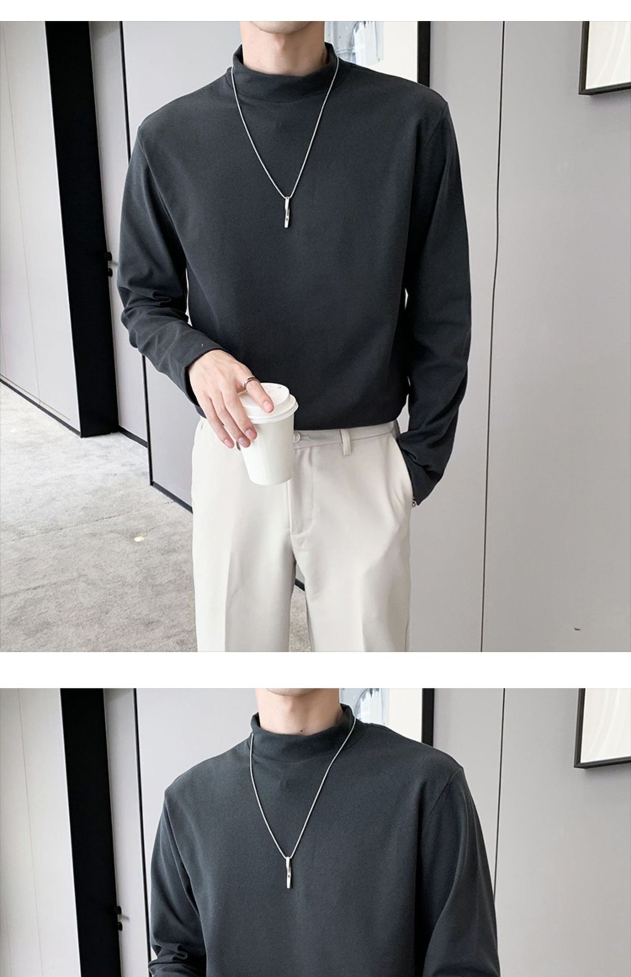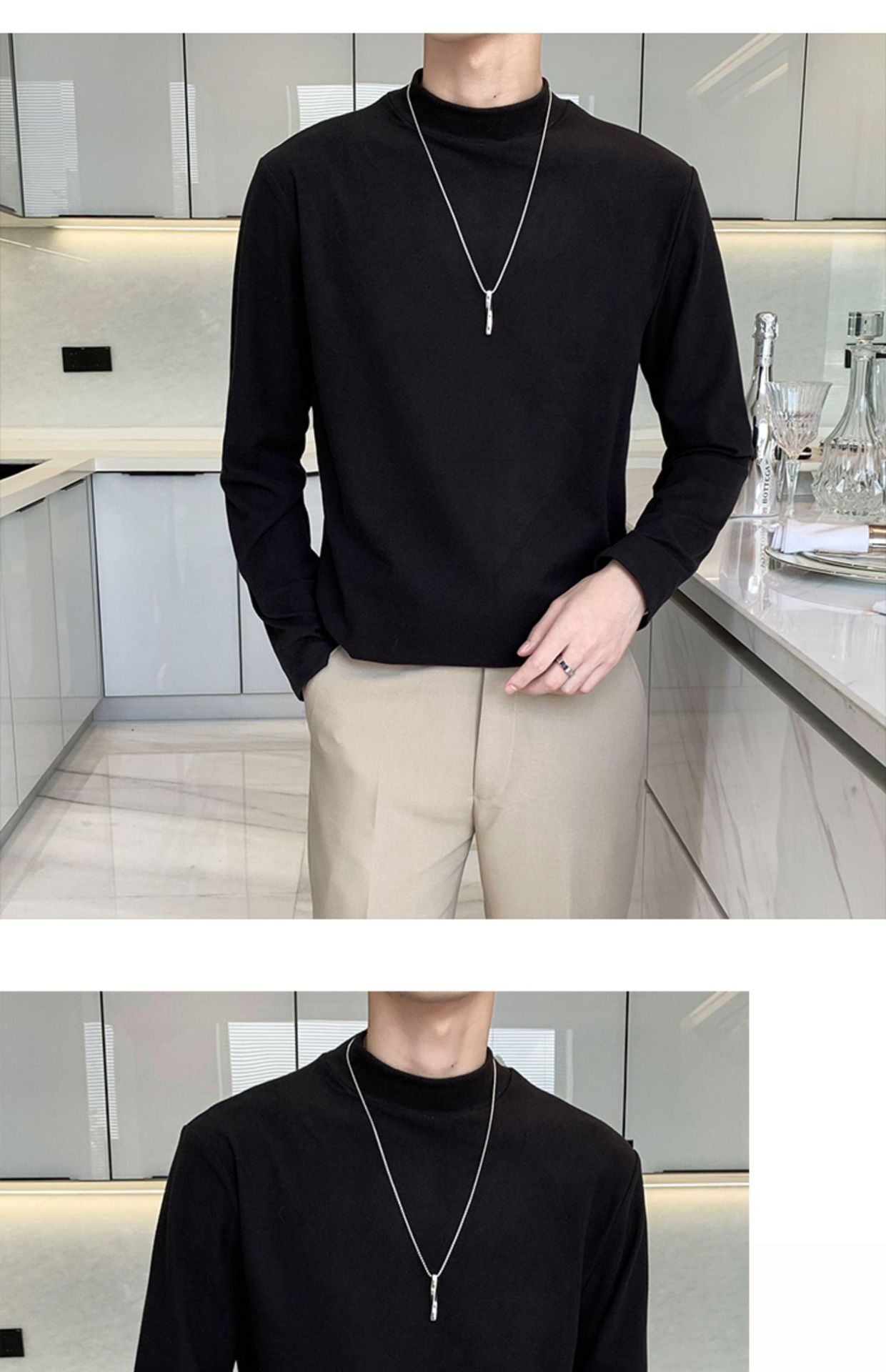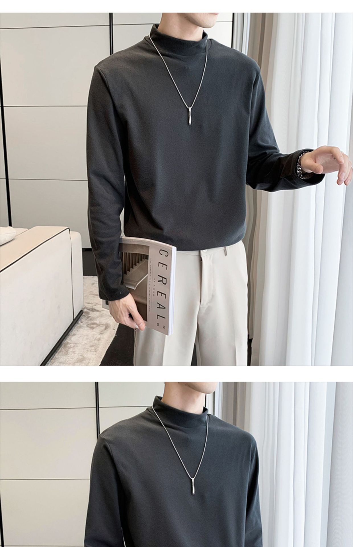 德绒长袖t恤男士潮牌秋冬季修身半高领打底衫保暖内搭纯色上衣服