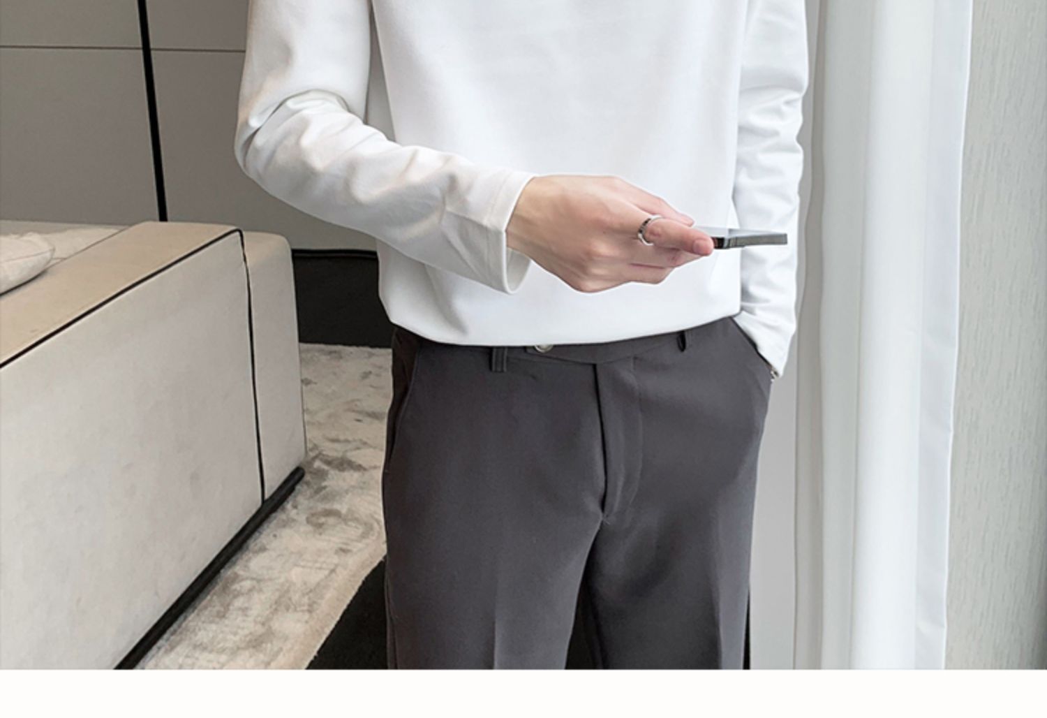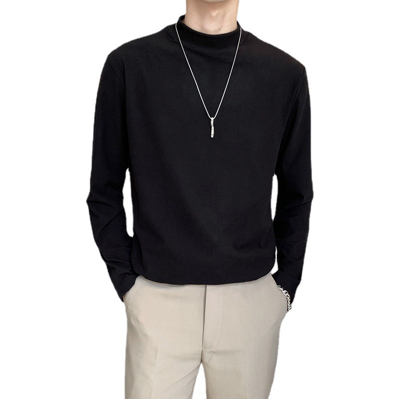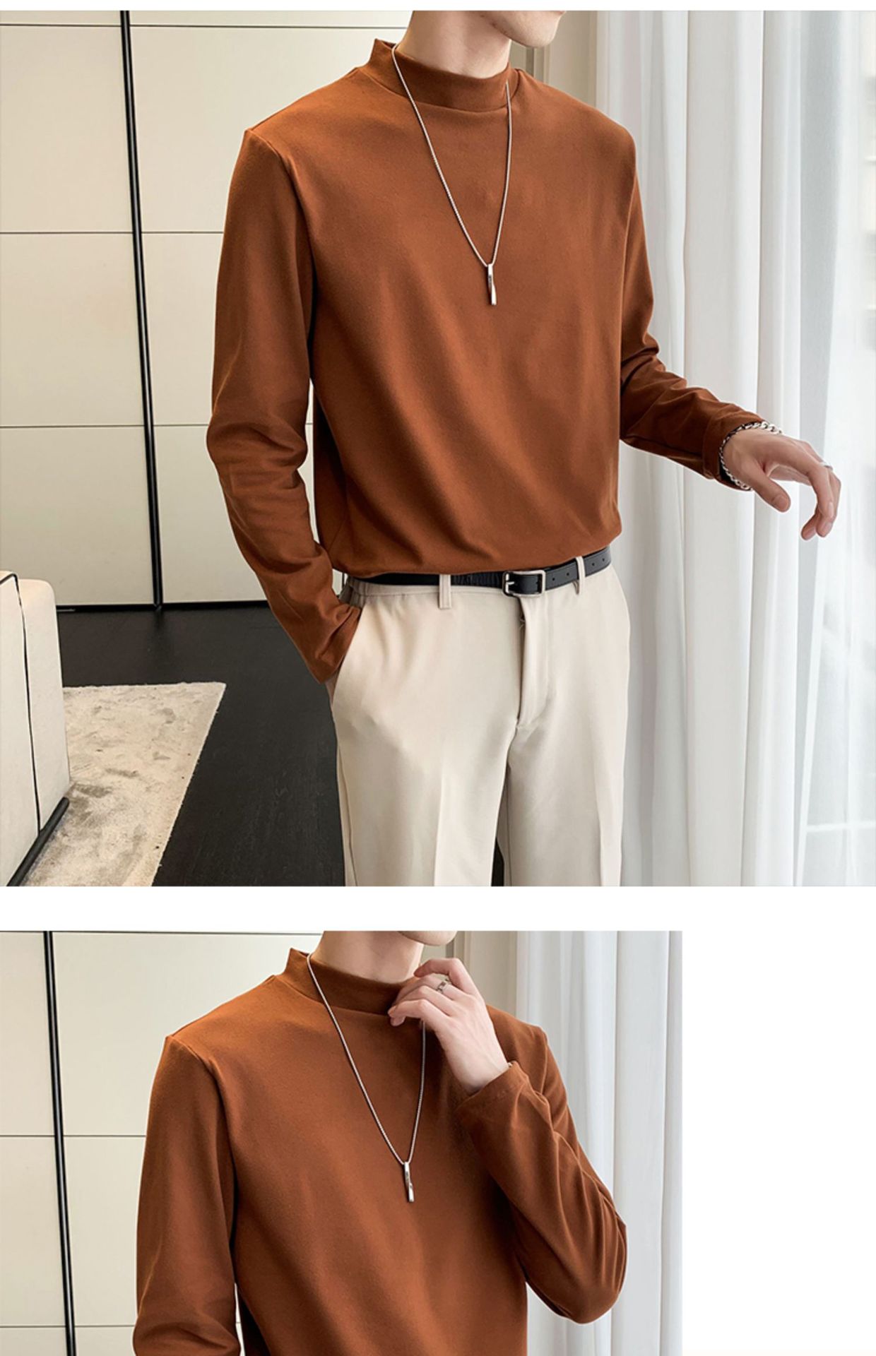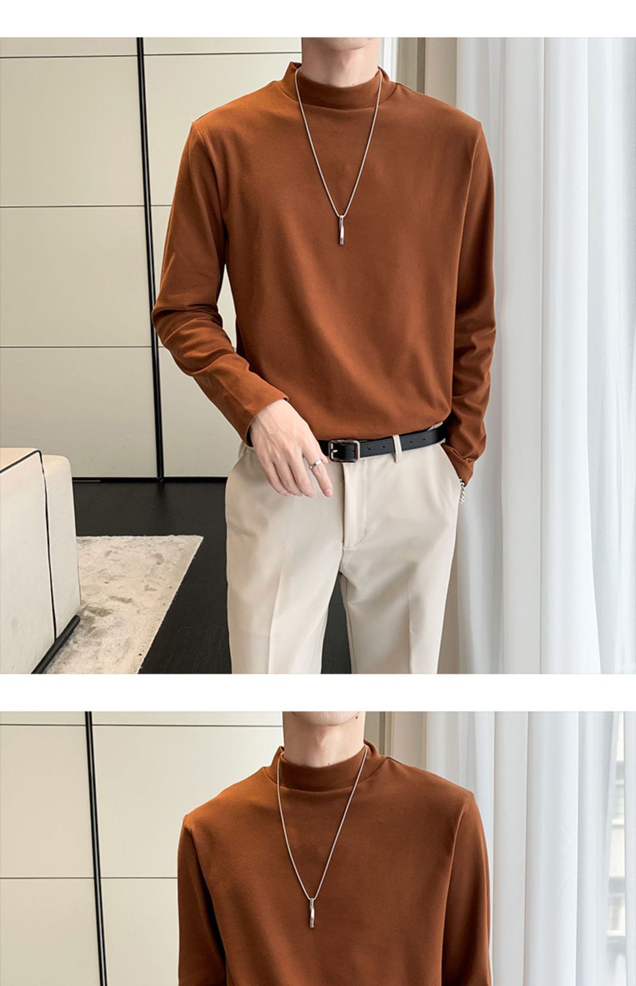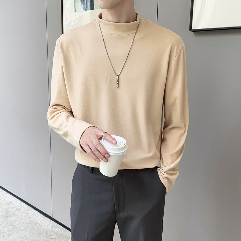 德绒长袖t恤男士潮牌秋冬季修身半高领打底衫保暖内搭纯色上衣服