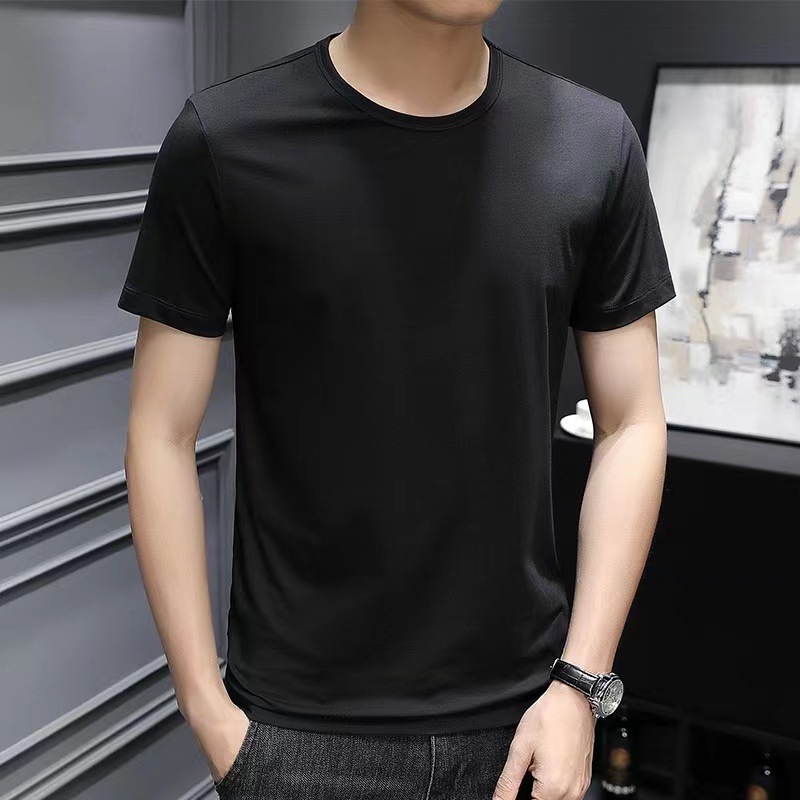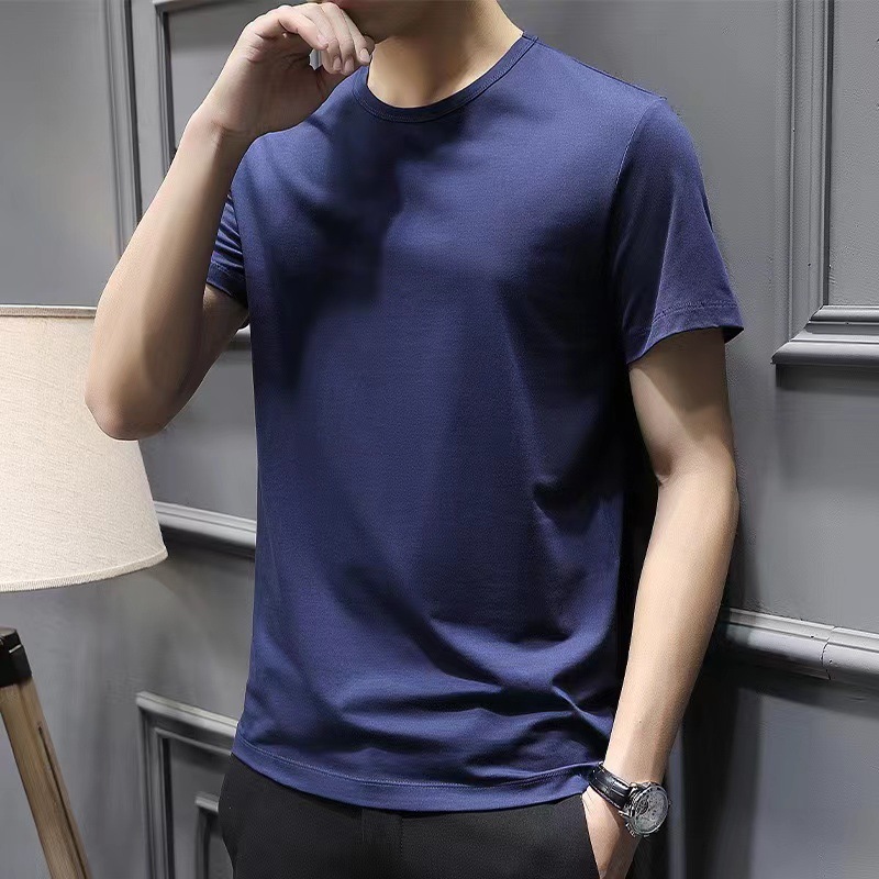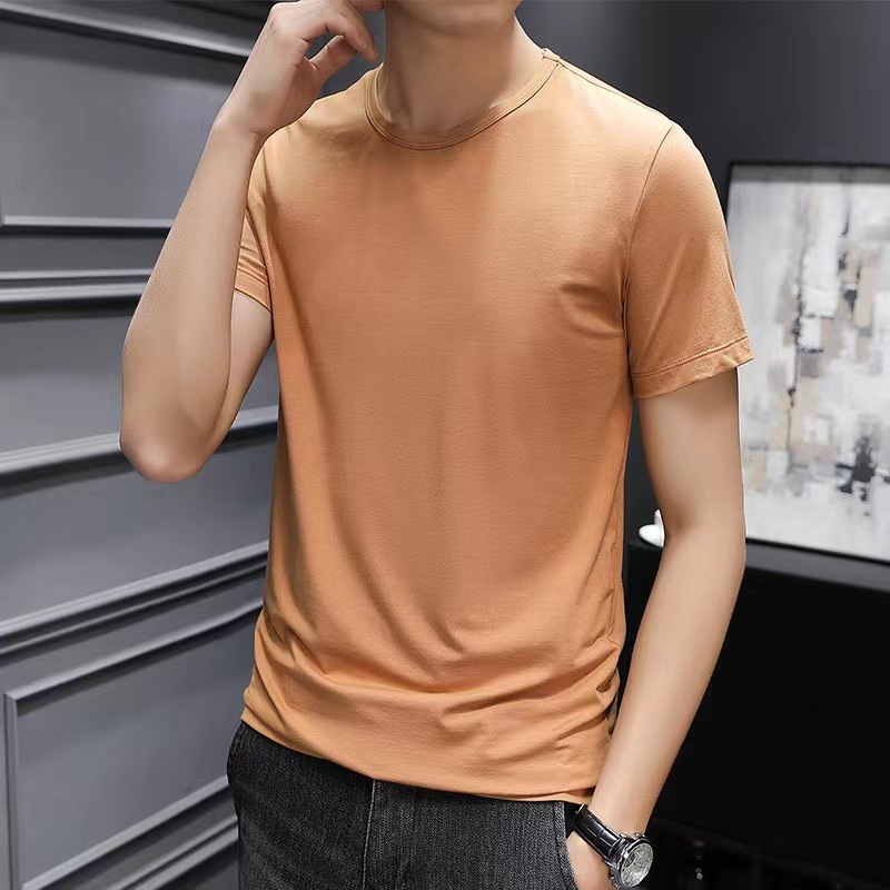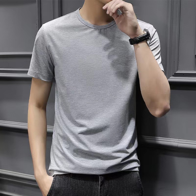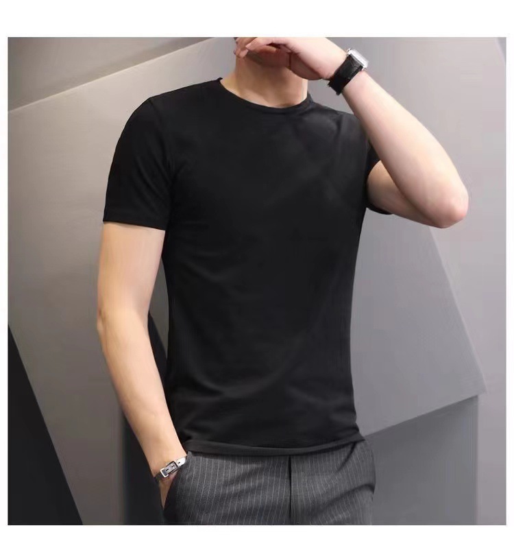 夏季男士纯色白色短袖t恤加肥大码韩版修身潮流帅气圆领半袖体恤