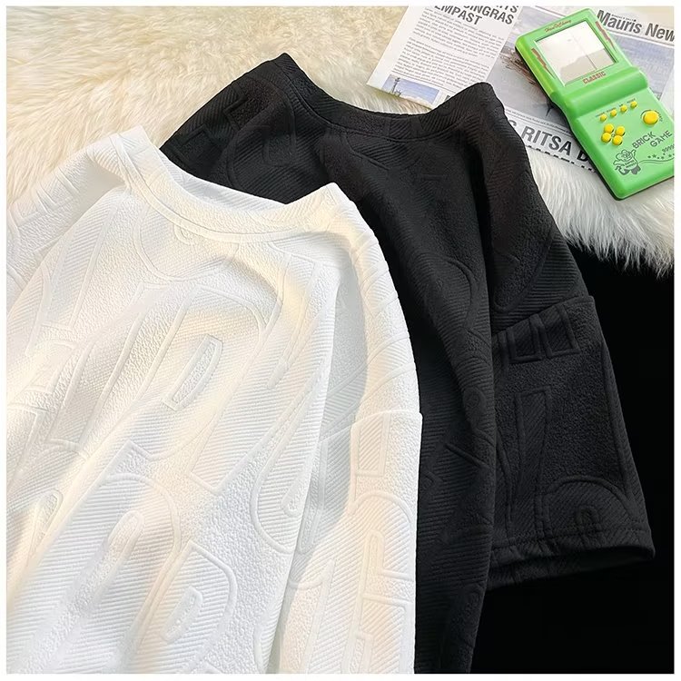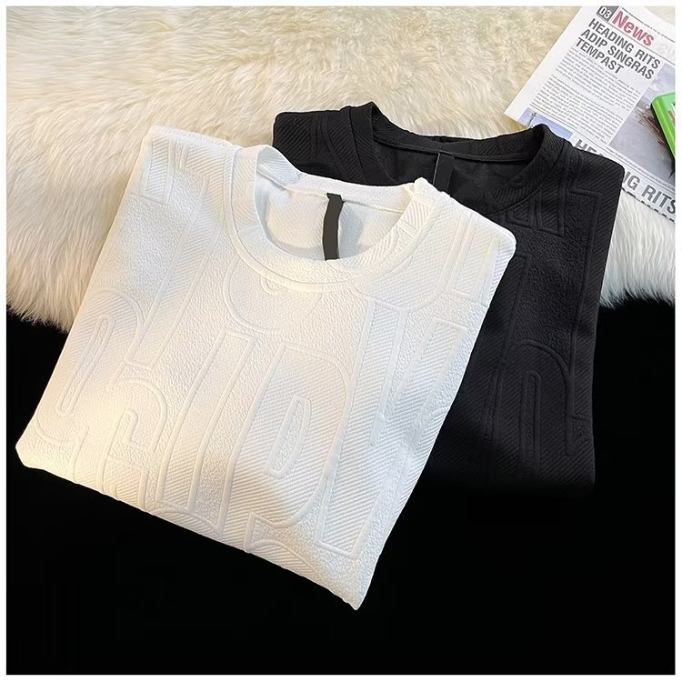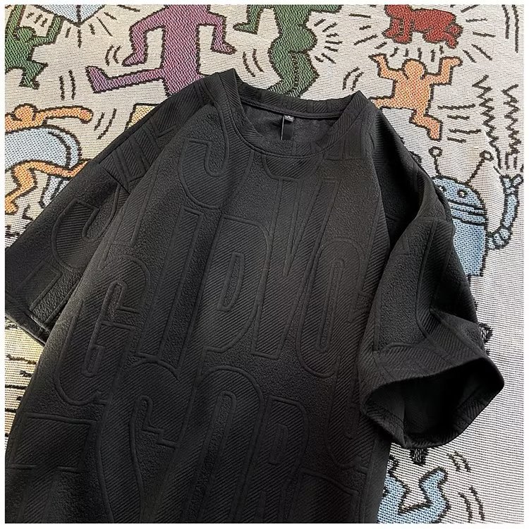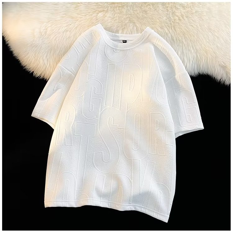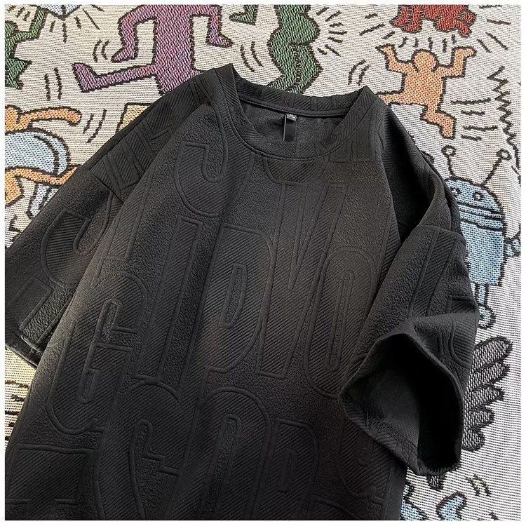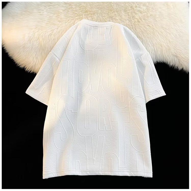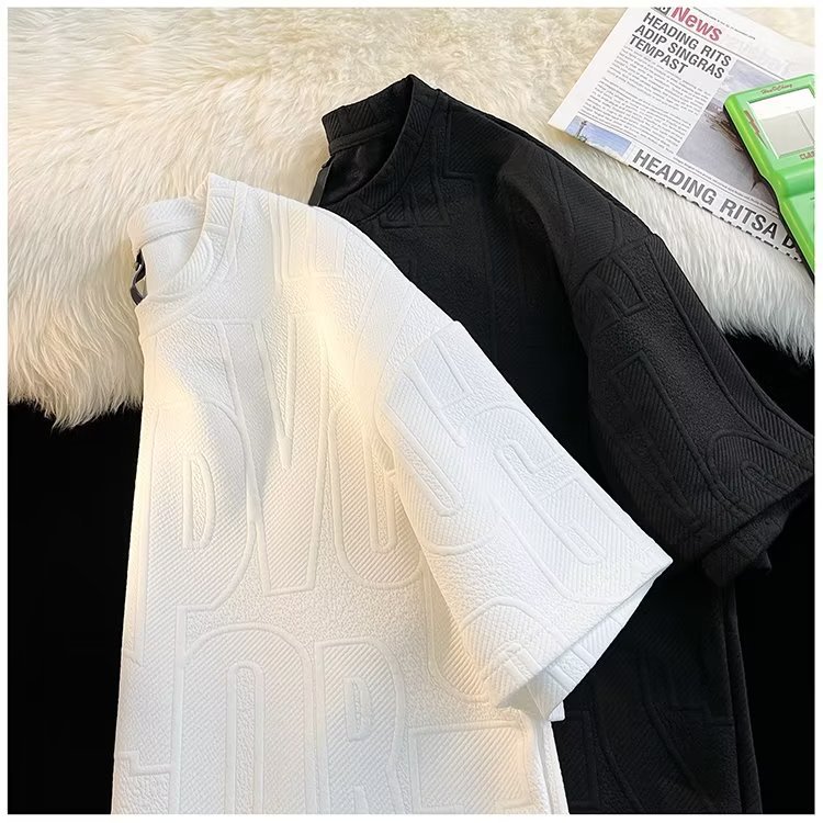 美式高街立体提花短袖t恤男2023夏季宽松潮牌休闲复古ins五分半袖