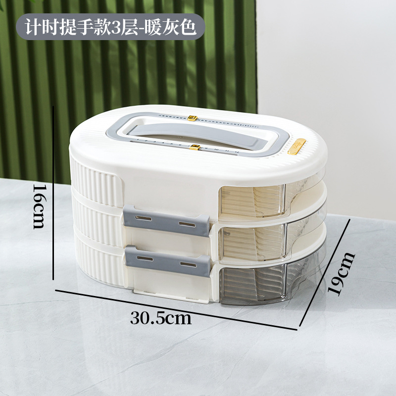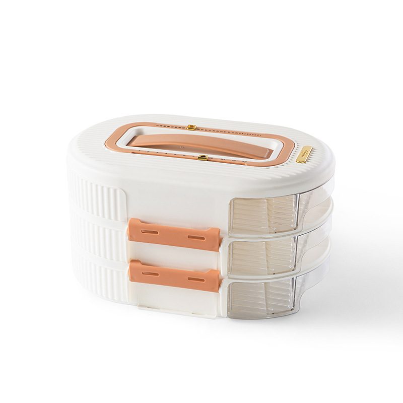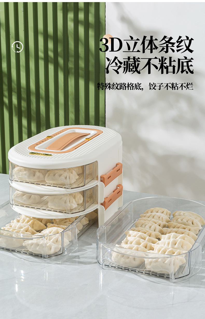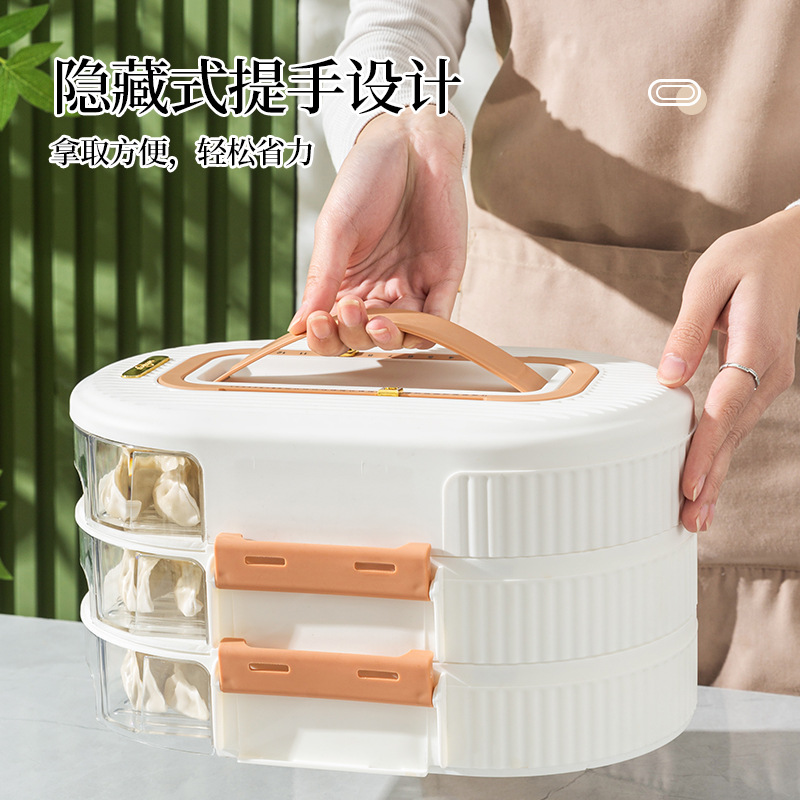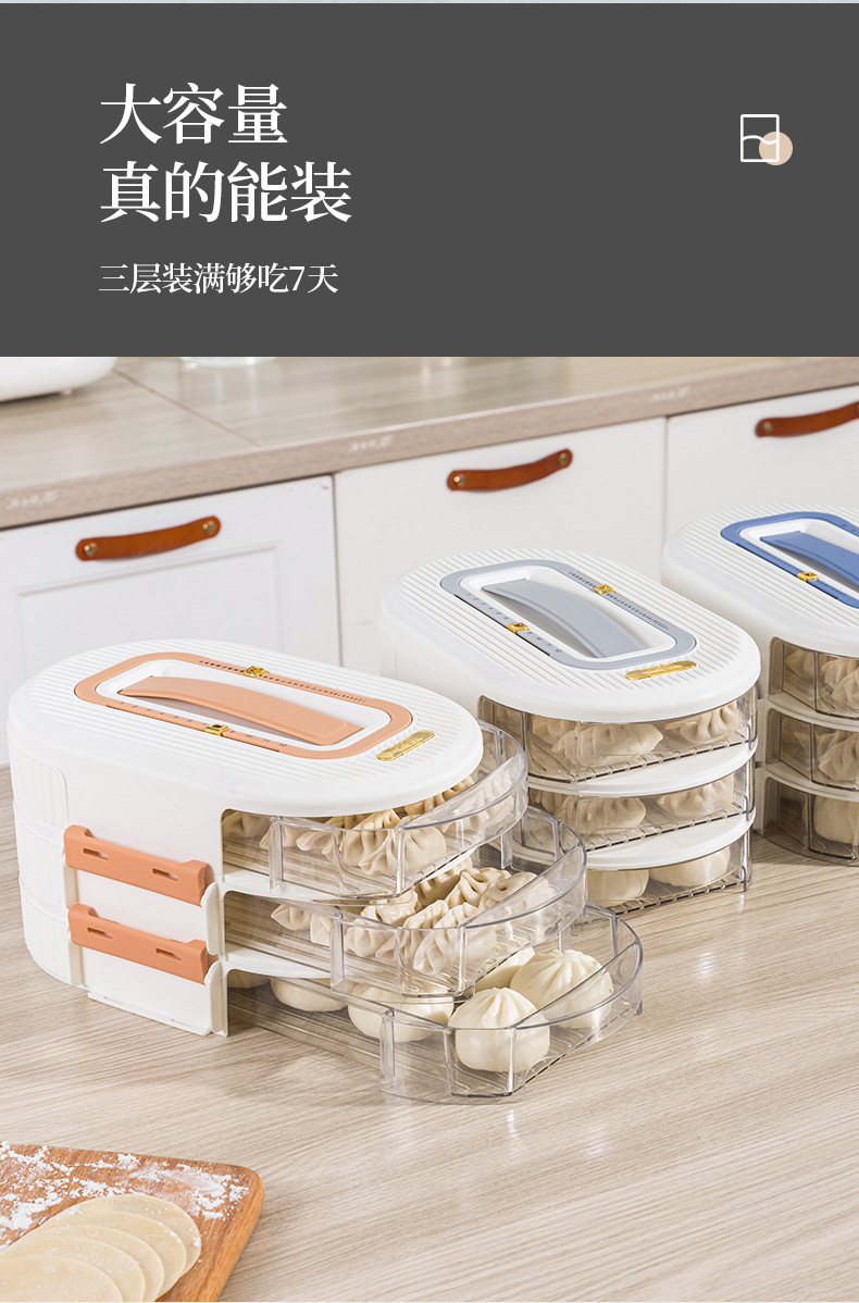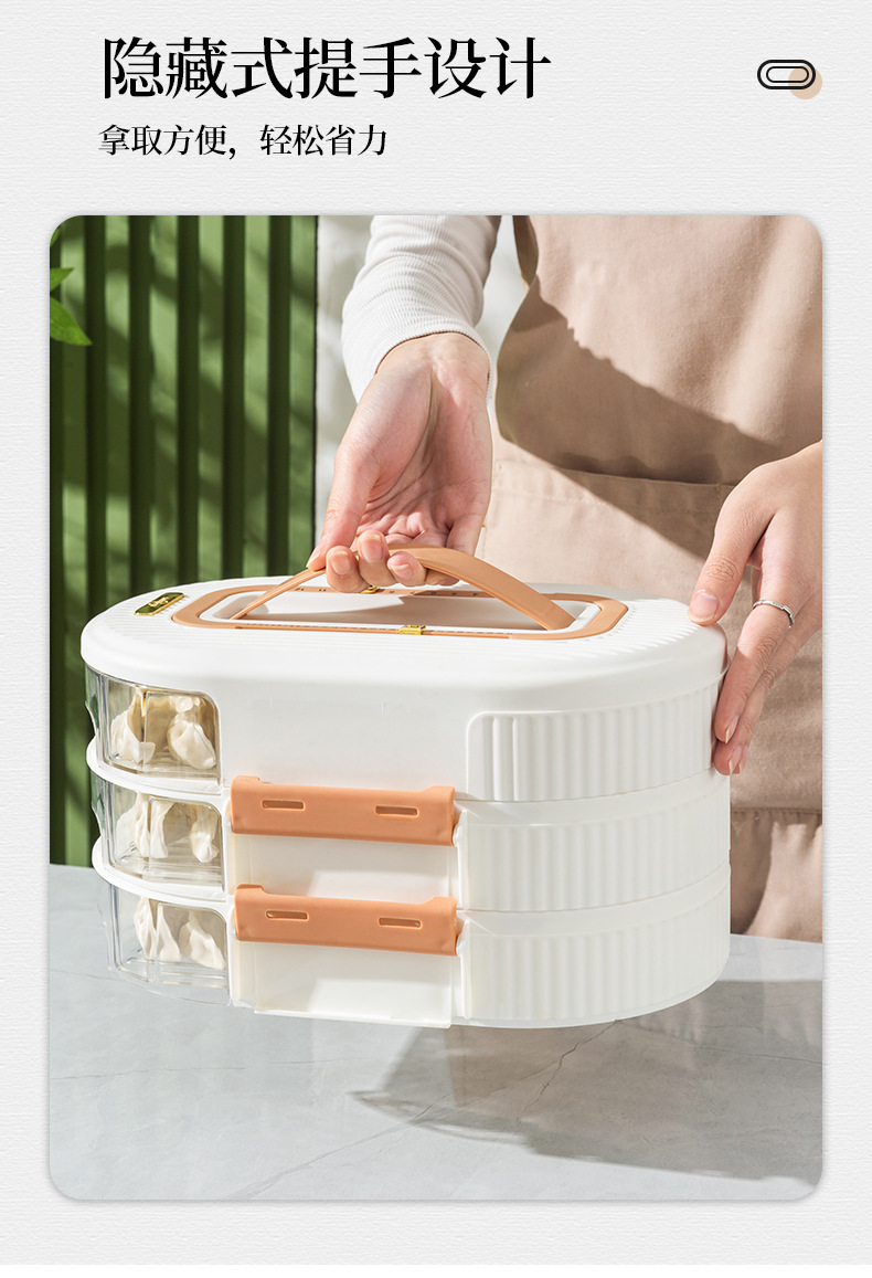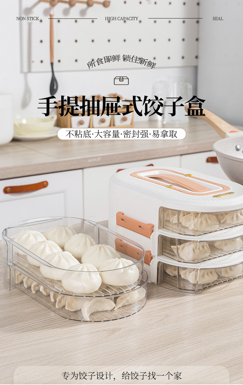 手提抽屉式饺子盒 家用食品级馄饨盒厨房密封冰箱多层饺子收纳盒