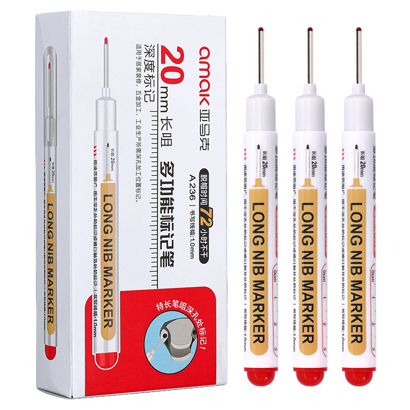 华杰厂家批发木工长头记号笔加长标记笔 防水防油速干笔 工地专用